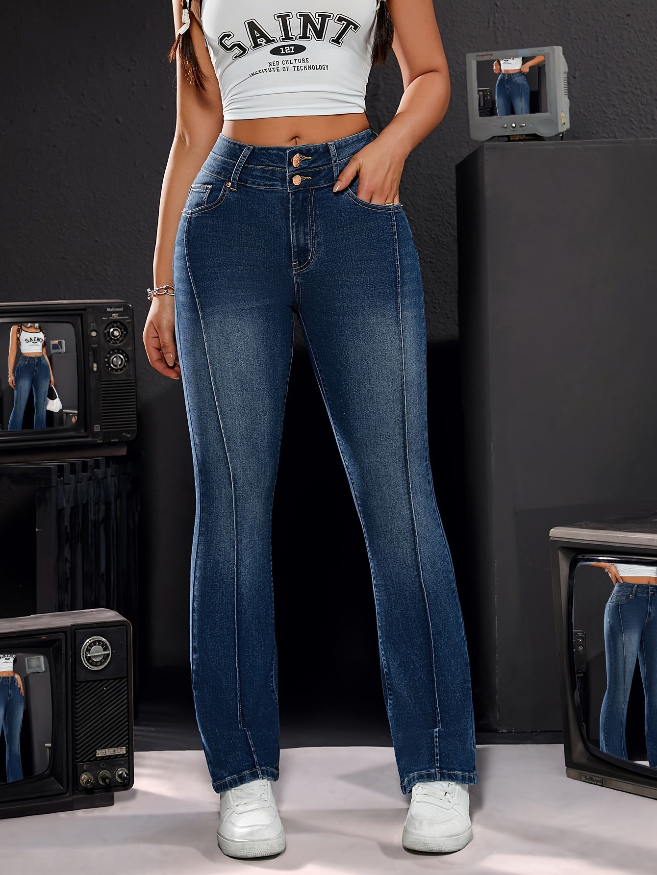 Jeans Femme Extensible Bootcut Double Boutons Décontracté Évasé Denim Lavable