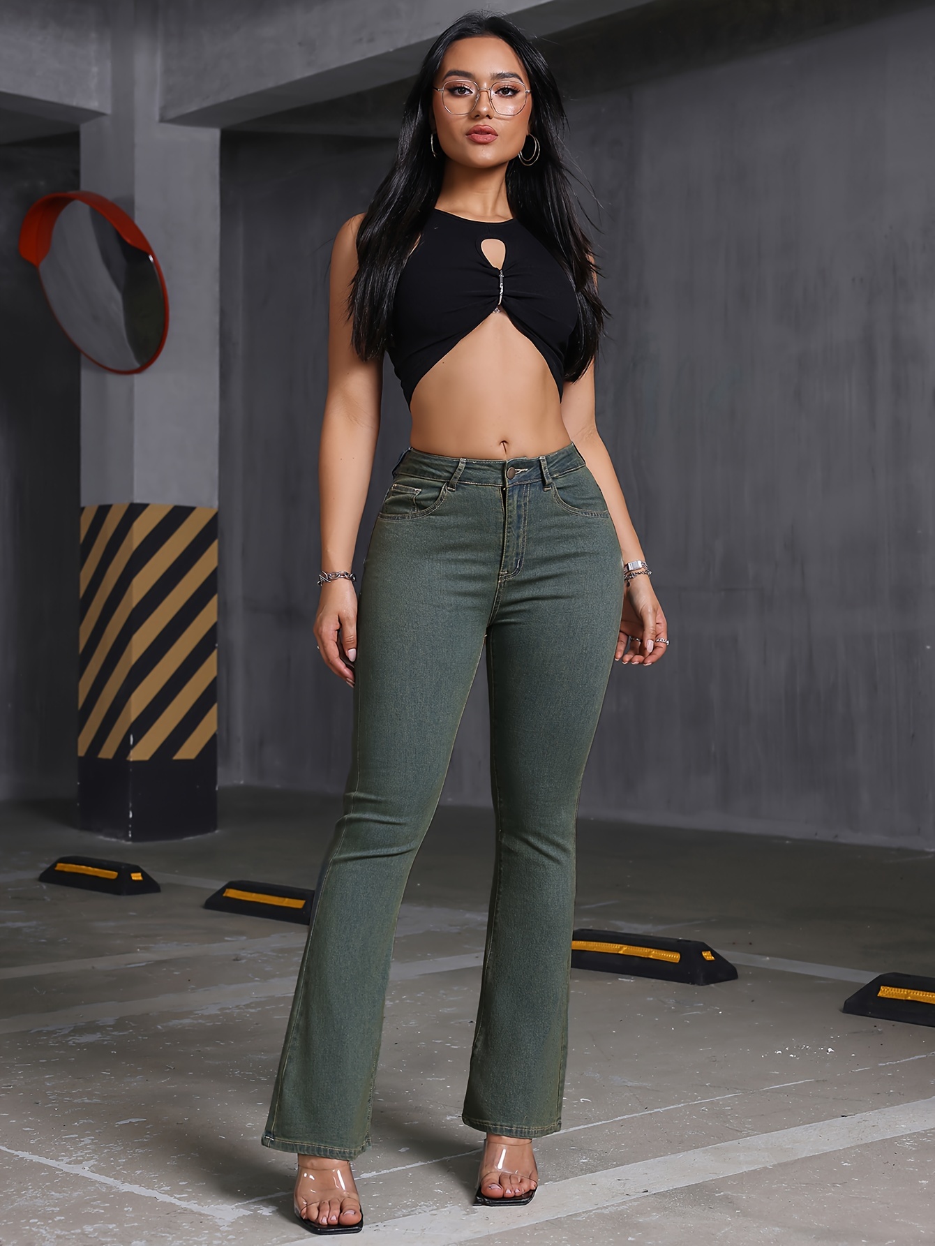 Jean stretch pour femme - Pantalon en denim uni sexy à jambes évasées, avec poches, idéal en toute saison