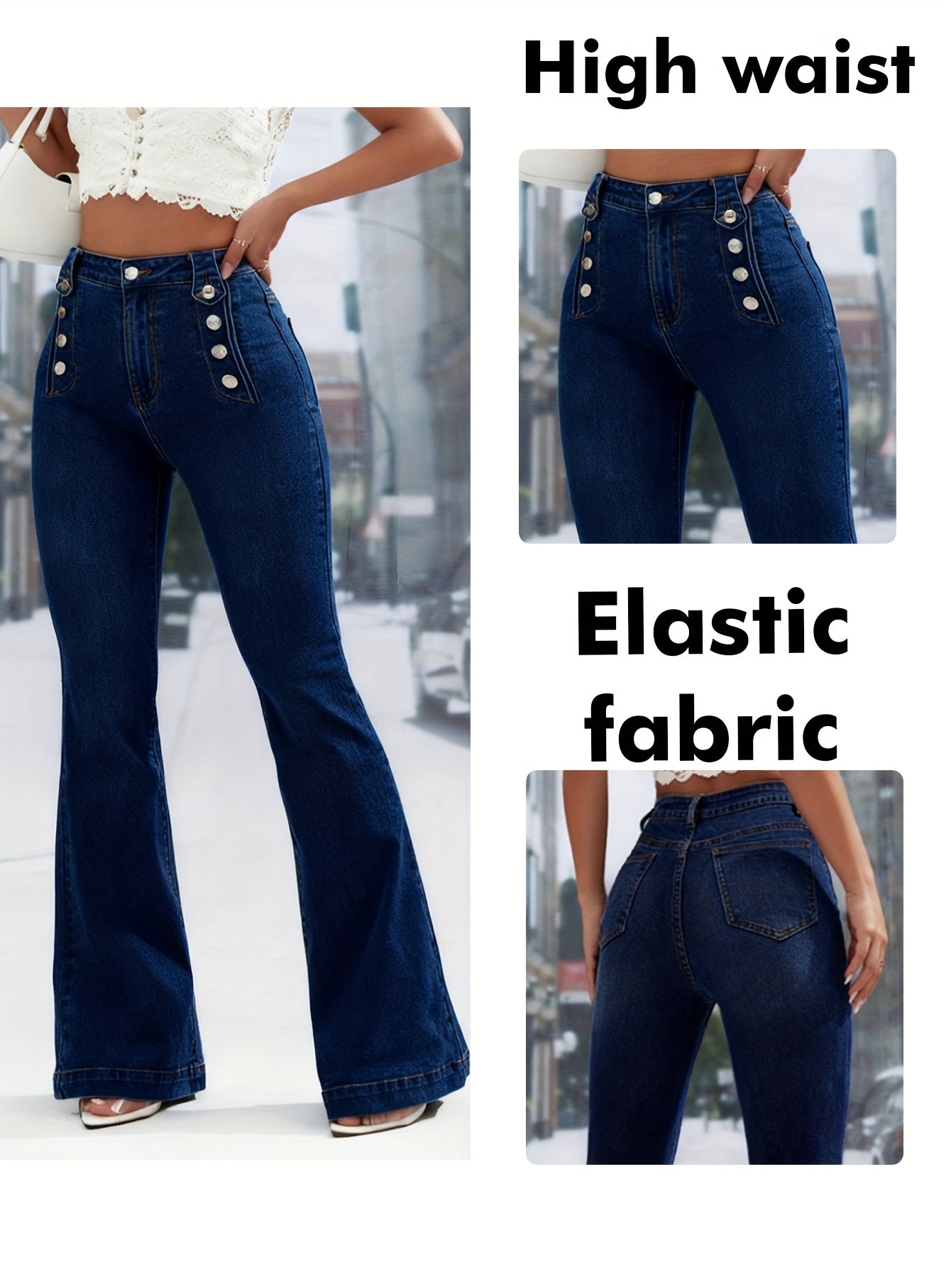 Jean Femme Taille Haute Stretch Coupe Évasée Polyvalent
