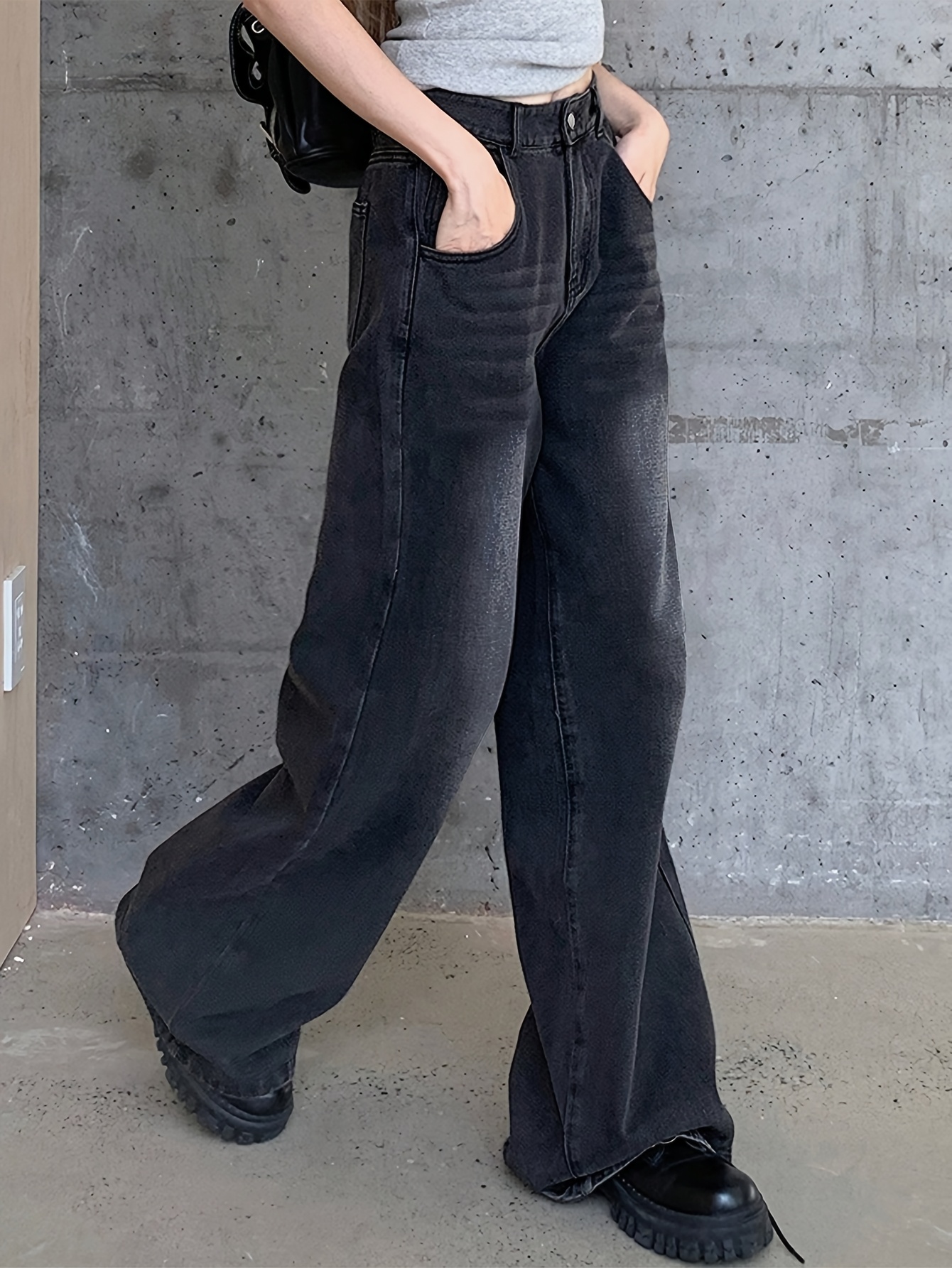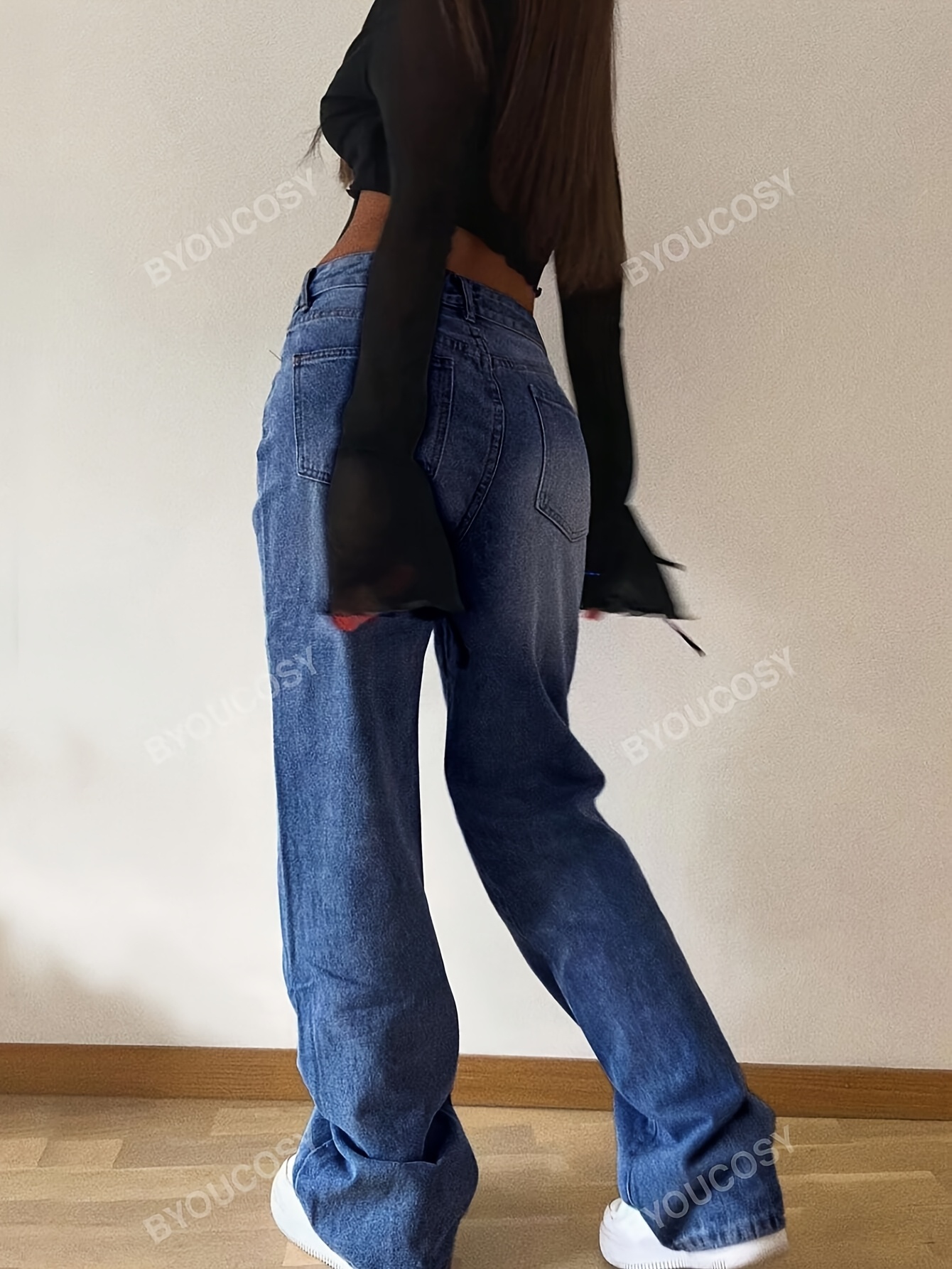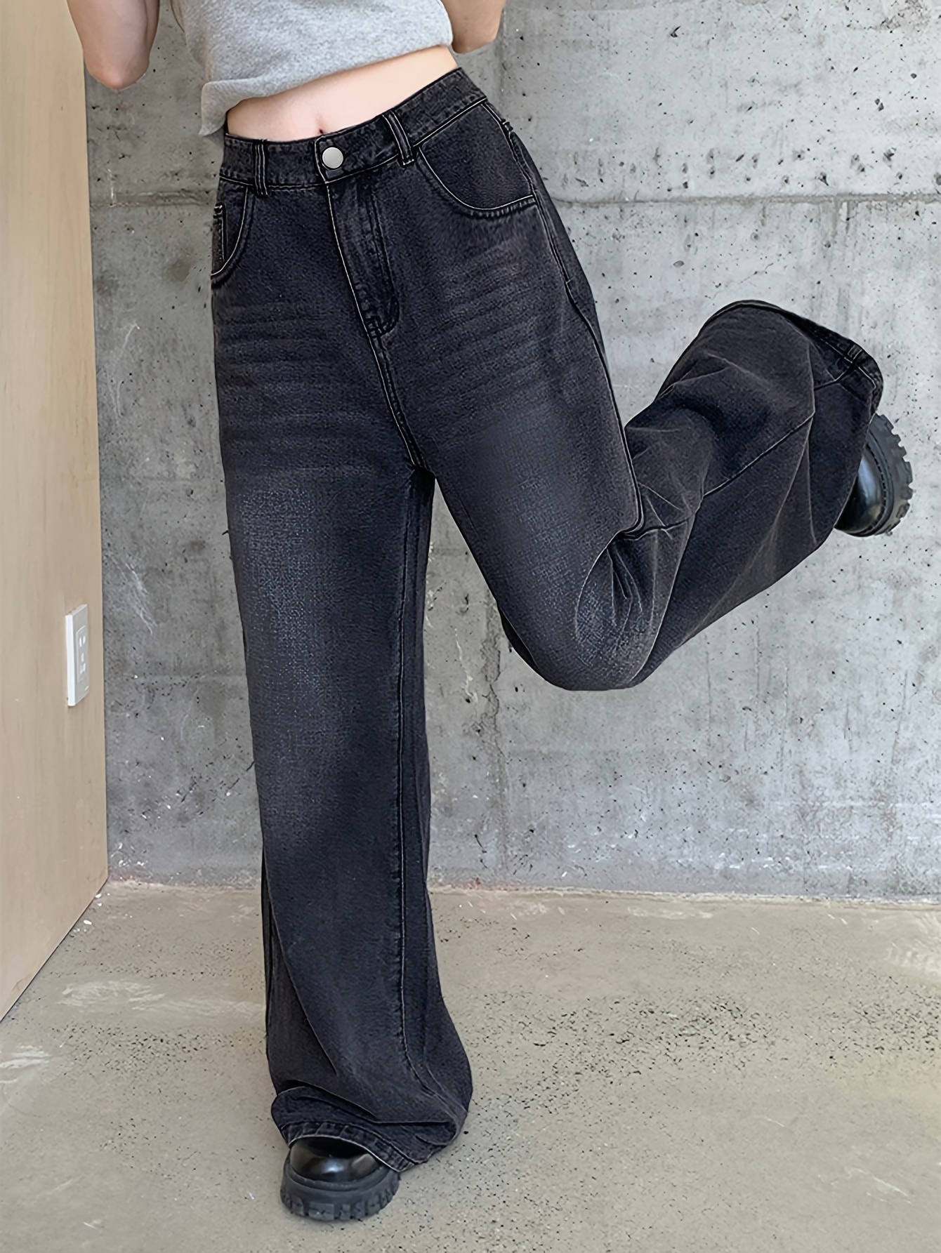 Jeans Femme Taille Haute Jambe Large Non Transparent Lavable Toute Saison Décontracté et Formel Polyvalent Durable