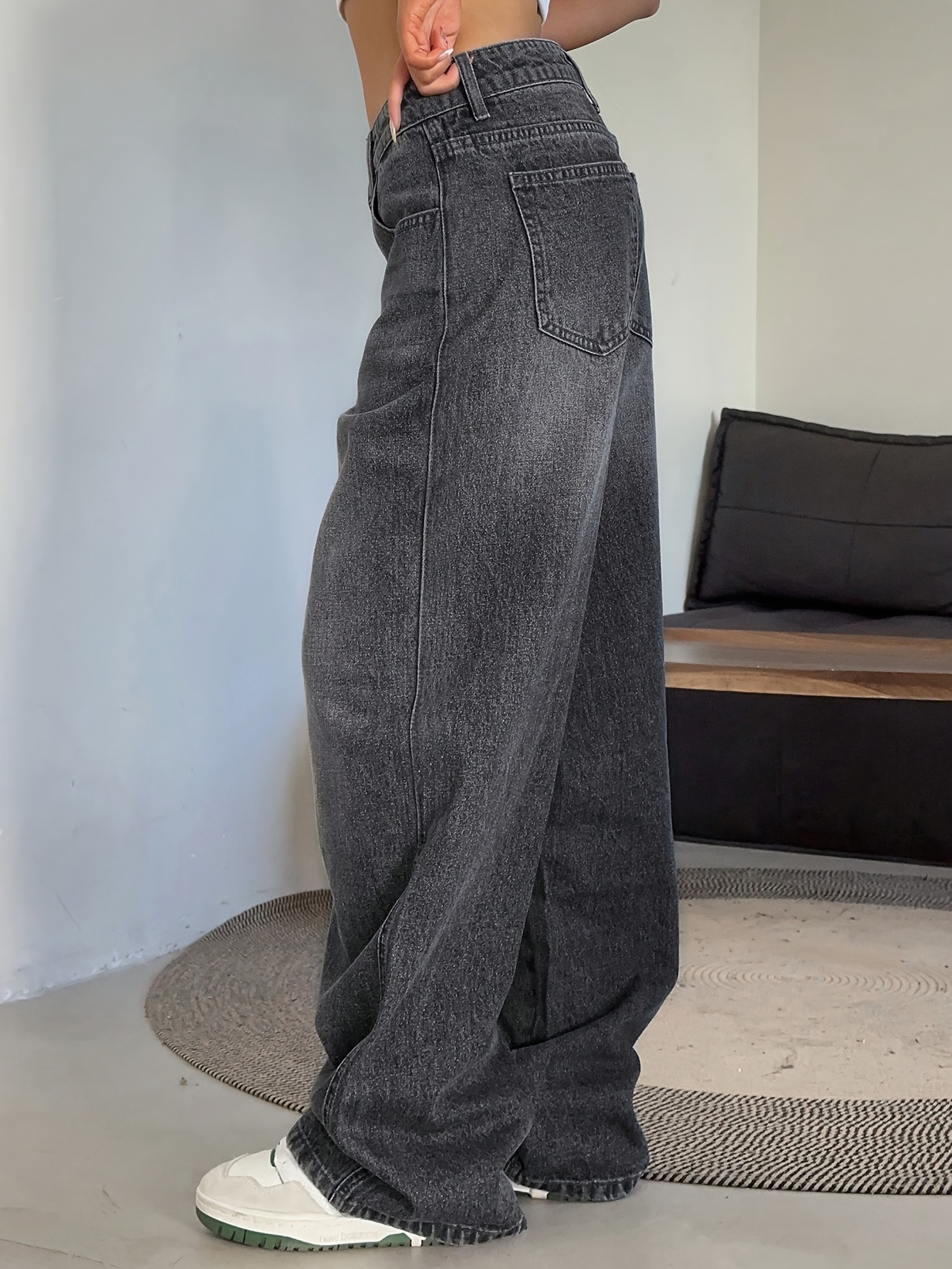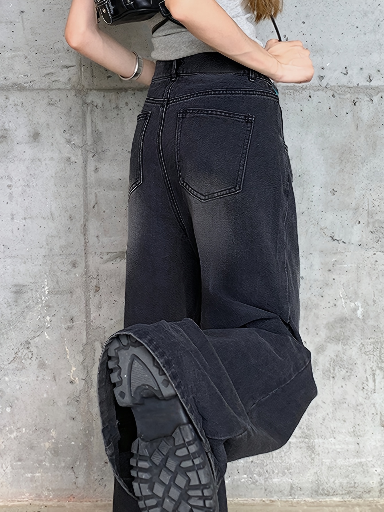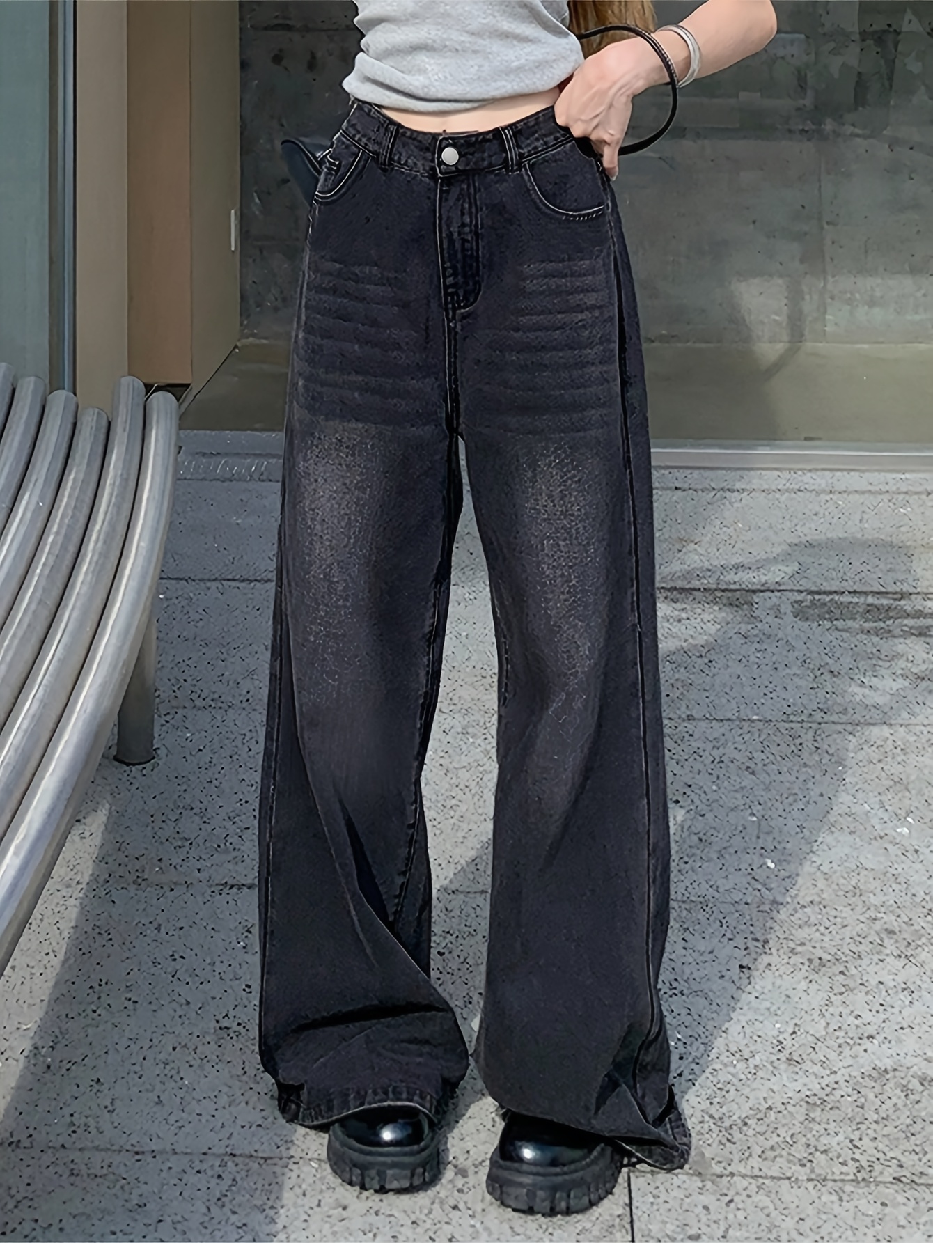 Jeans Femme Taille Haute Jambe Large Non Transparent Lavable Toute Saison Décontracté et Formel Polyvalent Durable