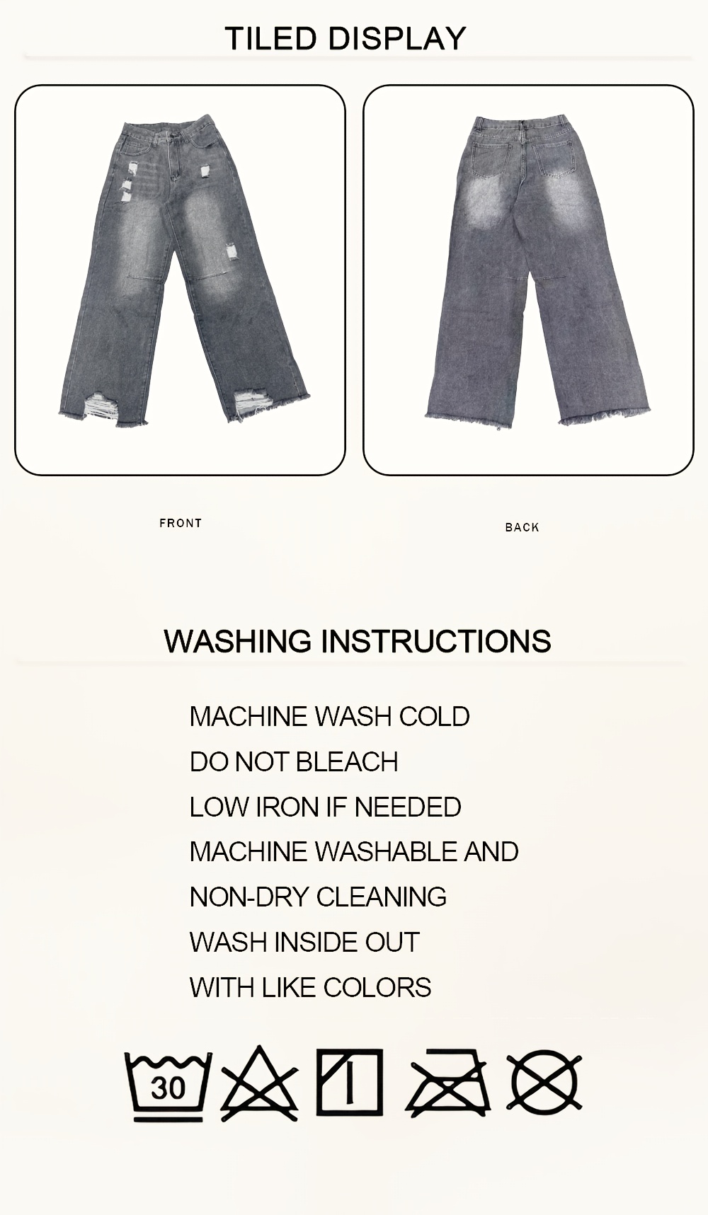Operation Instruction: Machine wash, do not dry clean