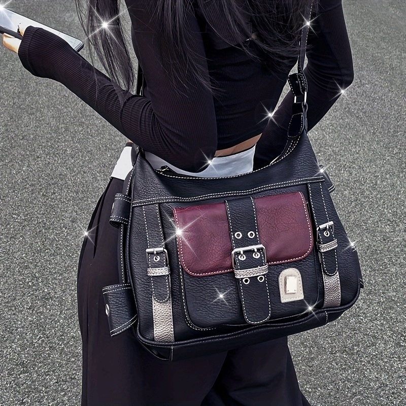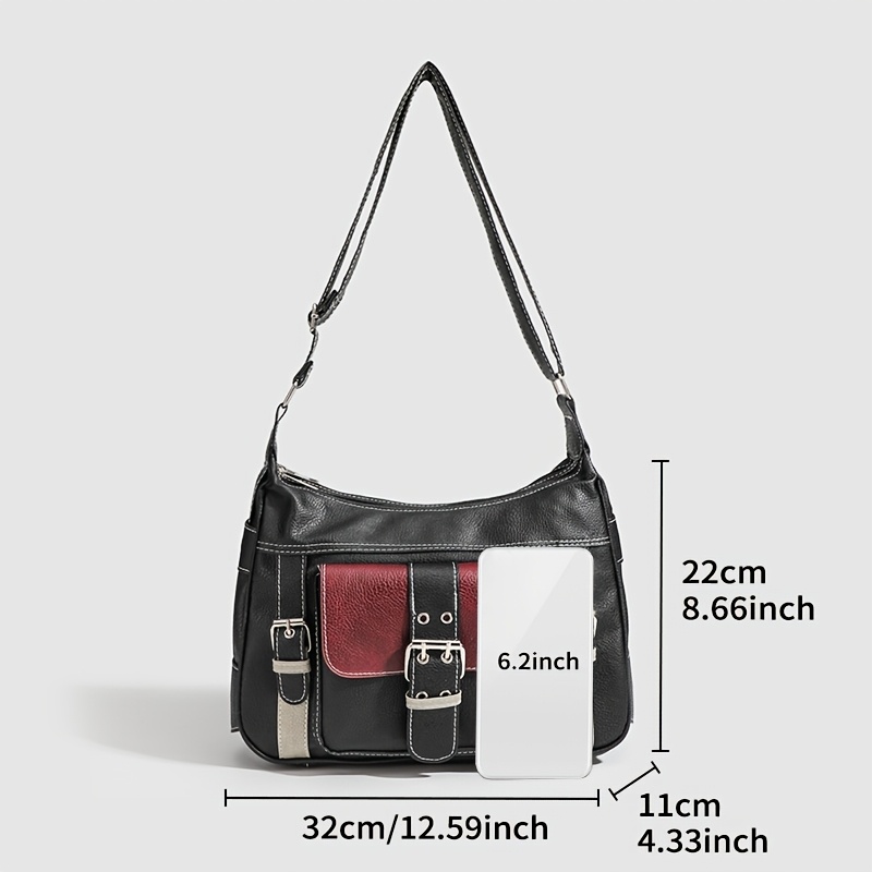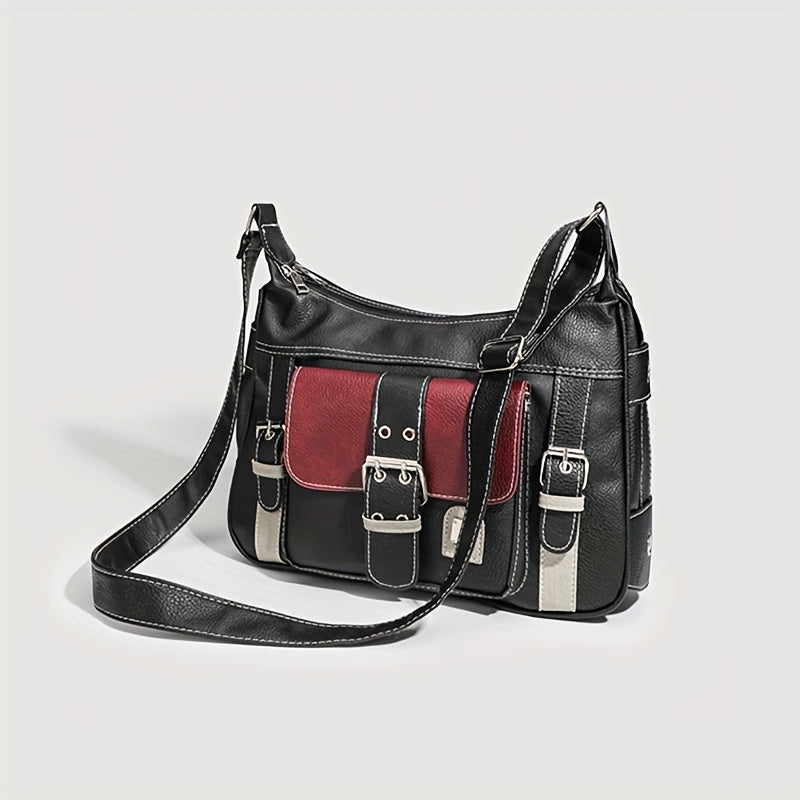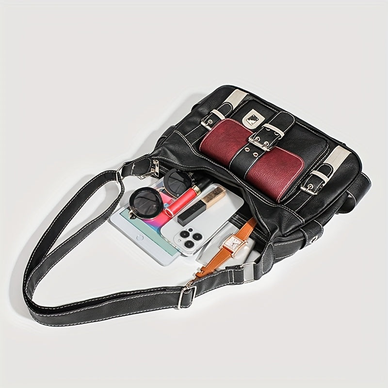 Sac tote rétro urbain pour femmes – Noir, bandoulière réglable, poches zippées