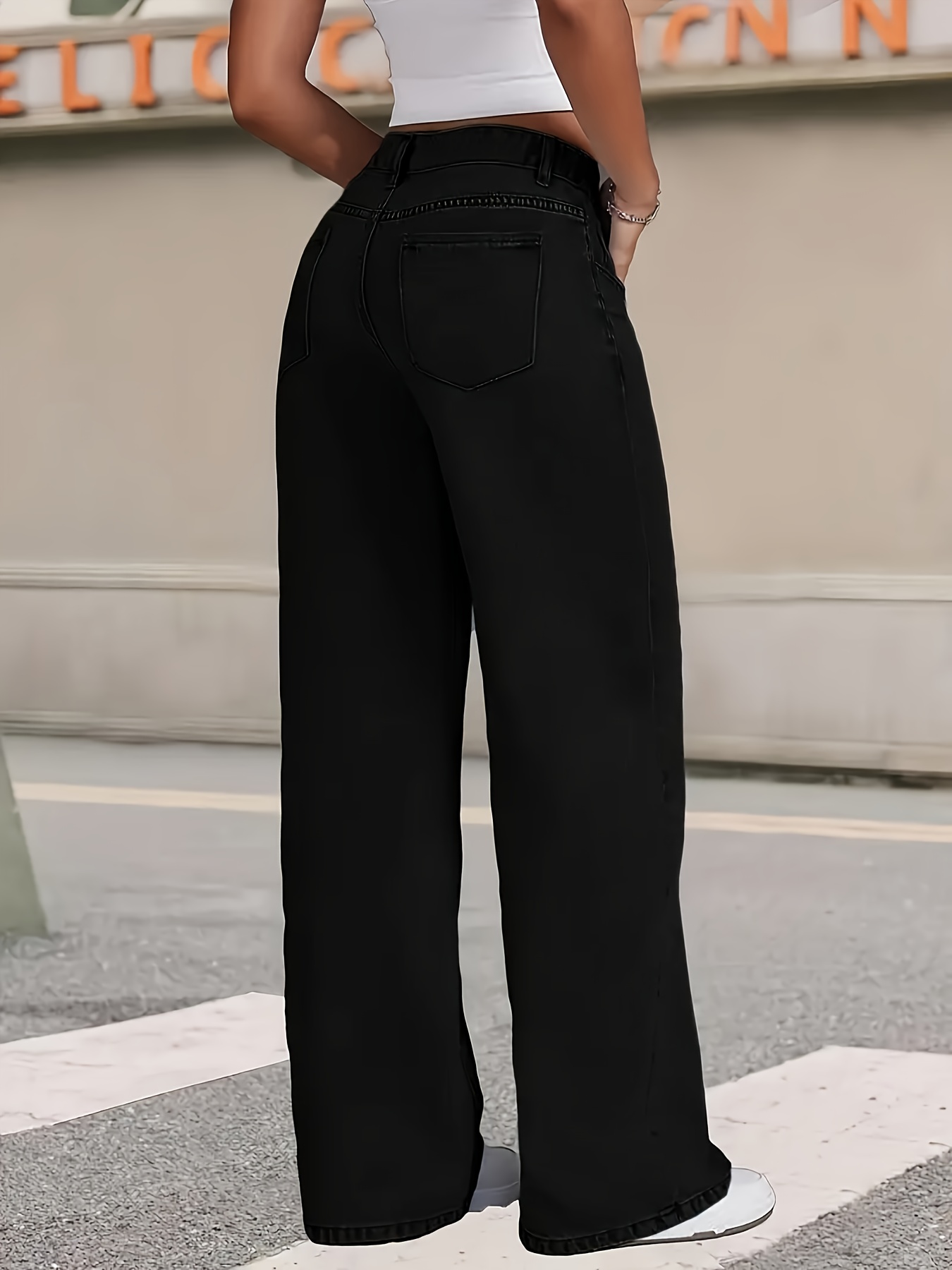 Jeans Femme Jambe Droite Couleur Unie Noir Jambe Large Taille Haute Toute Saison Décontracté Durable Polyvalent