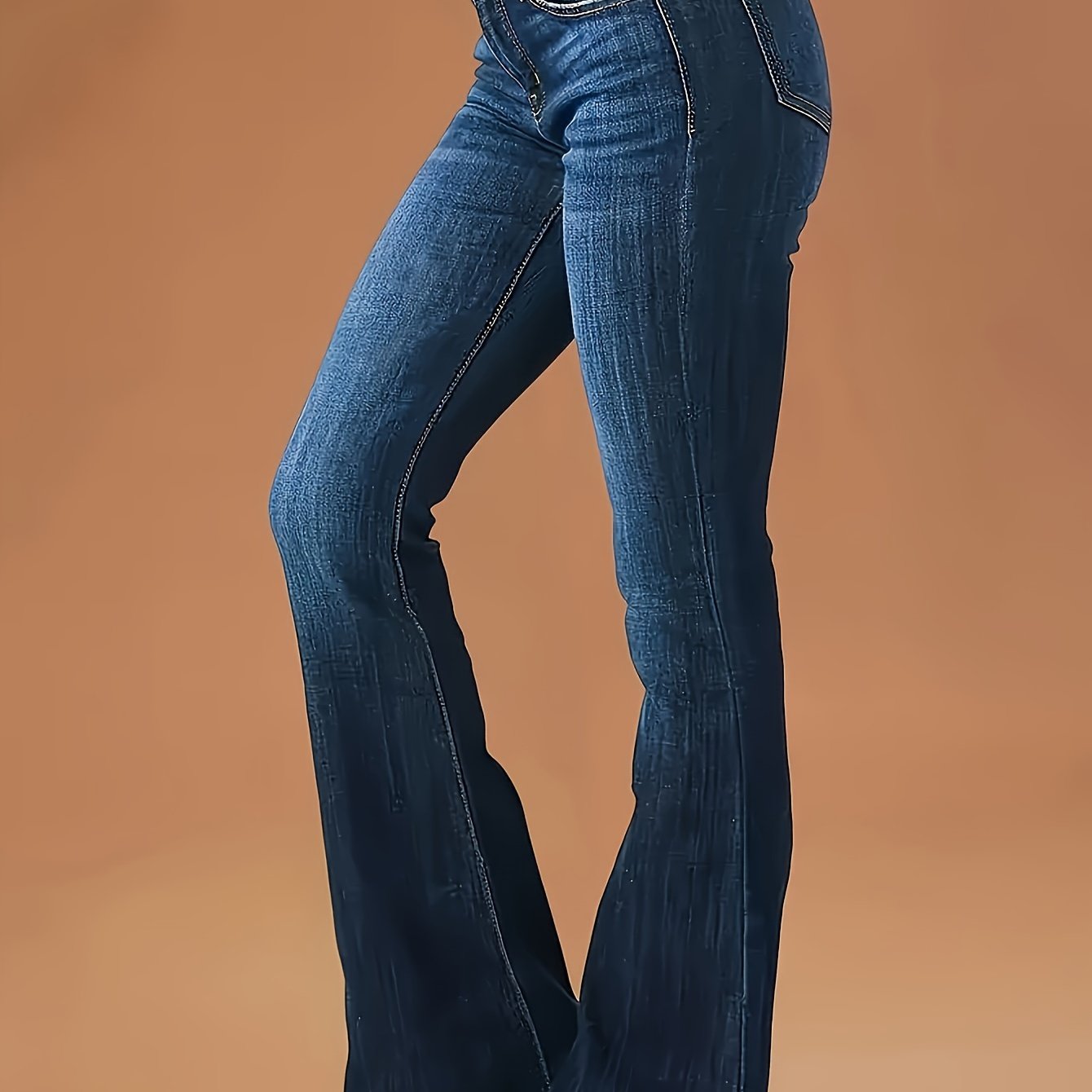 Jean évasé stretch pour femme - Pantalon élégant à jambes pattes d'éléphant en tissu opaque