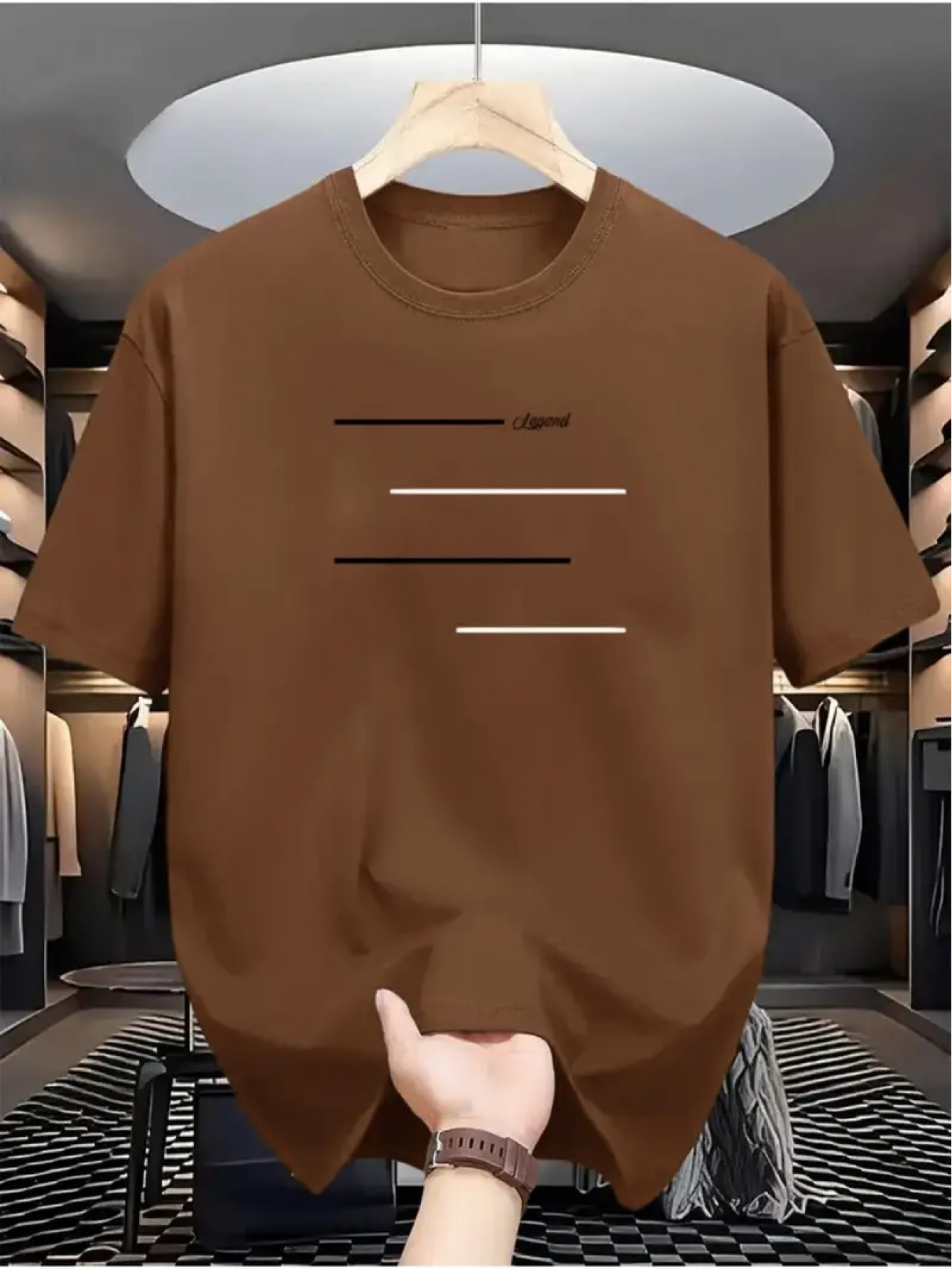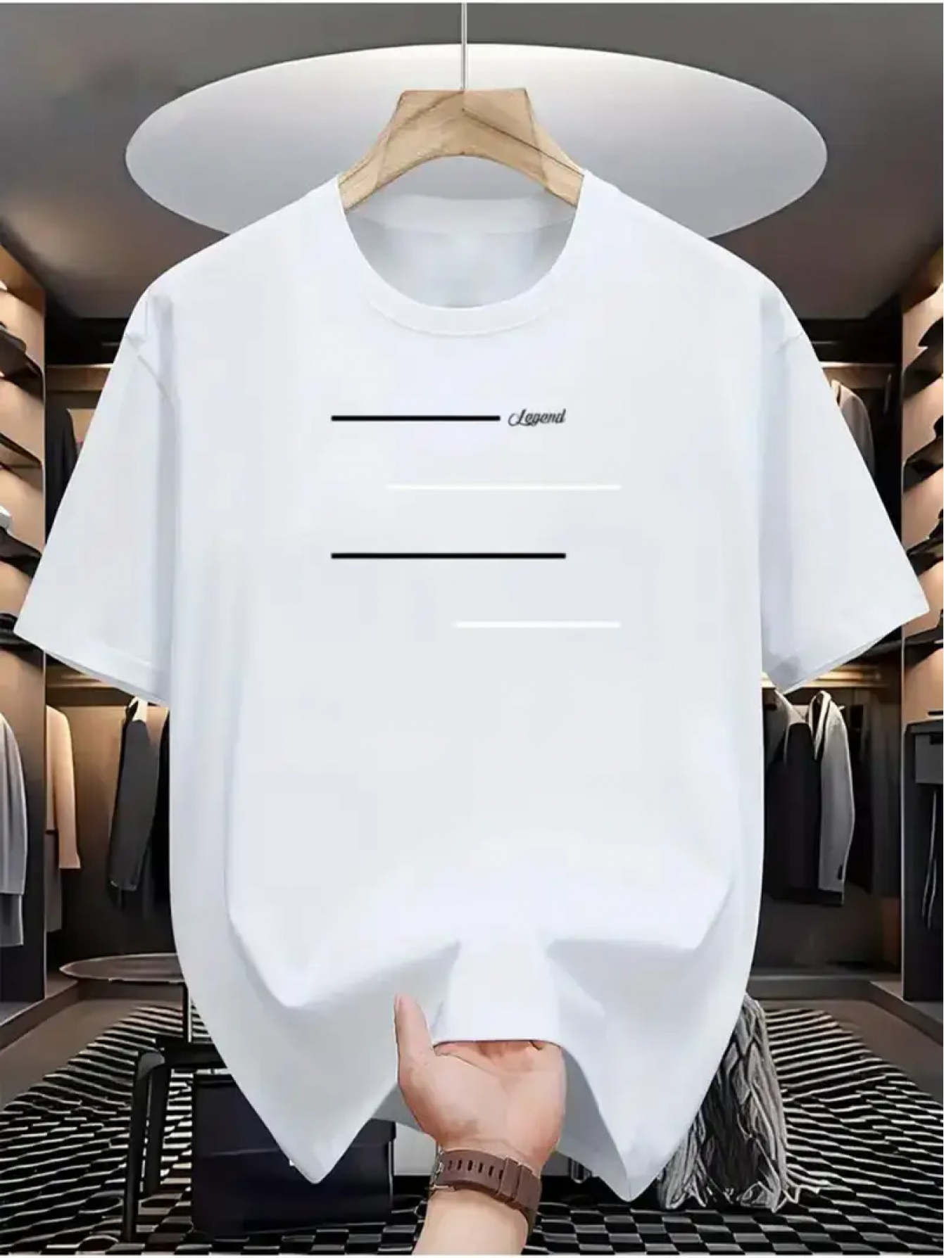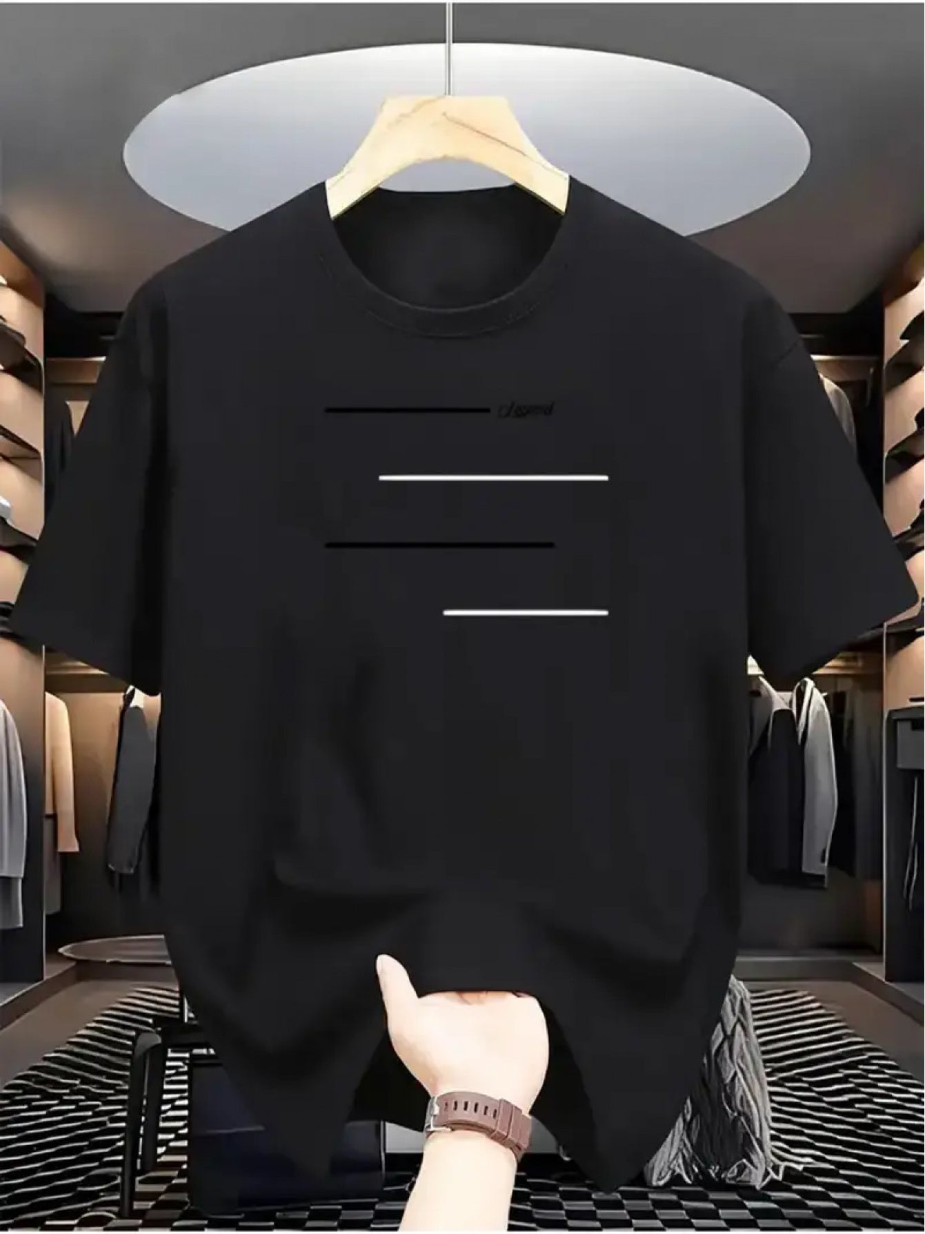 100% Cotton Unisex Loose Fit T-Shirt, Round Neck, Pure Cotton Positioning Print, 4pcs Horizontal Line Pattern, Casual Short Sleeve, Comfortable for Middle-Aged and Young Men, Trendy Adult T-Shirt XZL13