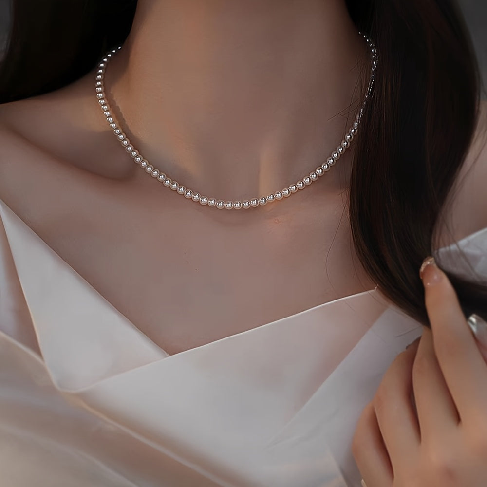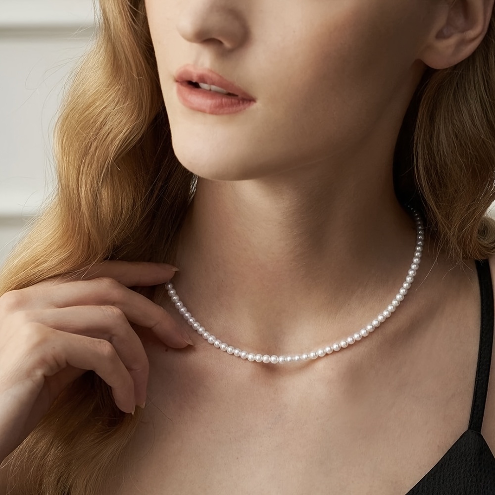 Collier Femme Vintage Français – Perles Imitation 4 mm, Ras-du-Cou Élégant avec Fini Lisse et Brillant, Polyvalent pour Quotidien et Soirées, Bijou Classique Intemporel, Cadeau Raffiné