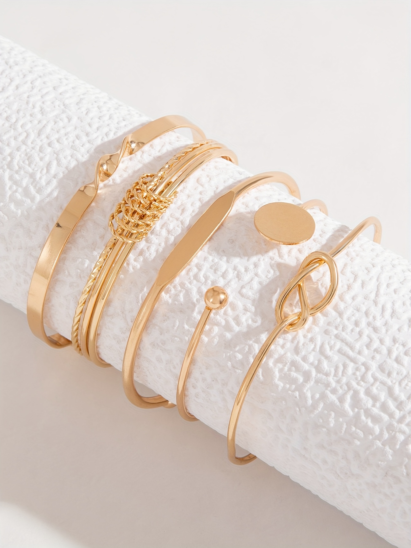 Bracelet métallique tendance et polyvalent, design nœud ouvert et bangle rond torsadé, disponible à l’unité ou par lot de 5, cadeau idéal pour le travail, usage quotidien, soirées ou entre amis