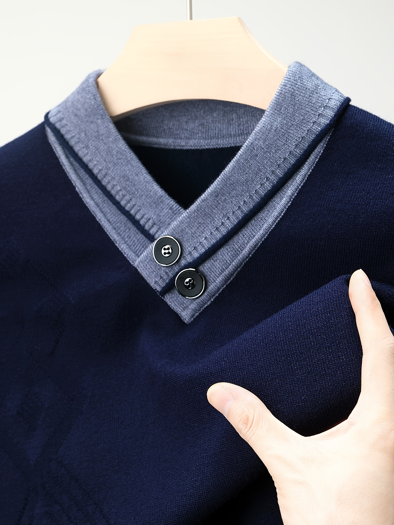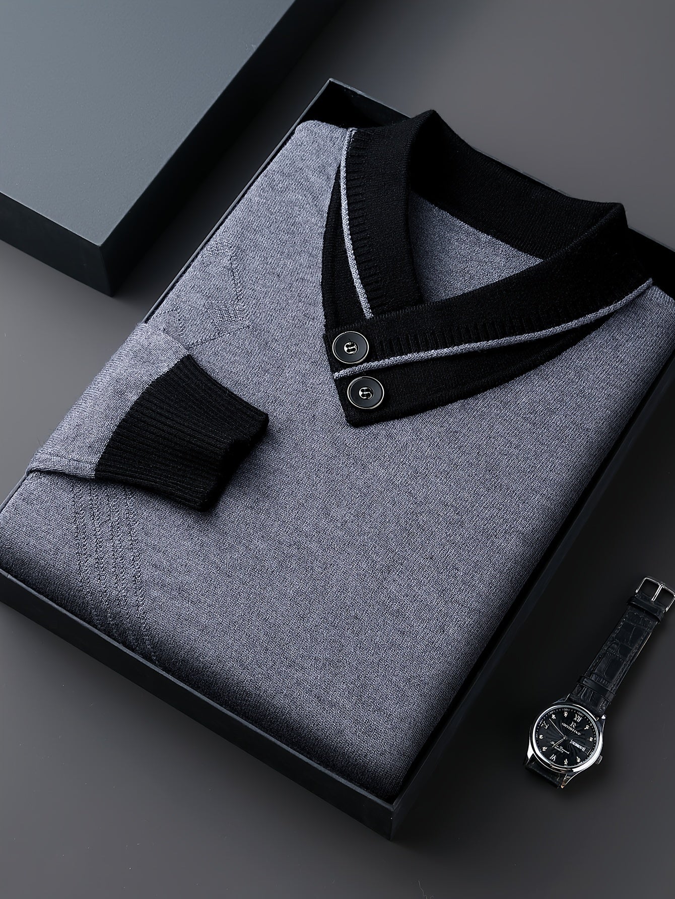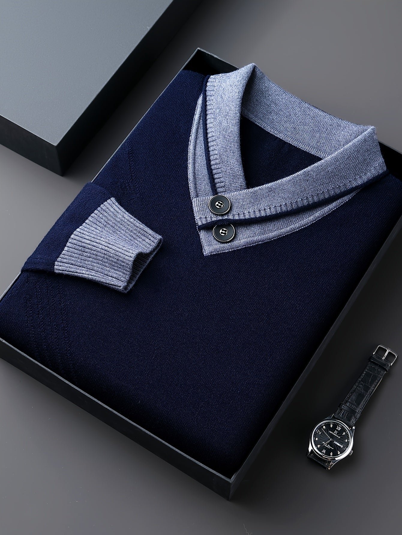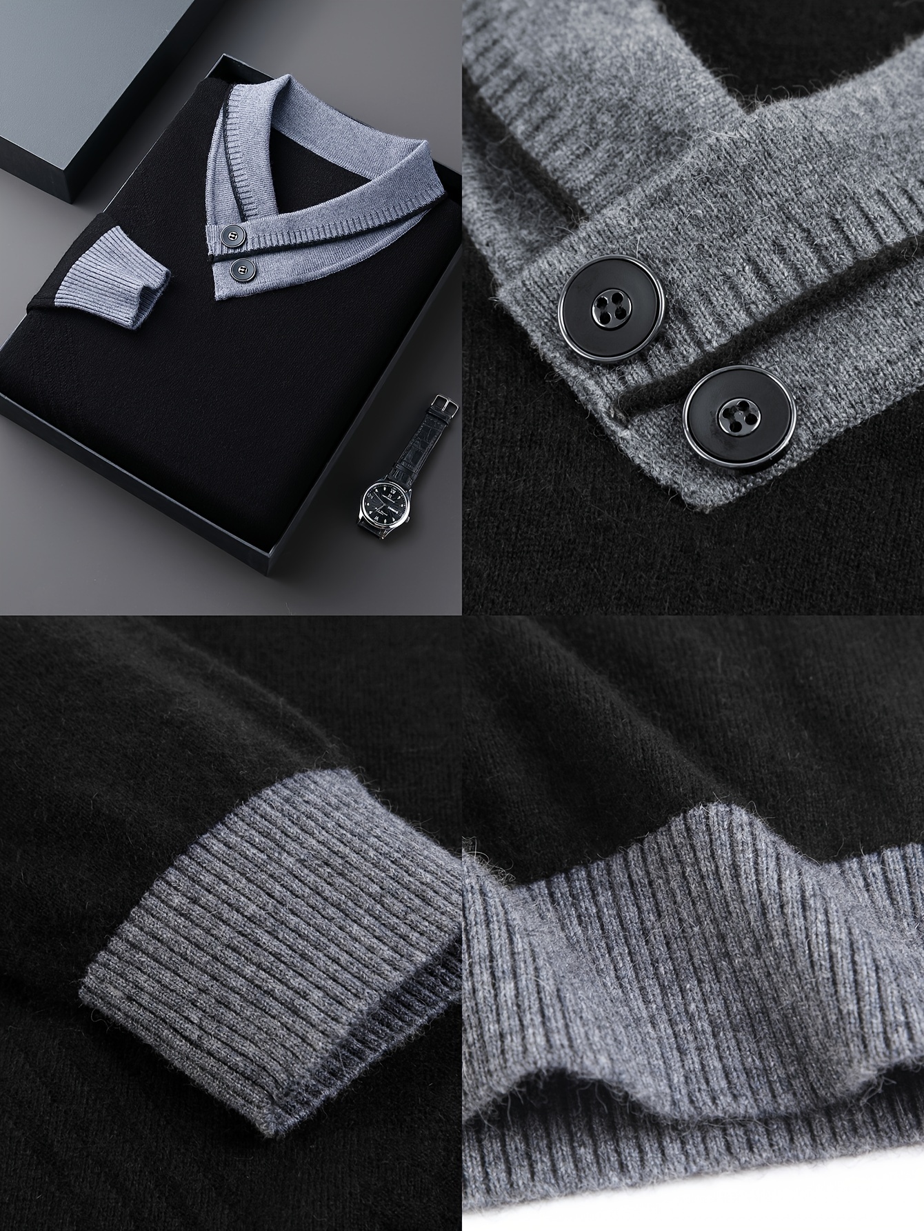 1pc Men'S Winter V-Neck Sweater with Dual Button Detail - Color Block Knit Pullover, Viscose Fabric, Long Sleeve, Regular Fit, Casual Style for Fall/Winter - Soft, Warm, Skin-Friendly Inner Layer, Thick