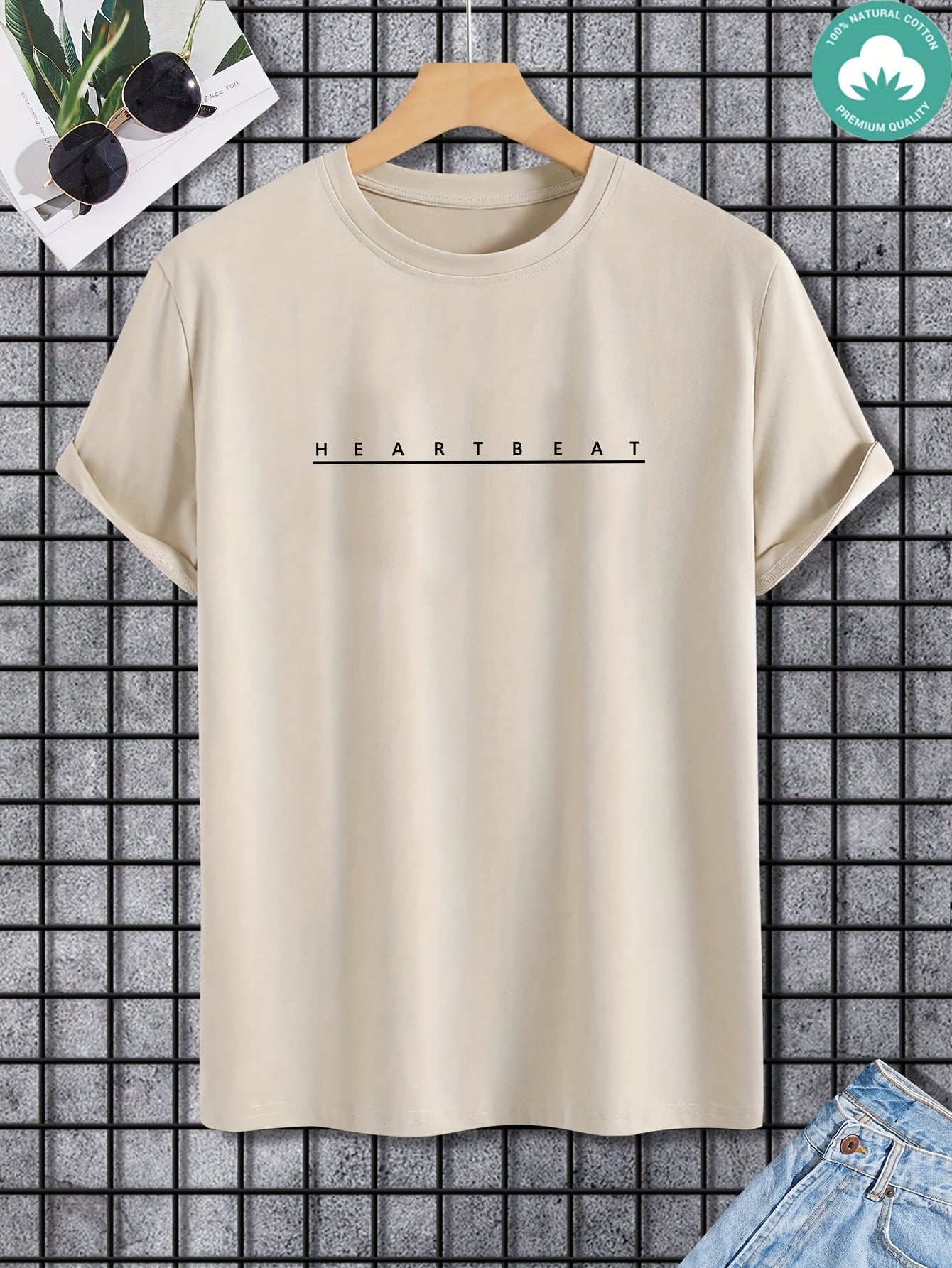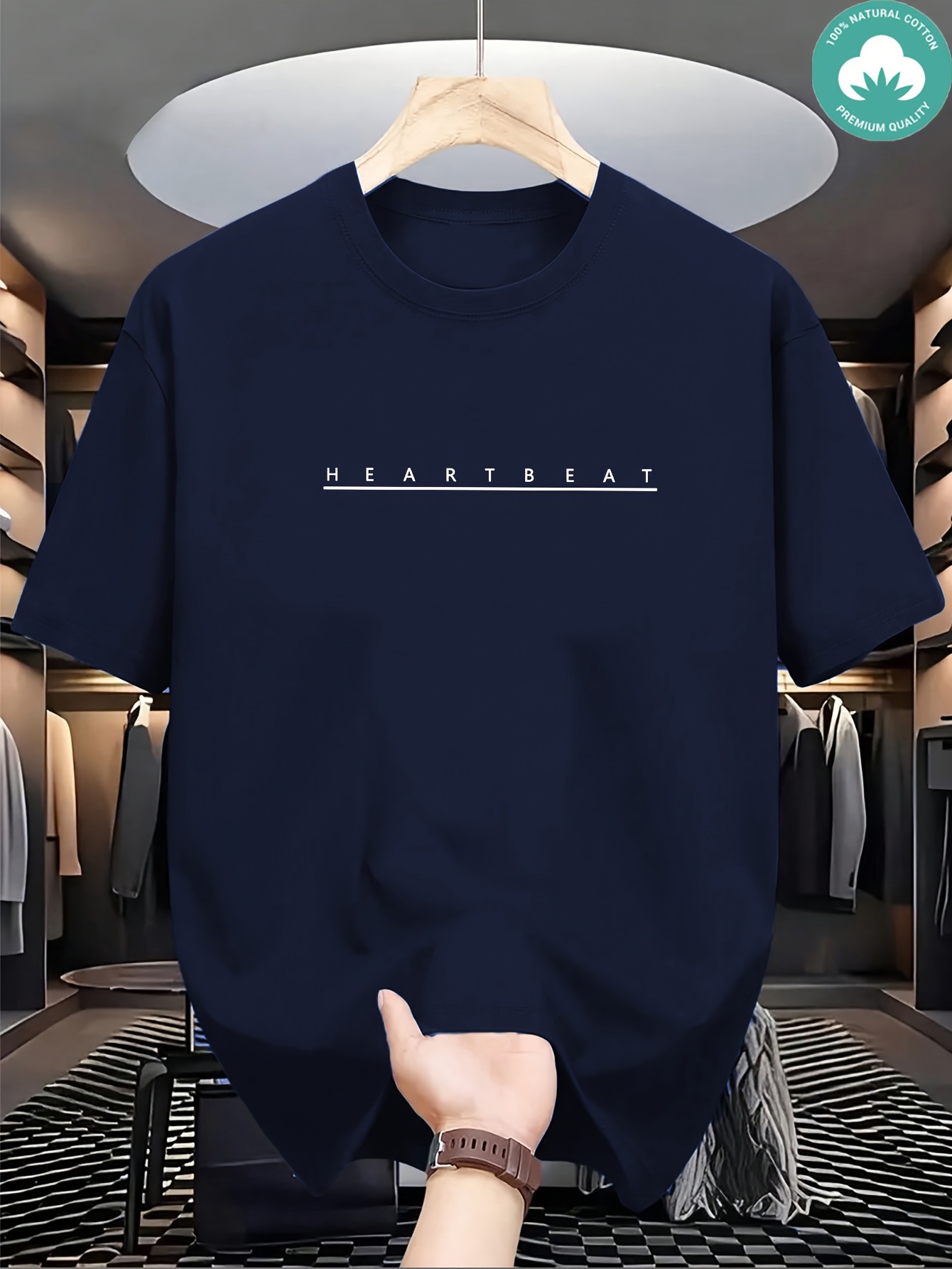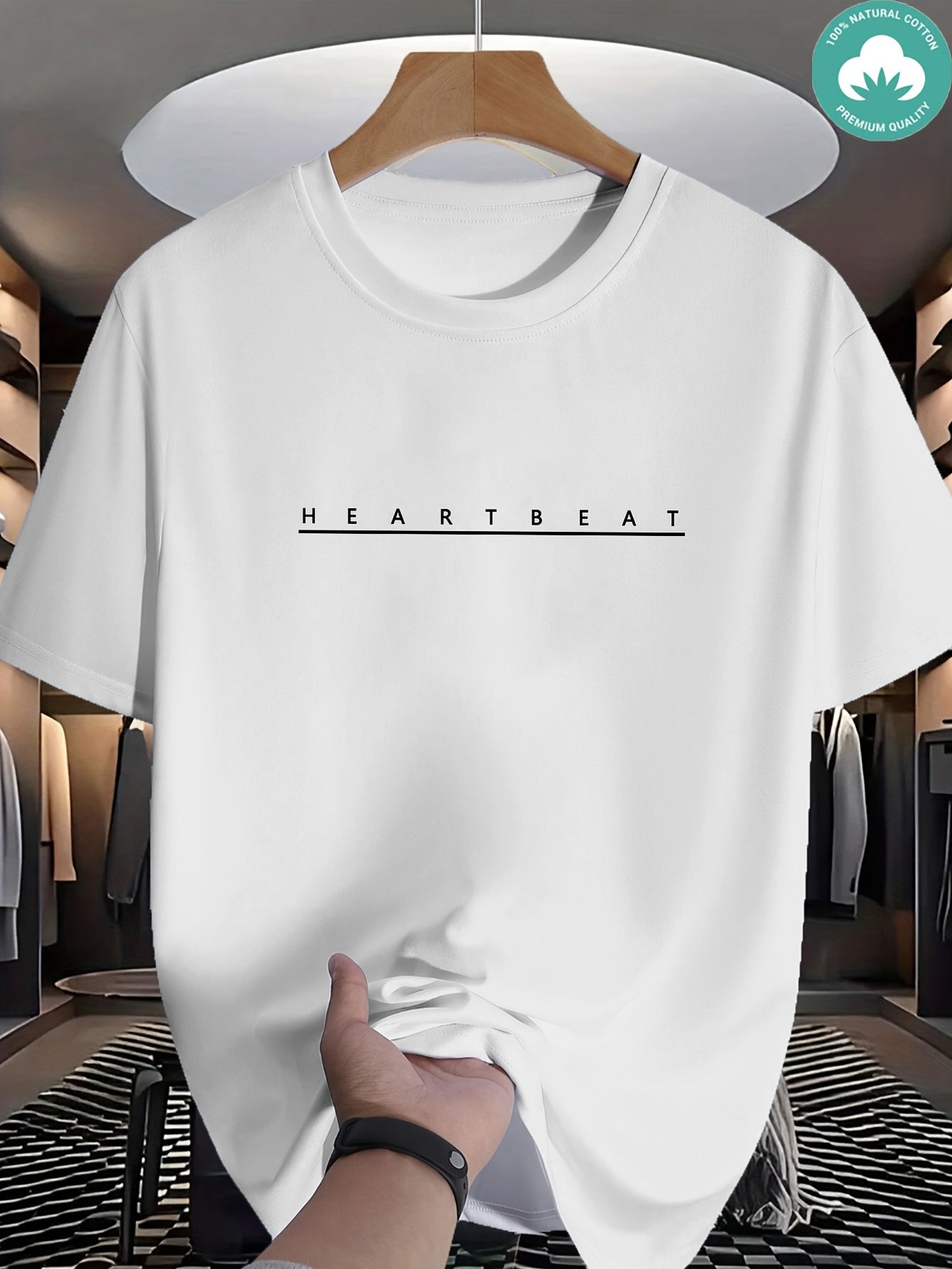 2025 Summer New Arrival Plus Size Men's Fashion Trendy Comfortable Designer Letter "heart beat" Graphic Printed Top Tee 180g 100% Cotton, PLUS SIZE