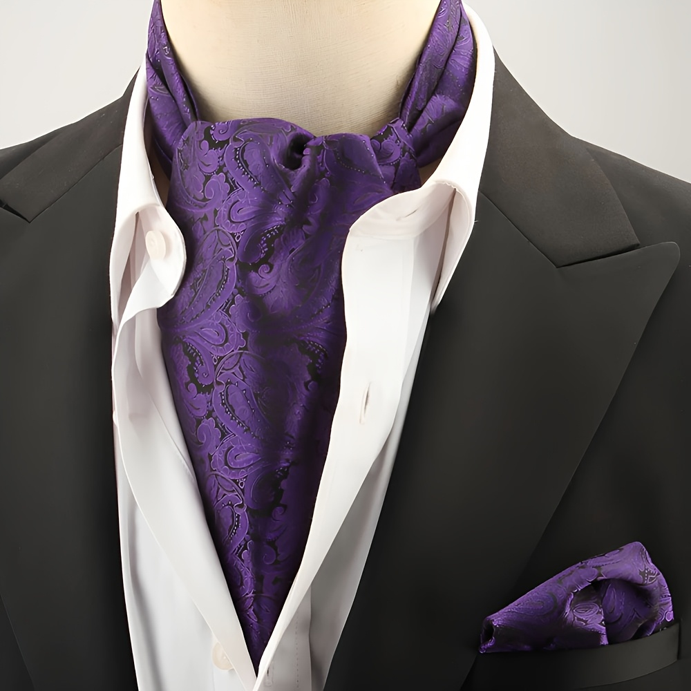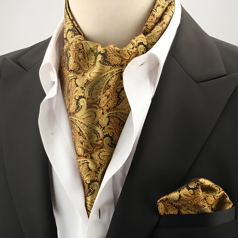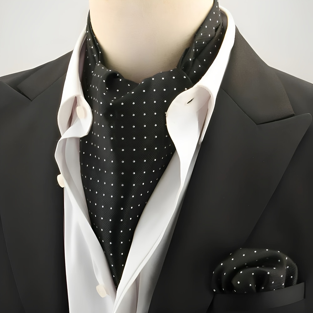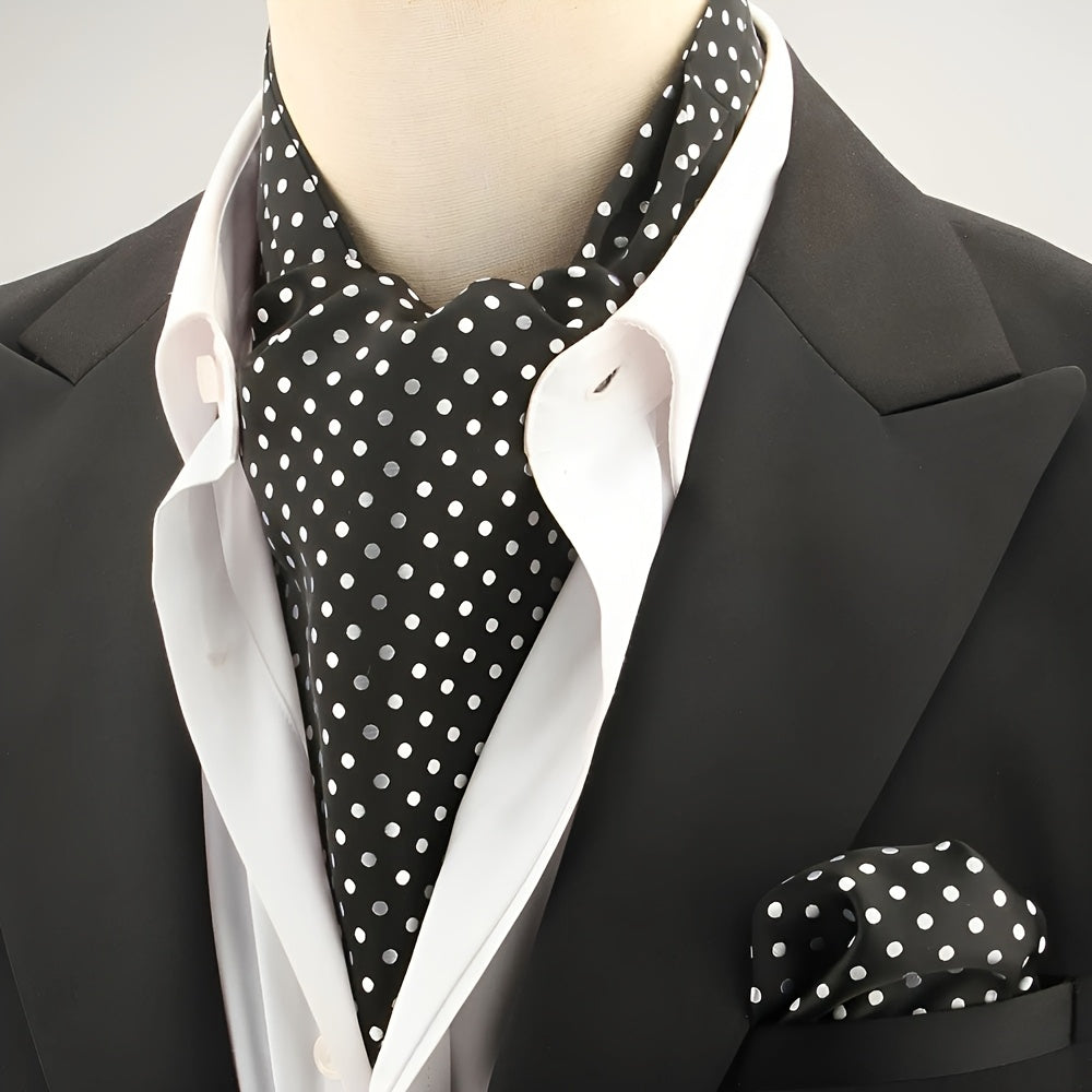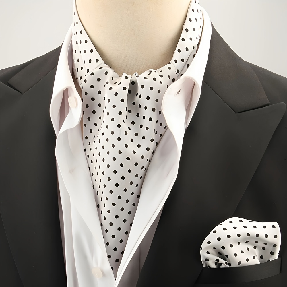 2pcs Ascot Homme – Écharpe et Pochette Style Rétro Britannique pour Mariages et Événements, Motifs Pois/Paisley/Fleur