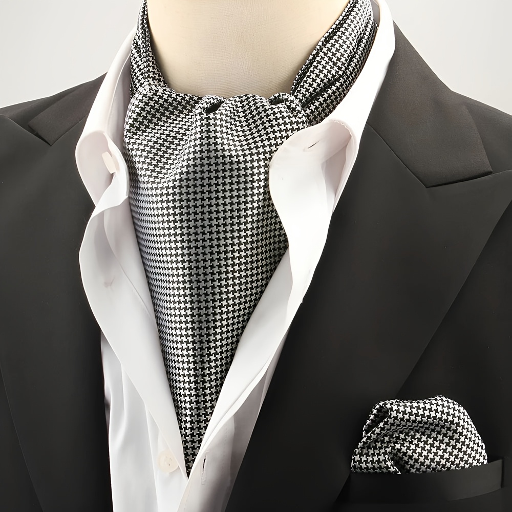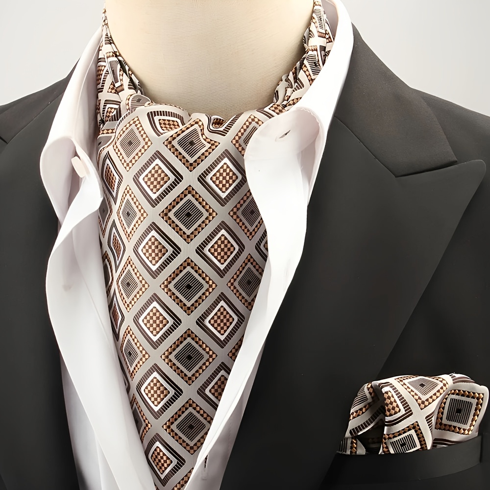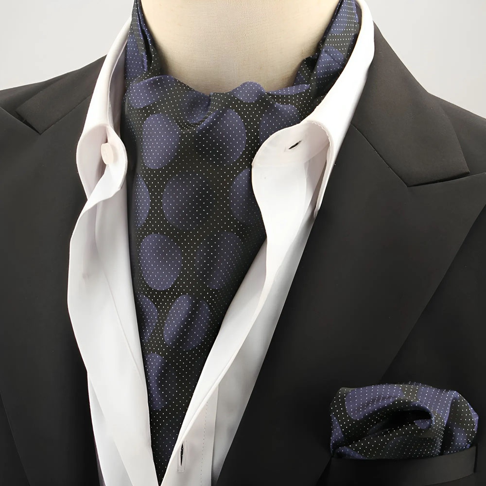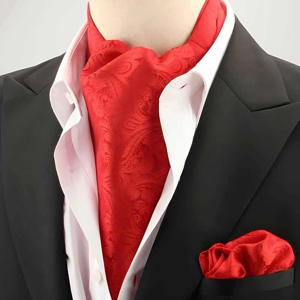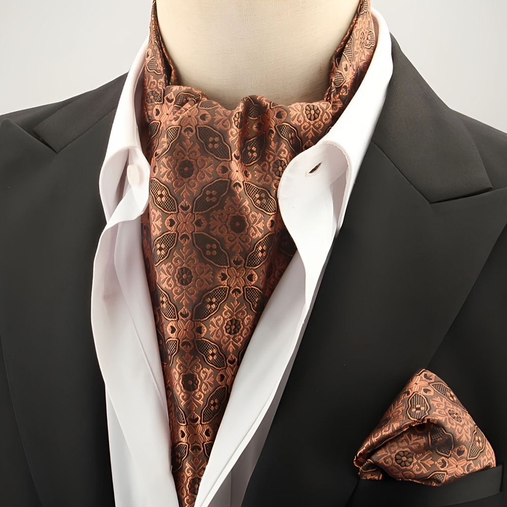 2pcs Ascot Homme – Écharpe et Pochette Style Rétro Britannique pour Mariages et Événements, Motifs Pois/Paisley/Fleur
