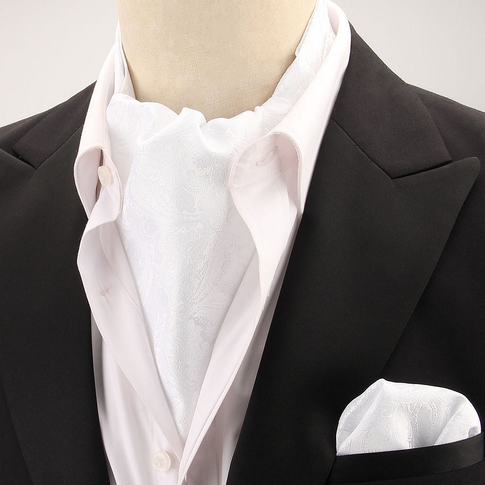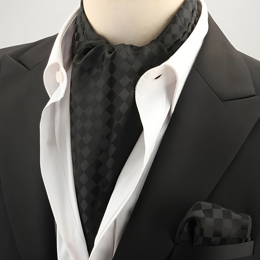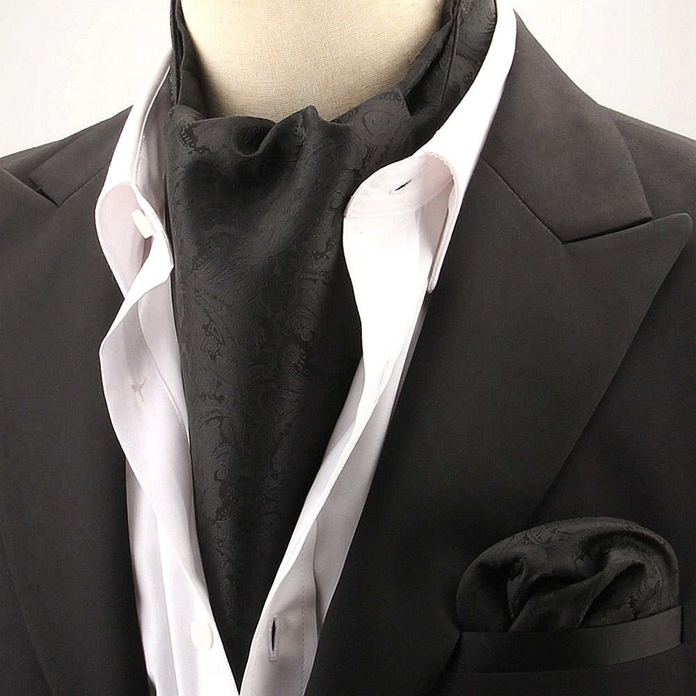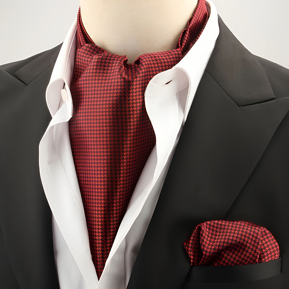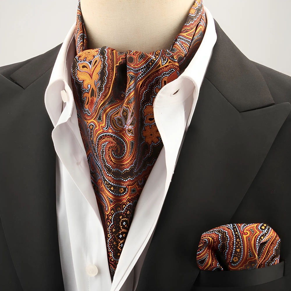 2pcs Ascot Homme – Écharpe et Pochette Style Rétro Britannique pour Mariages et Événements, Motifs Pois/Paisley/Fleur