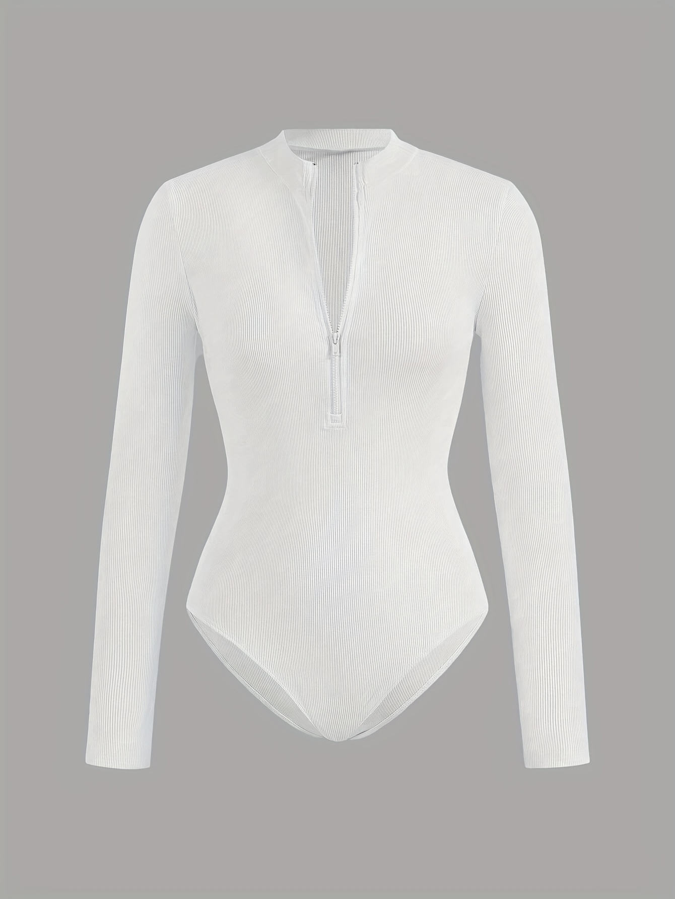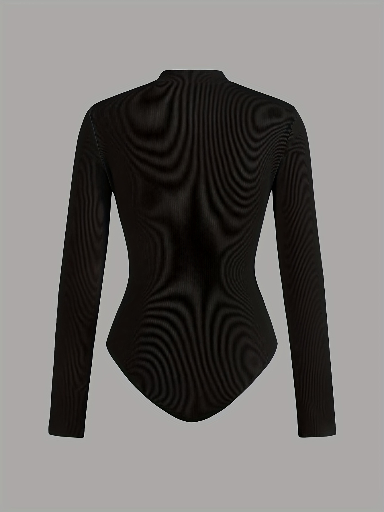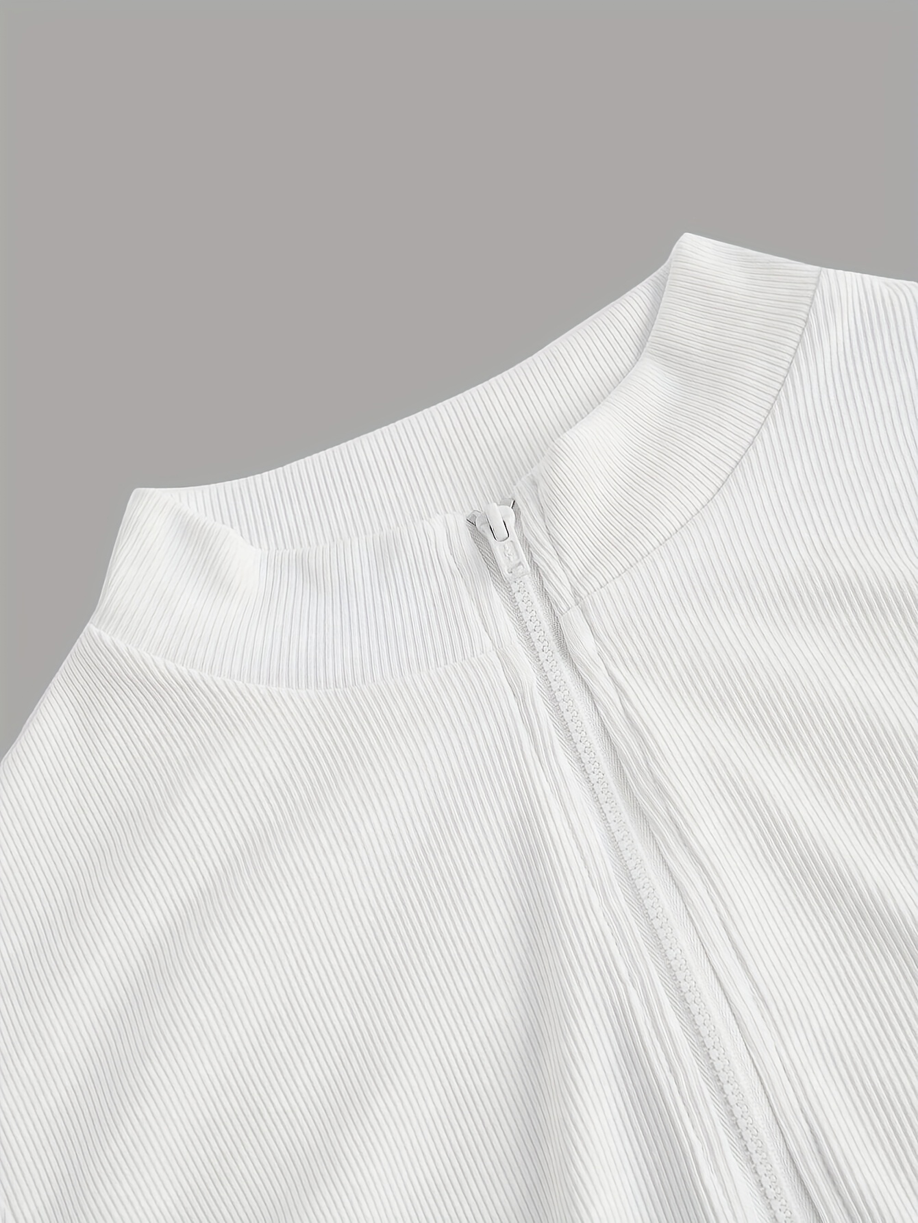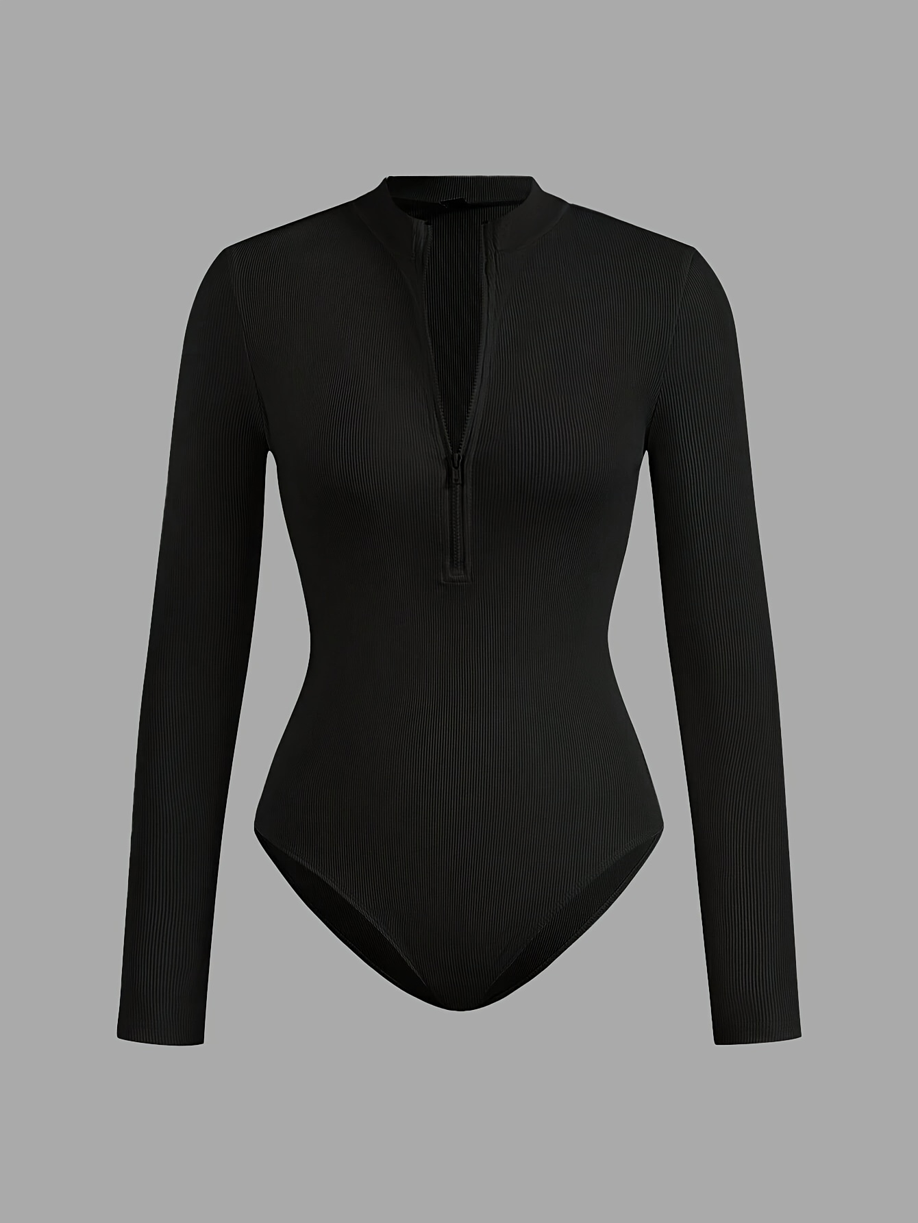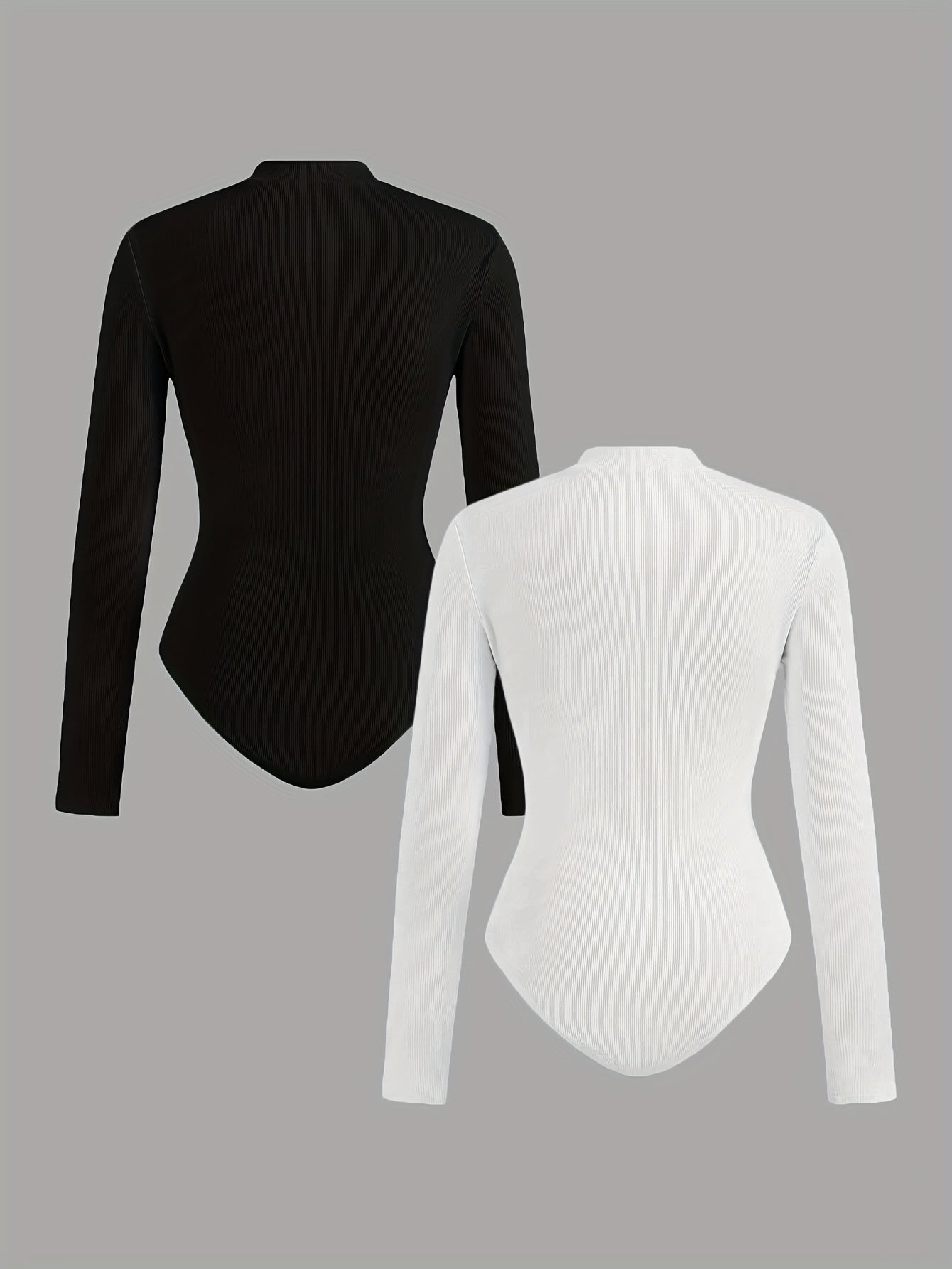 Ensemble 2 pièces – Bodysuits Slim Fit à Manches Longues, Col Montant zippé, Noir et Blanc
