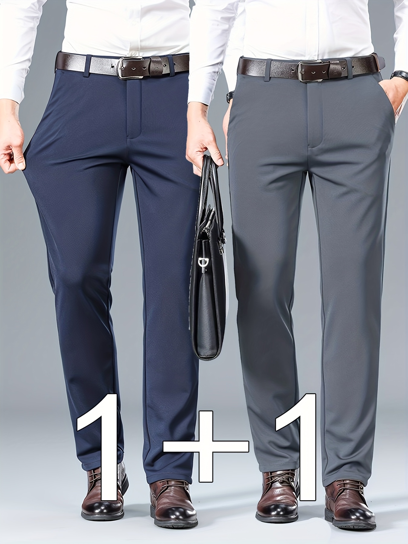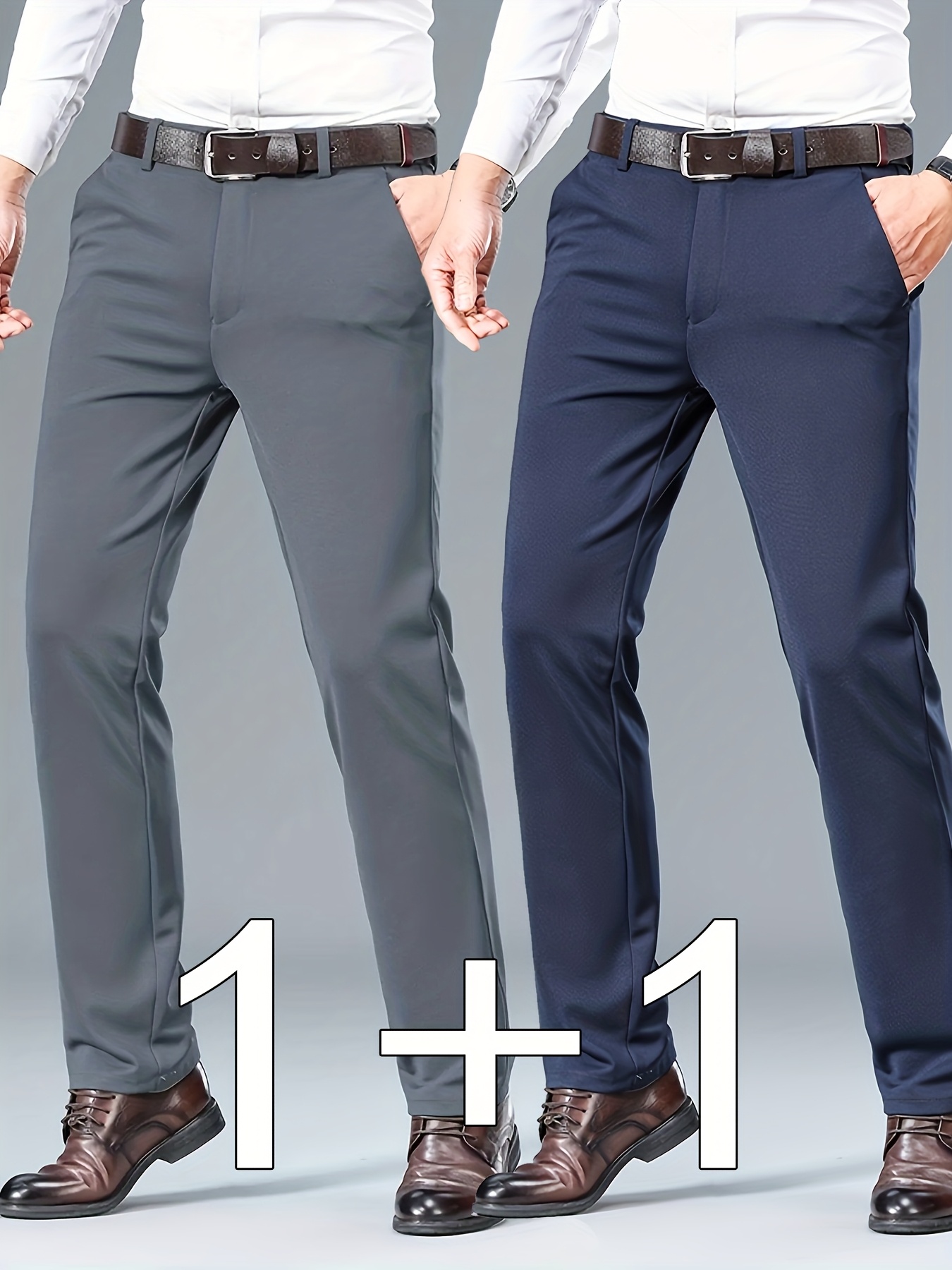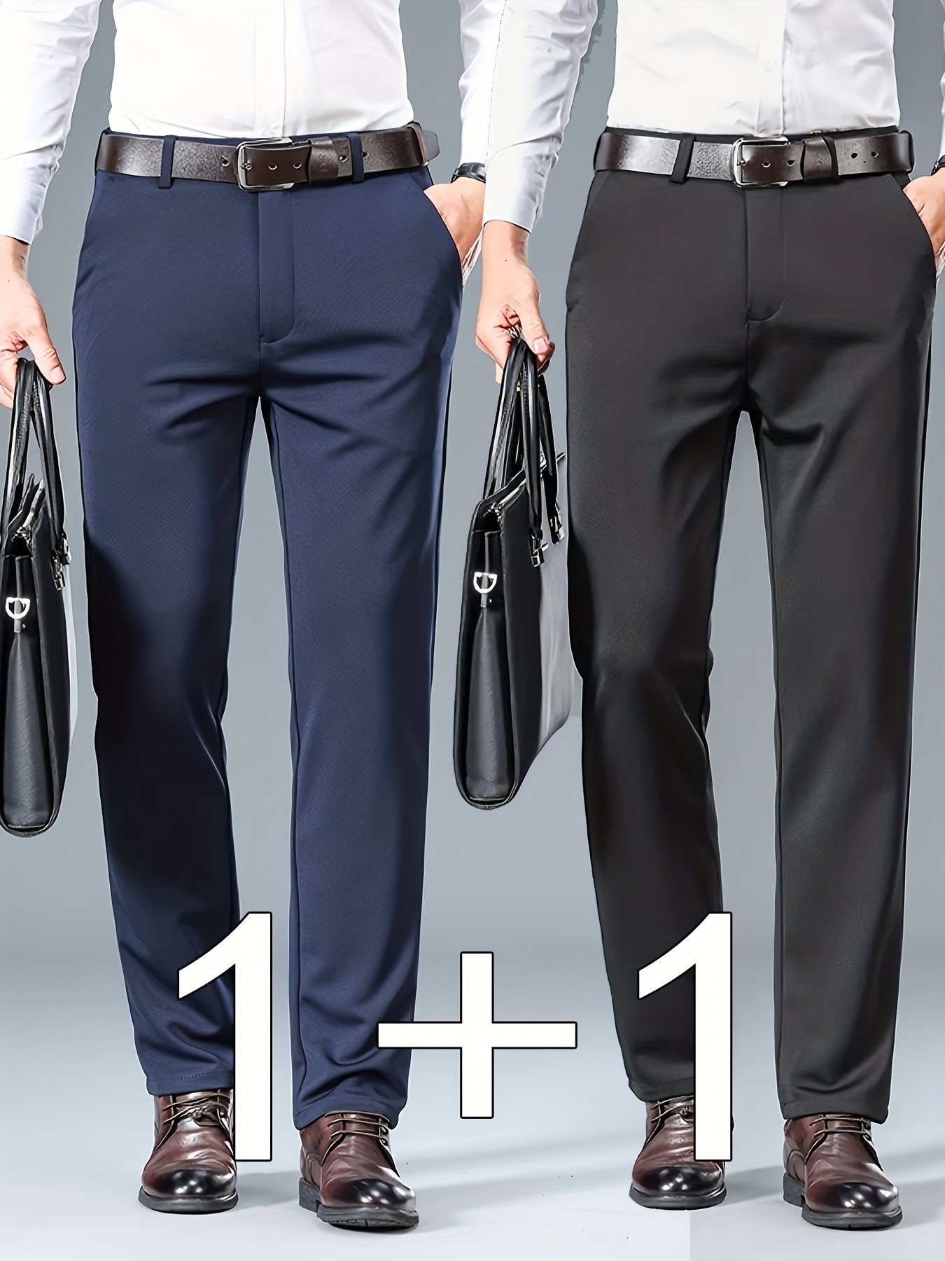 2pcs Men's Stretch Wrinkle- No-Iron Dress Pants, Professional Business Casual Trousers, Loose Fit Versatile Straight-Leg Suit Pants for Office Workers