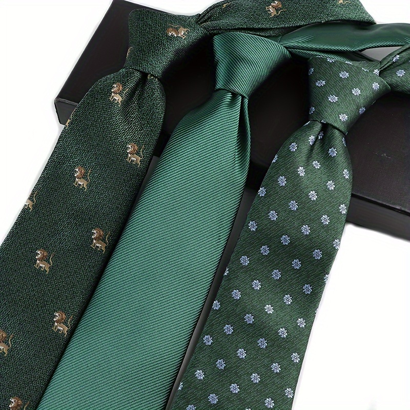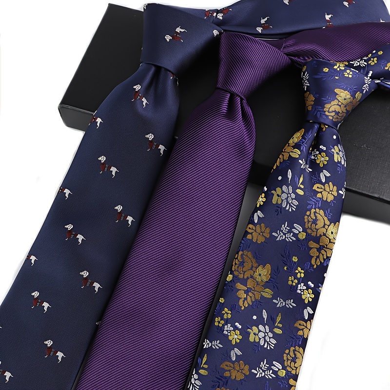 3pcs Set Cravates Hommes – Rayures Animales et Géométriques, Polyester, Cadeau Mariage & Bureau