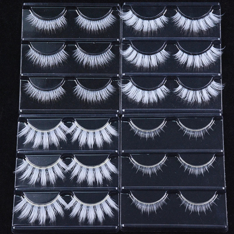 3 paires de cils blancs – Cils colorés en dentelle, volumineux et doux, en soie vegan – Pour poupée, cosplay, fête, Halloween et maquillage