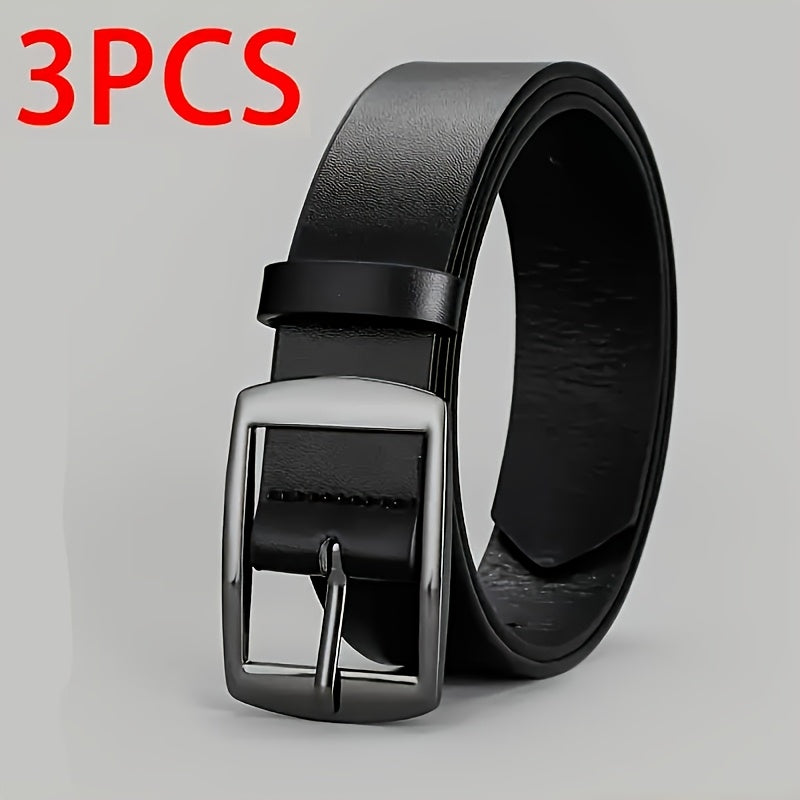 Lot de 3 Ceintures Homme FLAGIA – Boucle Carrée Métallique, Ceintures Designer Décontractées pour Jeans, 3 Couleurs (Marron Clair/Noir/Marron Foncé), Cuir Synthétique de Haute Qualité, Polyvalentes pour Usage Quotidien et Tenues Formelles