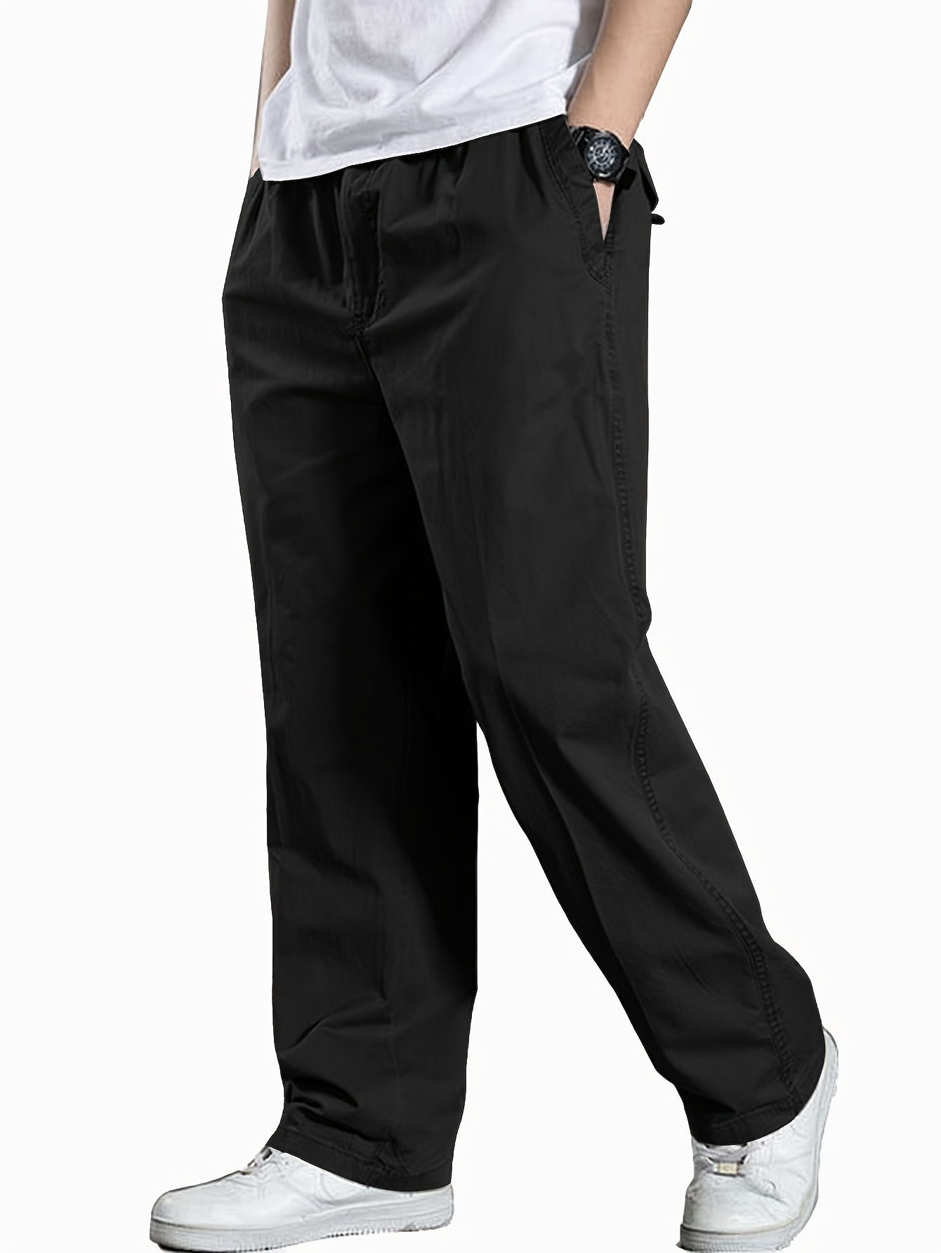 Lot de 3 Pantalons Cargo Homme – Taille Élastique à Cordon, Coupe Ample, Couleurs Unie, Poches, Printemps/Automne