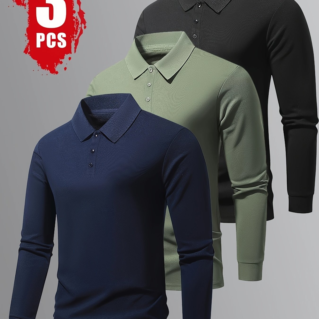 3pcs Men's Long Sleeve Shirts - Casual & Comfortable, Solid Color with Button Detail, Perfect for Fall/Winter