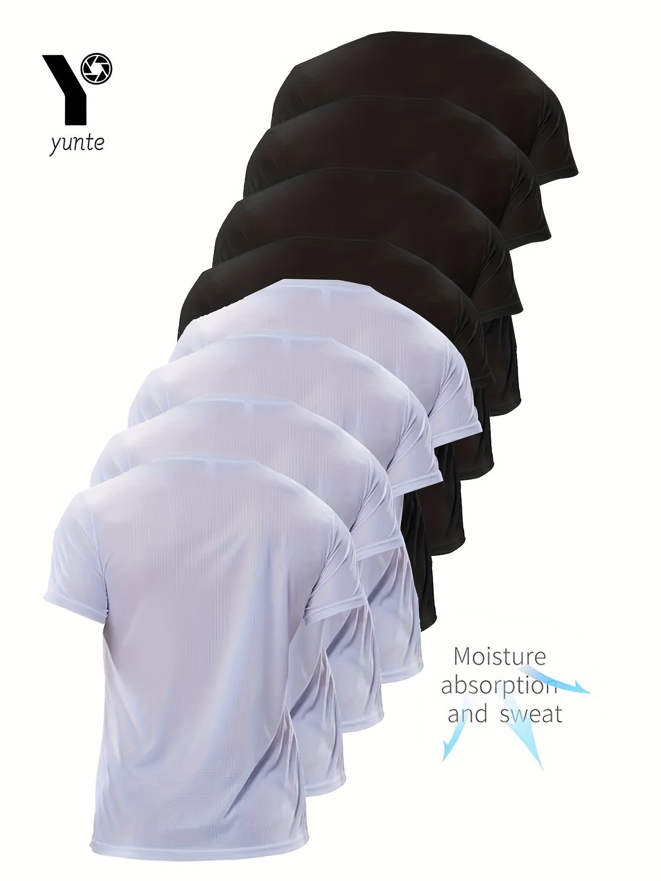 4 White And 4 Black, 8pcs Set of Ultra-Light Men'S Round-Neck T-Shirts - Quick-Drying, Breathable, Moisture-Wicking Shirts Suitable for Workouts, Gyms, And Running, Lightweight And Comfortable, Perfect for Sports Training wit