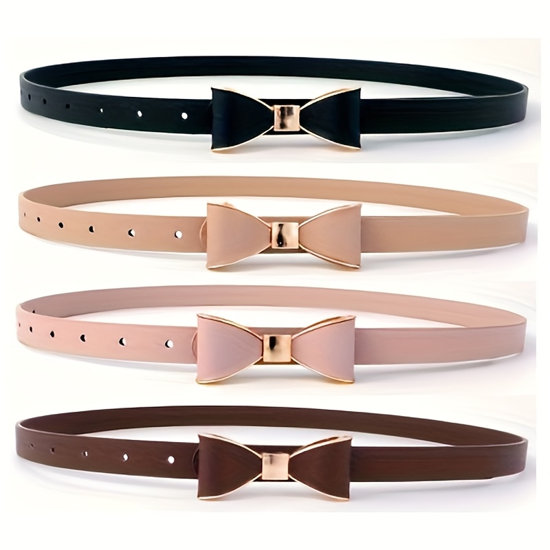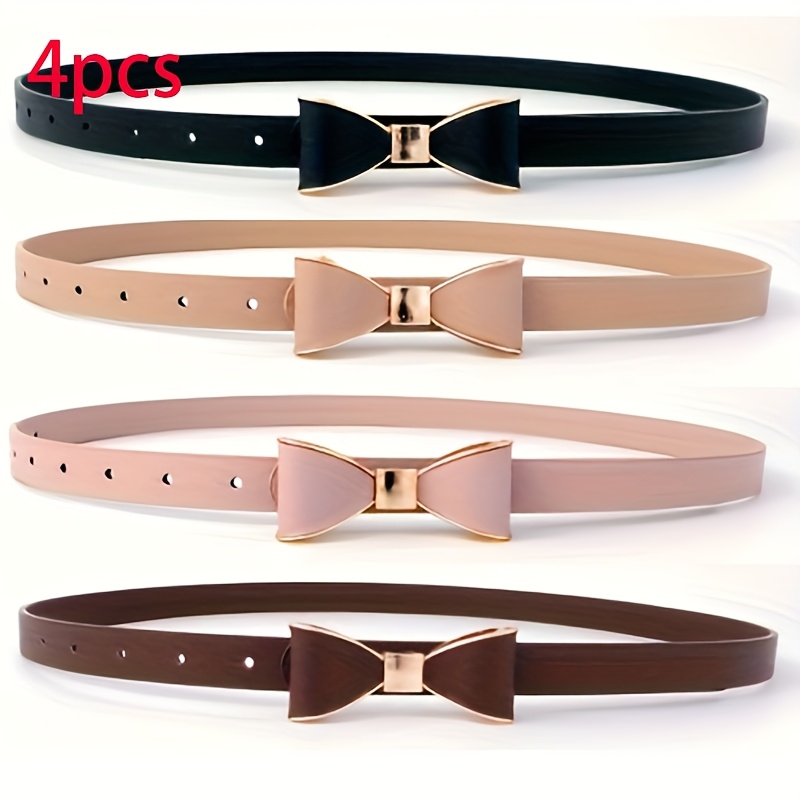 Lot de 4 ceintures en simili cuir pour femmes – Boucles nœud dorées, ceintures polyvalentes marron et noir pour robes, jupes et tenues stylées, ceinture Y2K à la mode, boucle en alliage, ceinture de robe