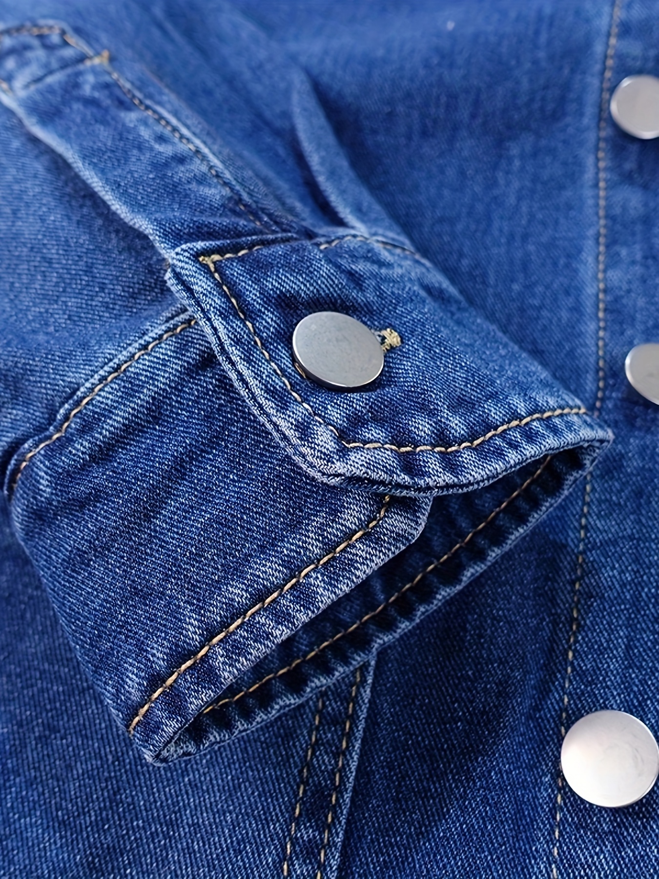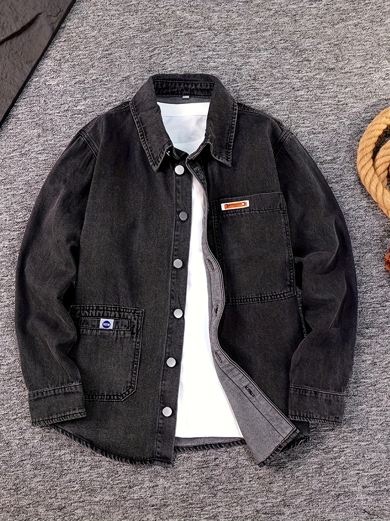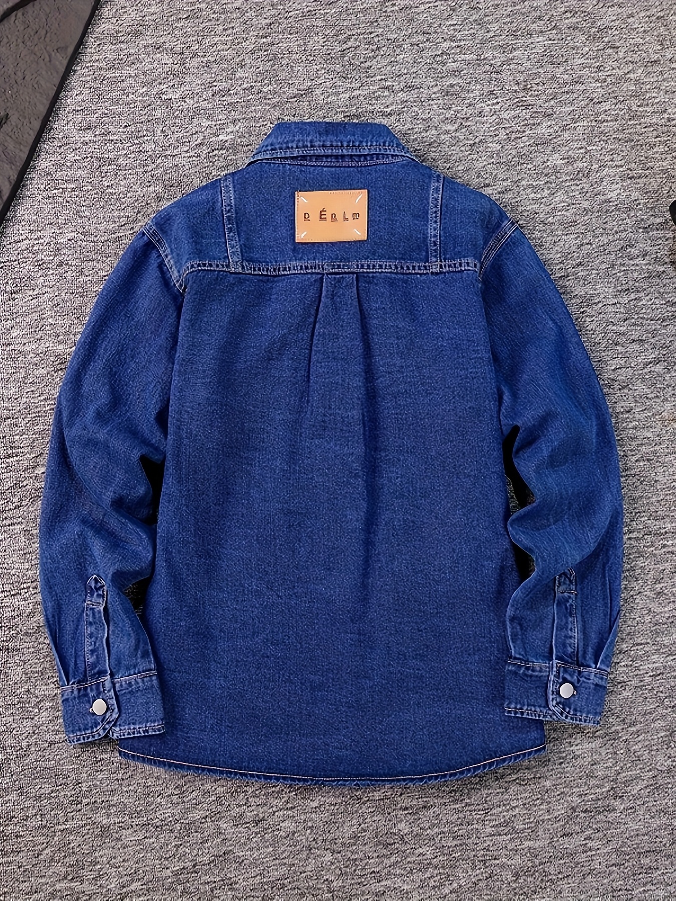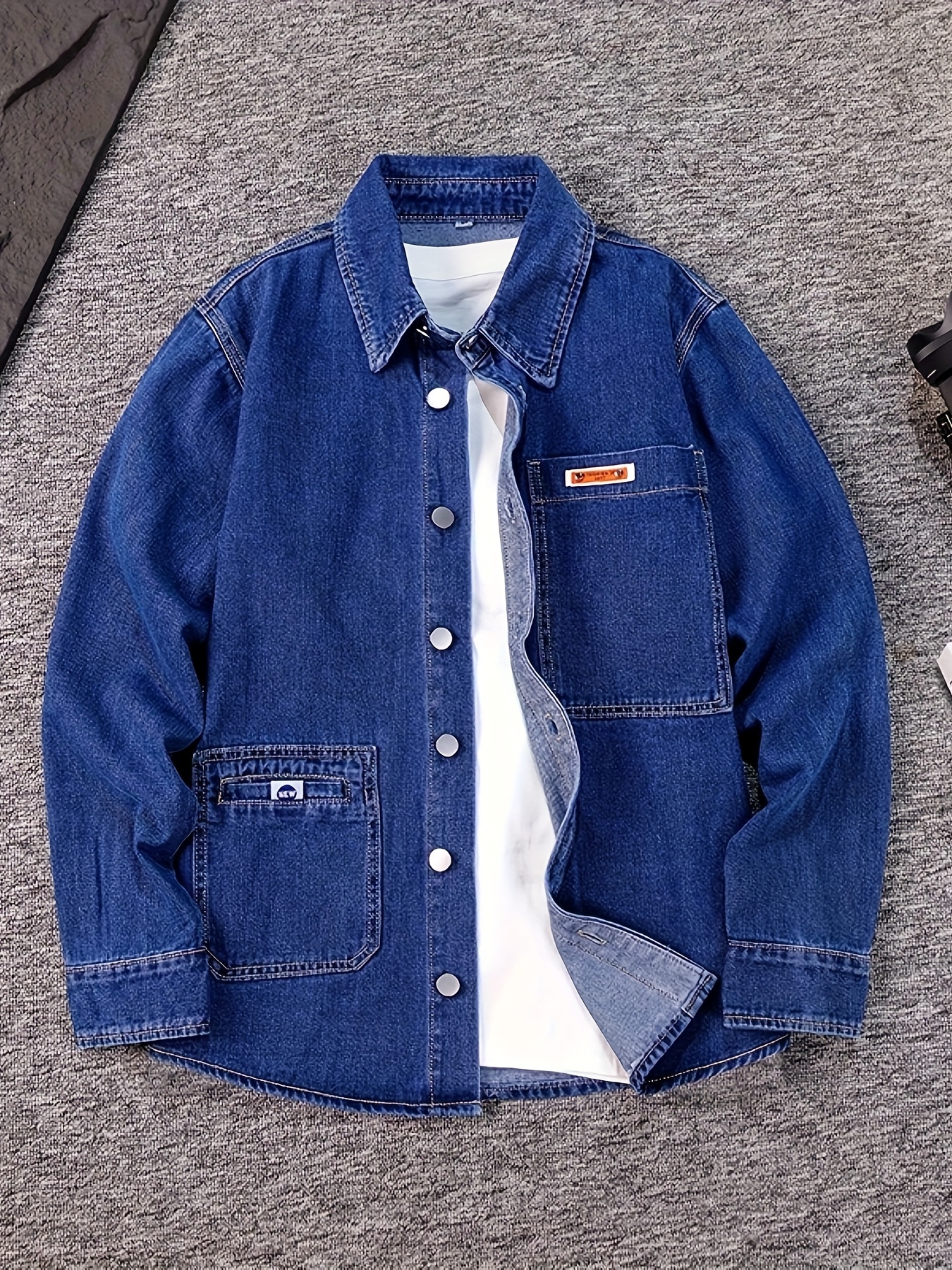Men's Plus Size Loose Fit Non-Stretch Denim Shirt - Asymmetrical Chest Pockets, Classic Collar Long Sleeve Casual & Evening Shirt for Spring/Fall, Machine Washable, Durable Fabric, Fall Outfit, Stylish Menswear, Sturdy