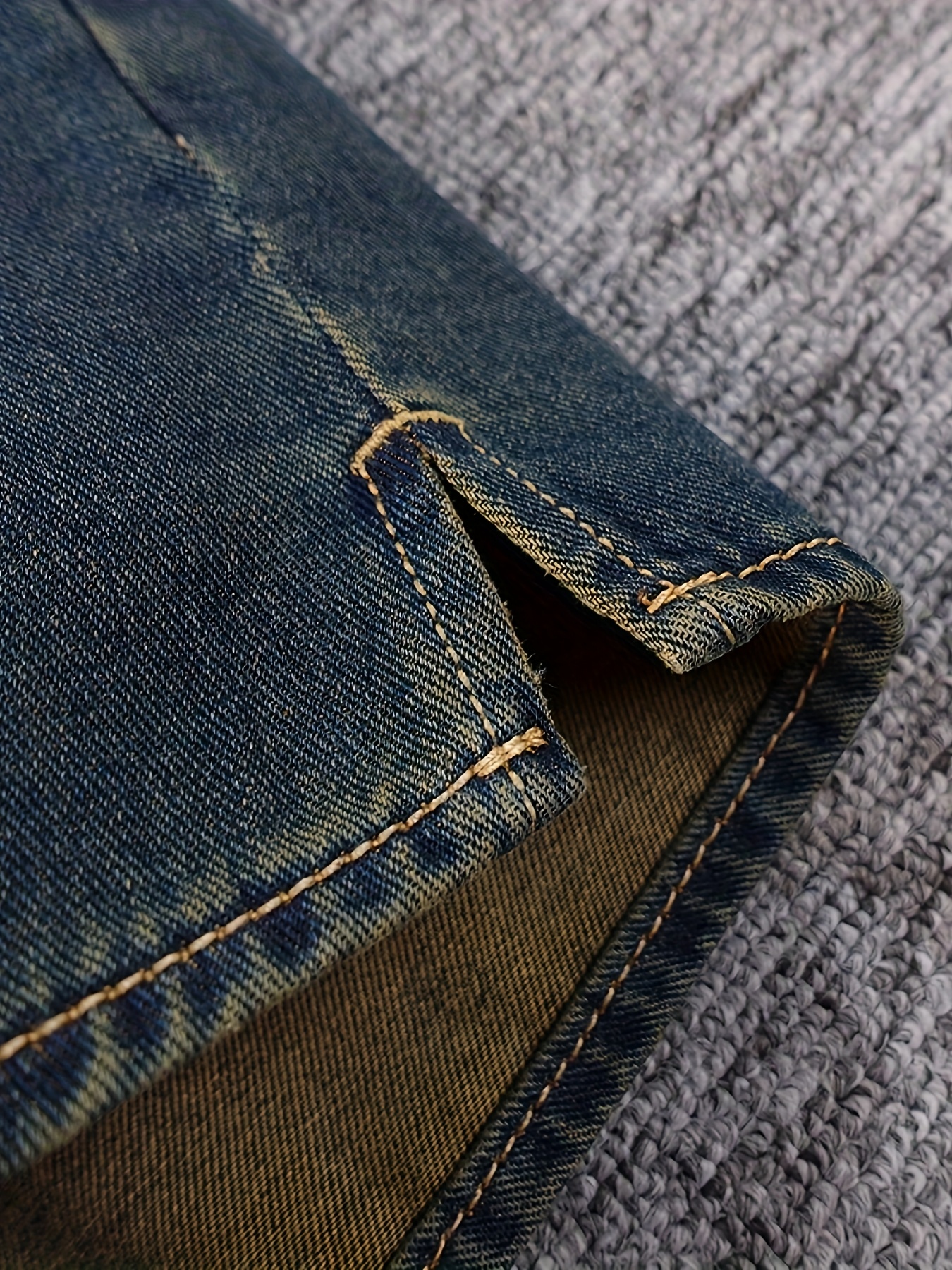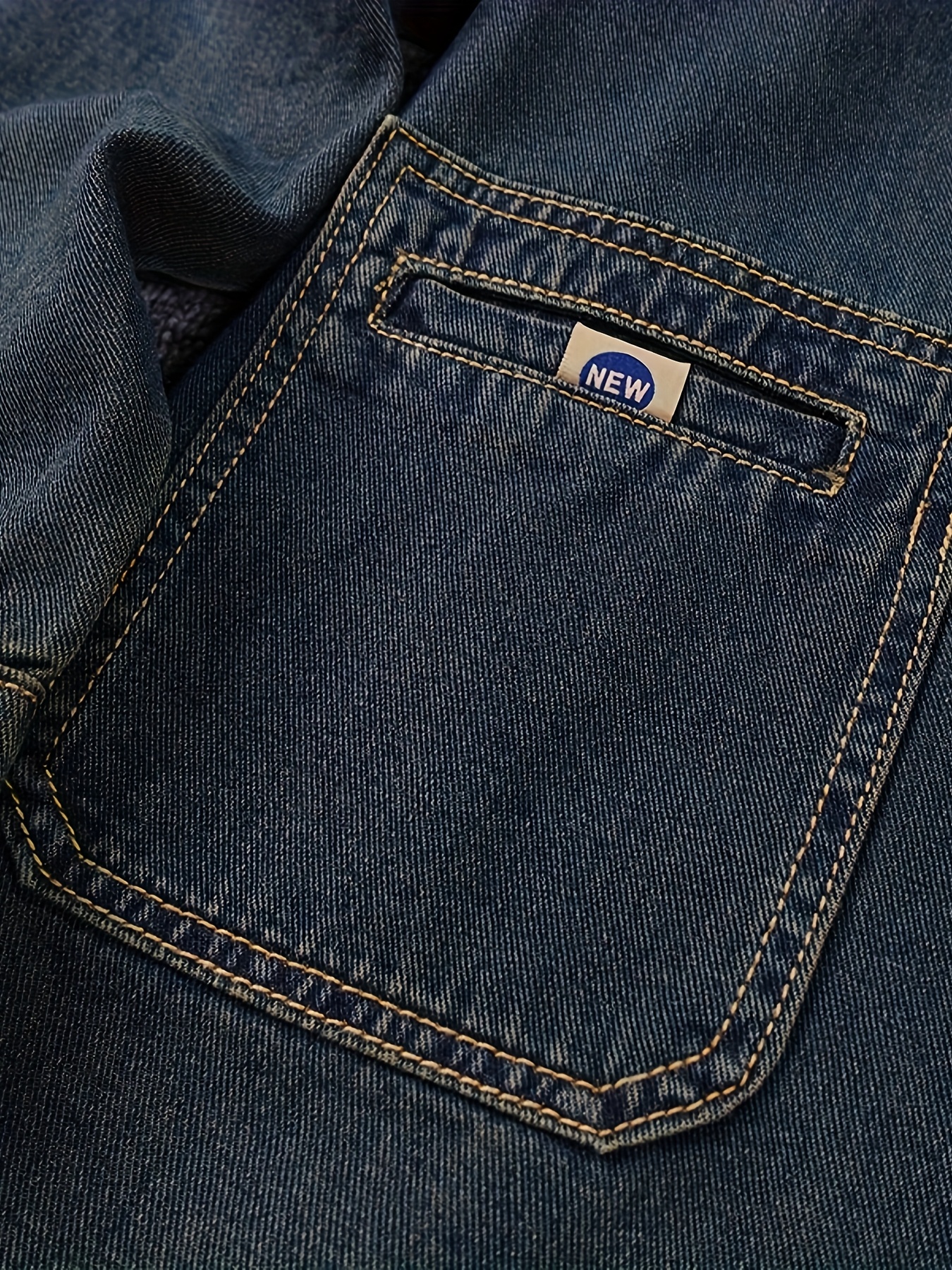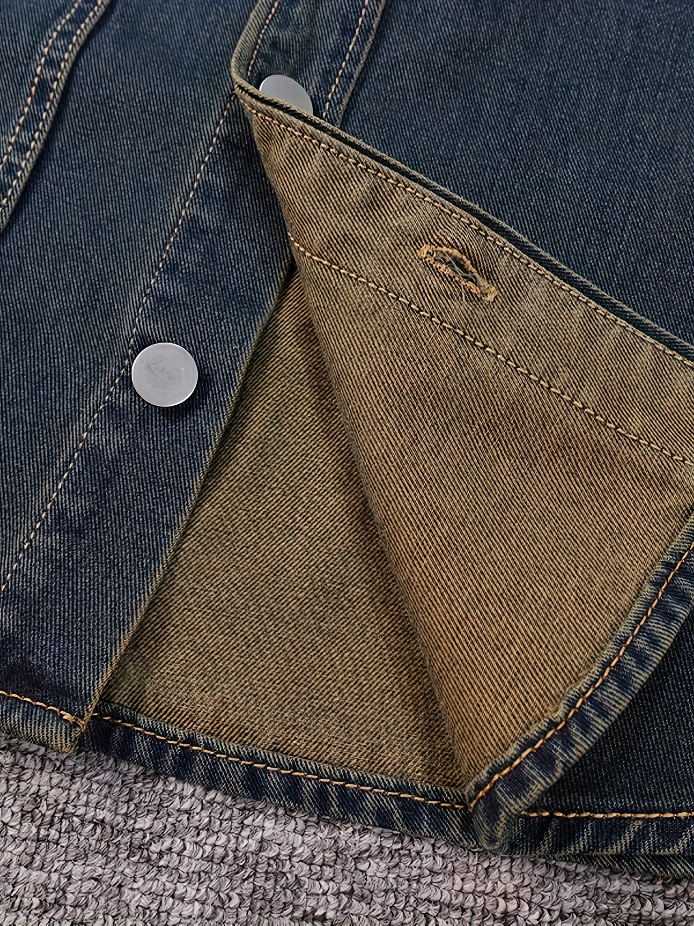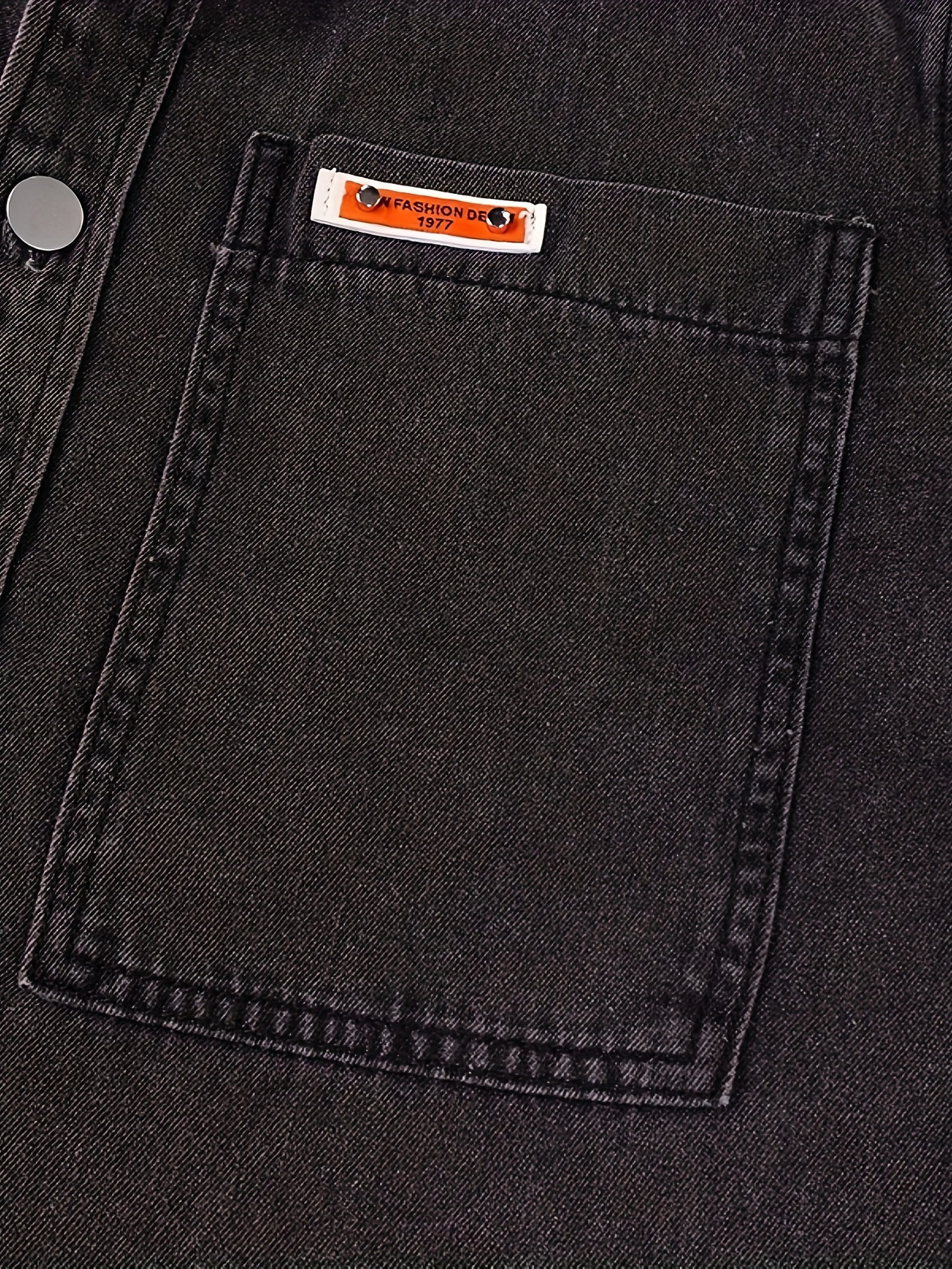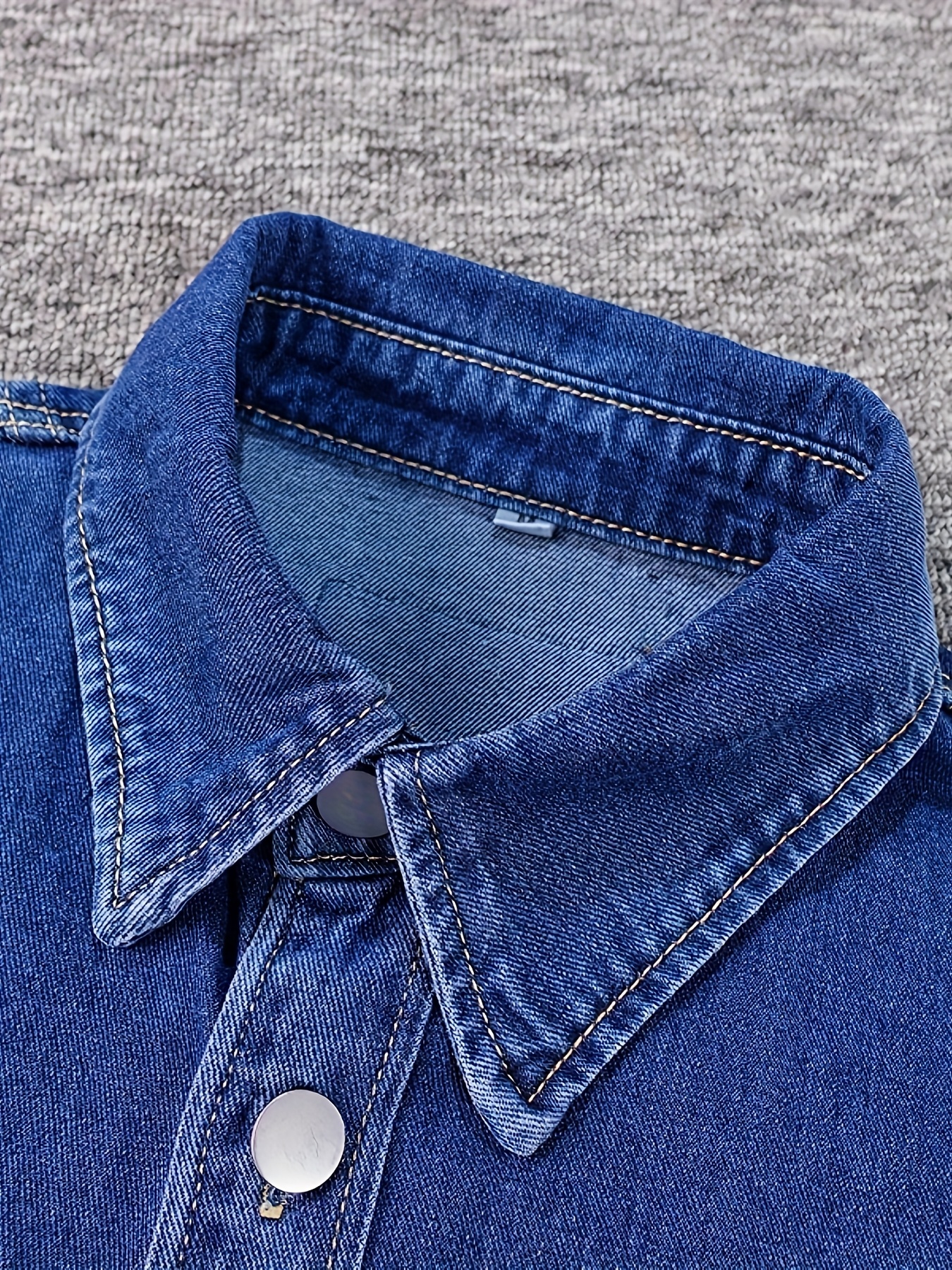 Men's Plus Size Loose Fit Non-Stretch Denim Shirt - Asymmetrical Chest Pockets, Classic Collar Long Sleeve Casual & Evening Shirt for Spring/Fall, Machine Washable, Durable Fabric, Fall Outfit, Stylish Menswear, Sturdy