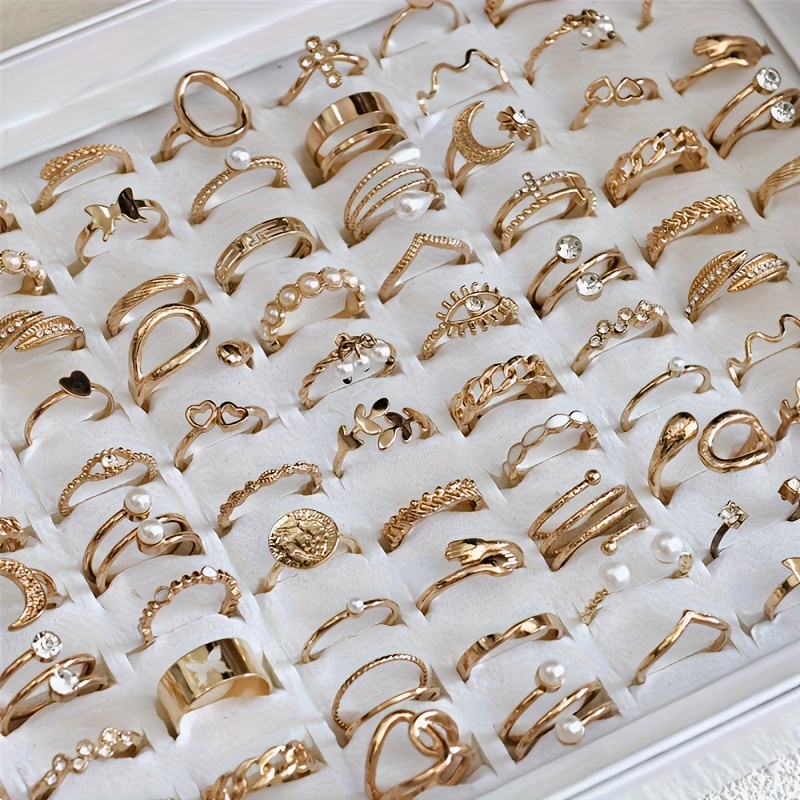 A Set of 45 Stylish And Elegant Rings for Women, Featuring a Vintage Bohemian Design with Faux Gemstones And an Open Design, Perfect for Daily Wear, Parties, Vacations, And As Holiday Gifts (Without a Box). This Mixed-Style S