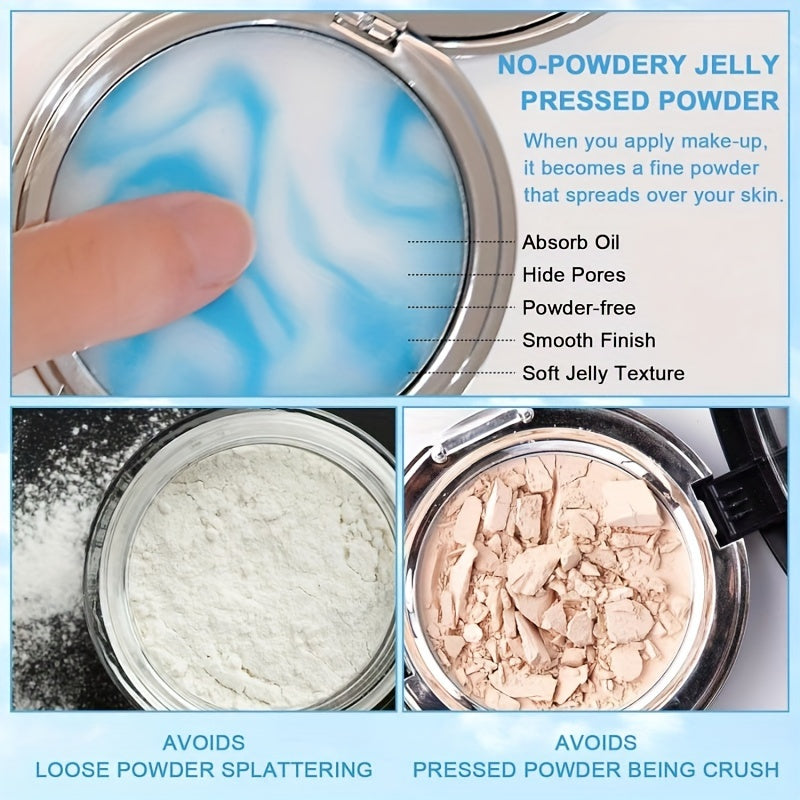 Poudre transparente – Contrôle de l’huile, texture jelly douce et matte, poudre visage longue tenue et raffermissante, avec mini houppette pour un maquillage léger et parfait, waterproof, sans huile, adaptée à tous types de peau