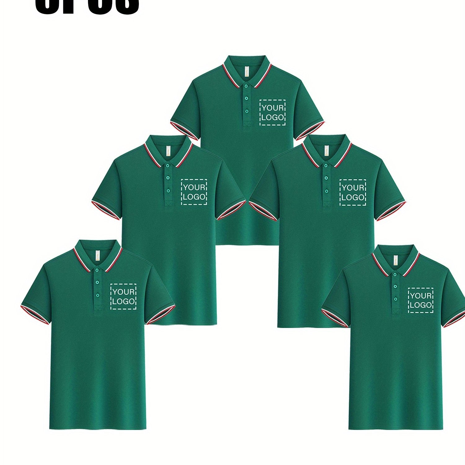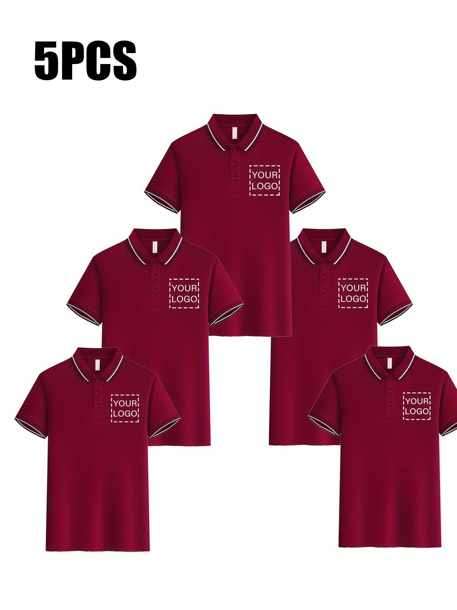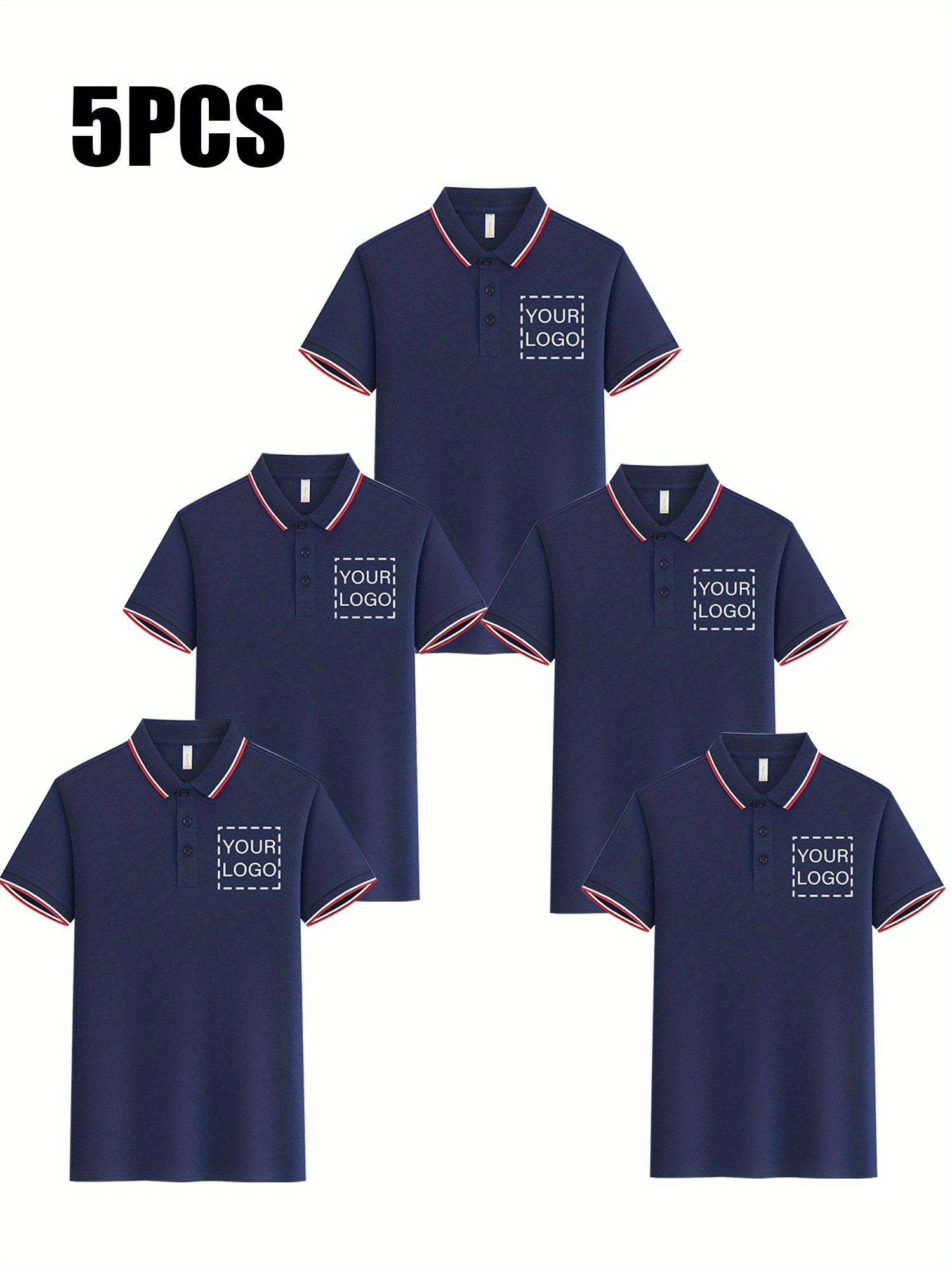 Custom 5pcs, Personalized Logo Print Polo Shirt with a Light Business Style, Made of 100% Polyester, Summer Men'S Striped Short-Sleeve Shirt, Digital Heat Transfer Printing, Casual Outing Fashionable Lapel T-Shirt, Comfortabl