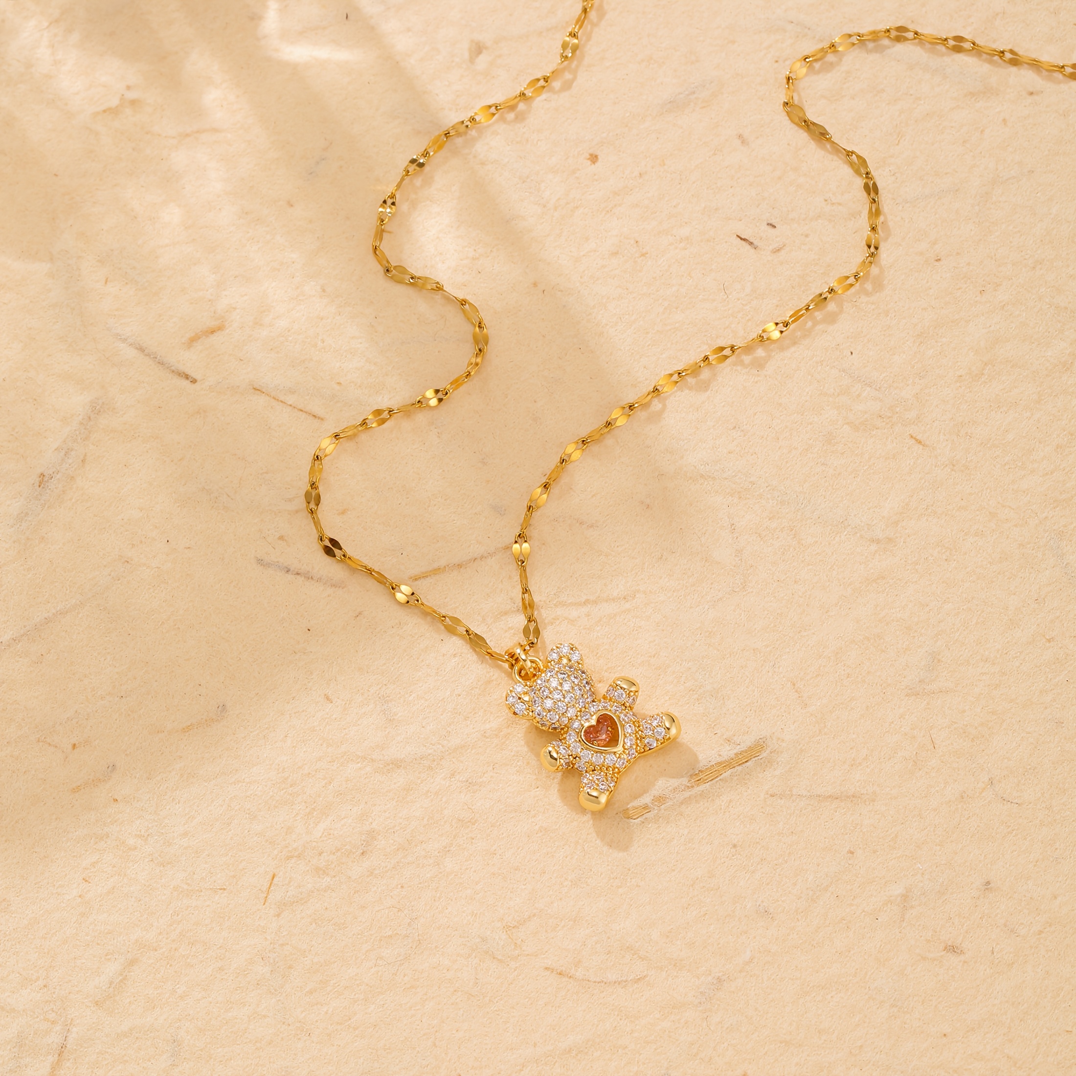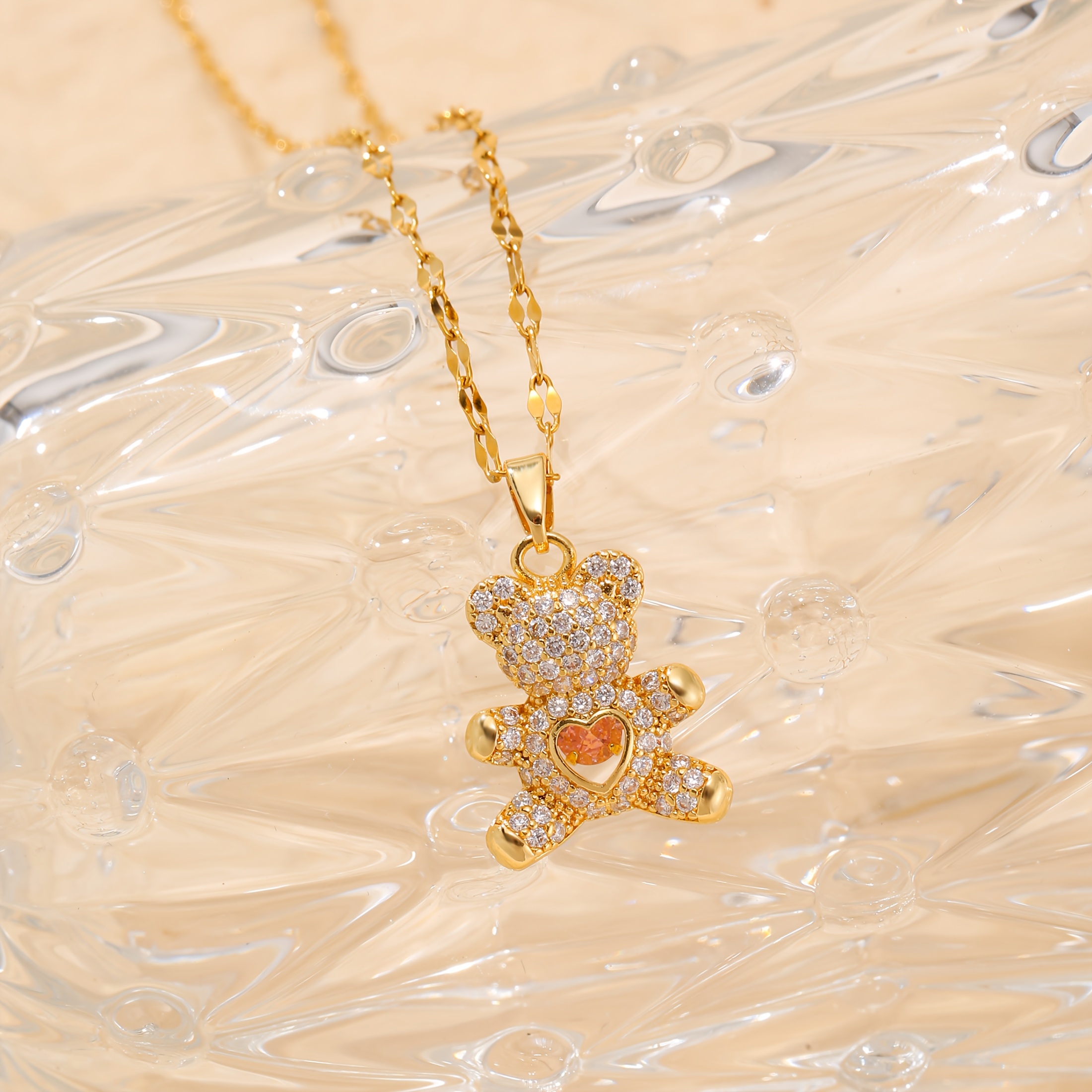 Collier pendentif ours pour femme, style bling-bling, incrustation en zirconia synthétique, acier inoxydable hypoallergénique, idéal pour un usage quotidien ou comme cadeau de Noël, bijou ludique et tendance
