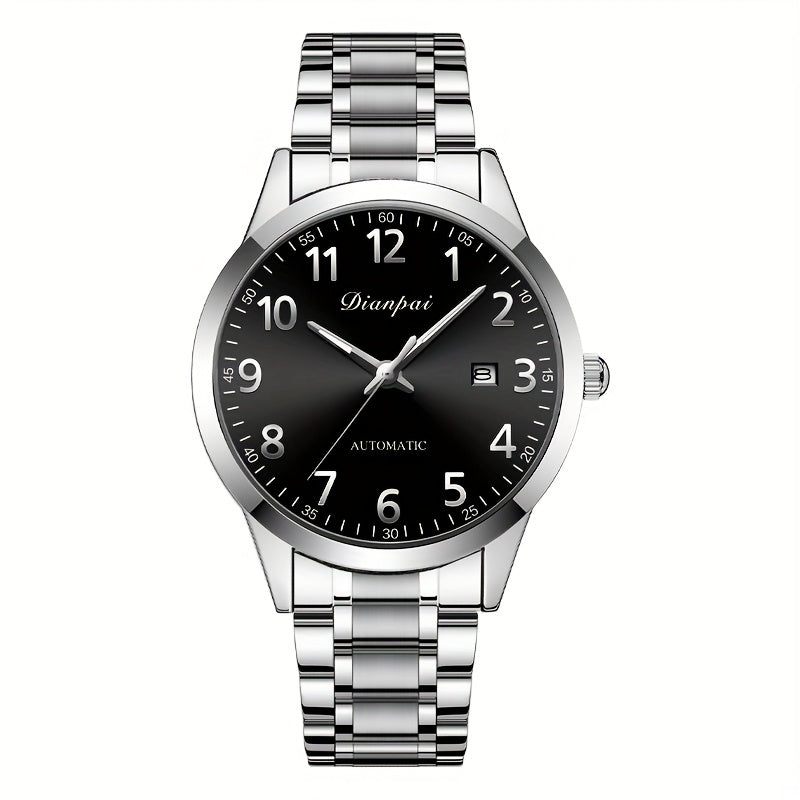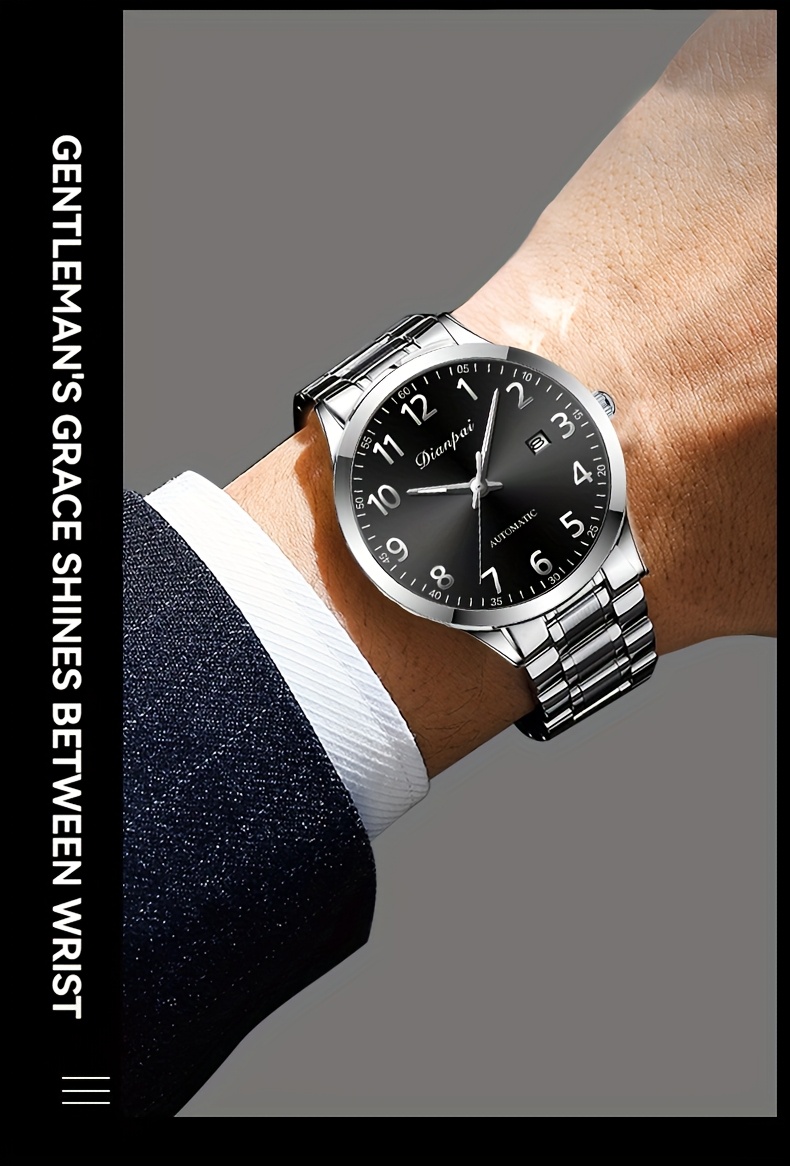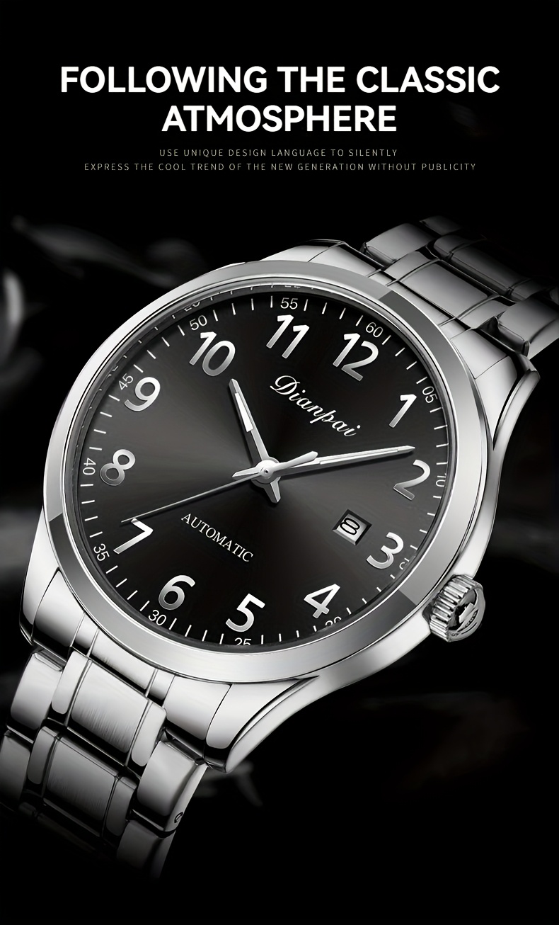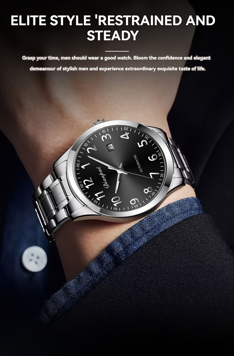 Montre Mécanique Automatique Homme – Avec Calendrier et Aiguilles Luminescentes, Acier Inoxydable, Montre de Luxe pour Tenue Business & Décontractée, Lunette Stylée, Sans Batterie