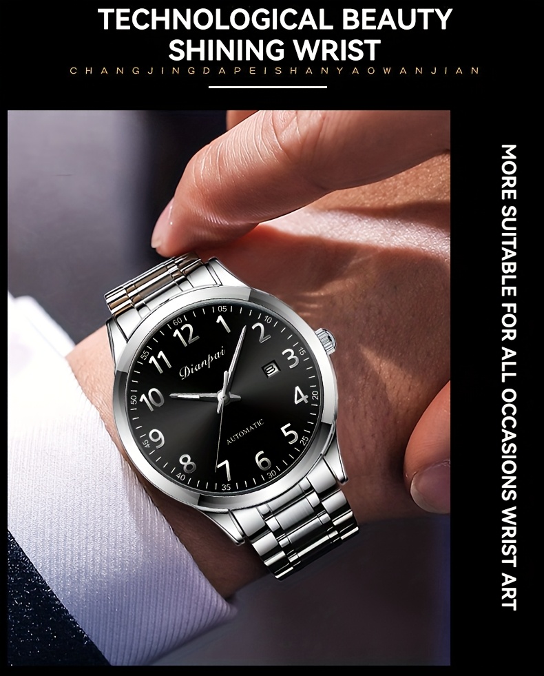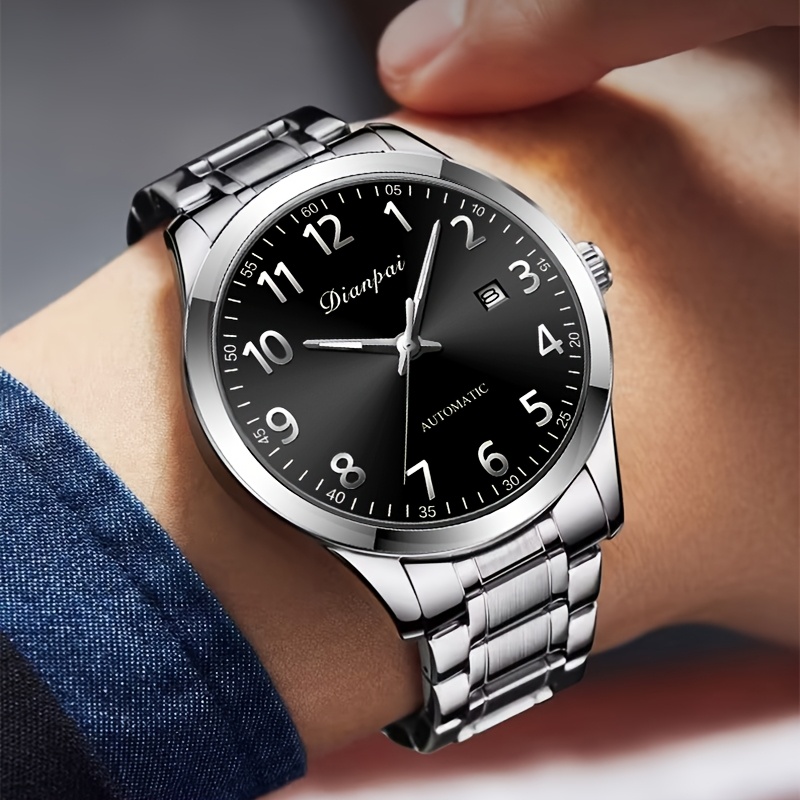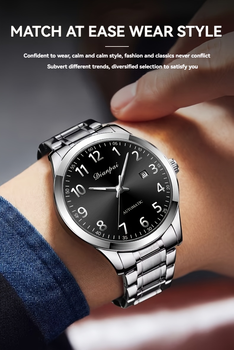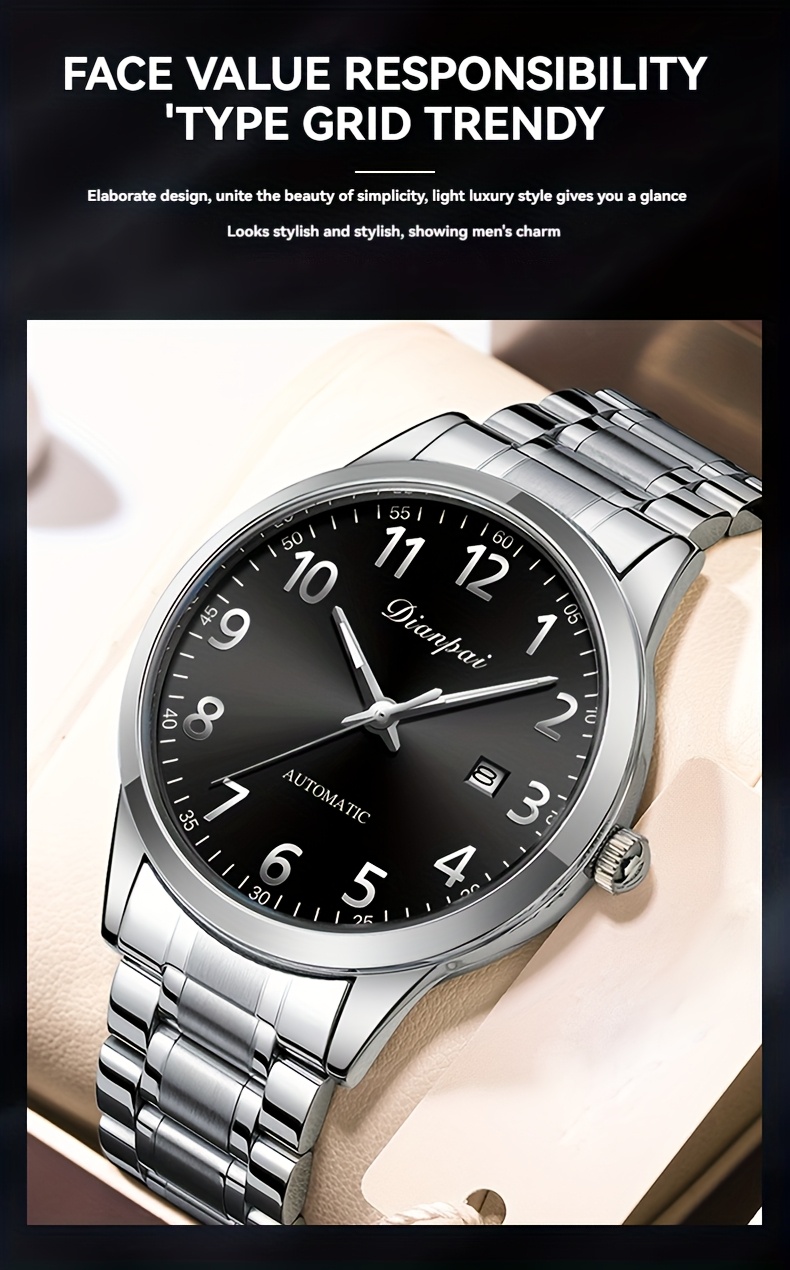 Montre Mécanique Automatique Homme – Avec Calendrier et Aiguilles Luminescentes, Acier Inoxydable, Montre de Luxe pour Tenue Business & Décontractée, Lunette Stylée, Sans Batterie