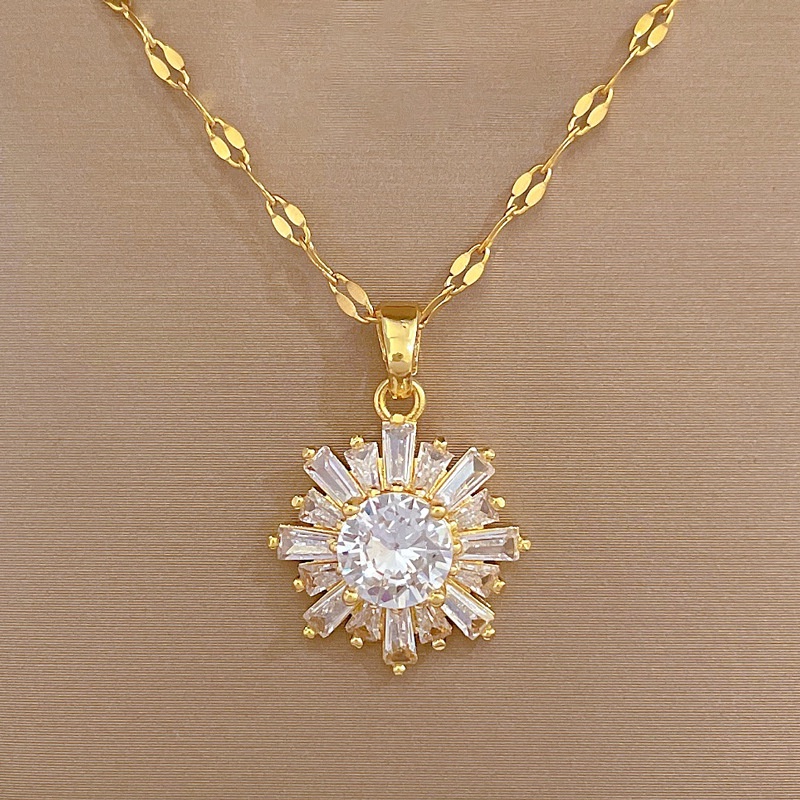 Collier élégant en acier plaqué or 18 K, pendentif flocon de neige géométrique serti de cubic zirconia, chaîne luxueuse, parfait pour mariages, soirées et usage quotidien, accessoire raffiné et durable