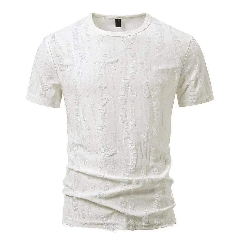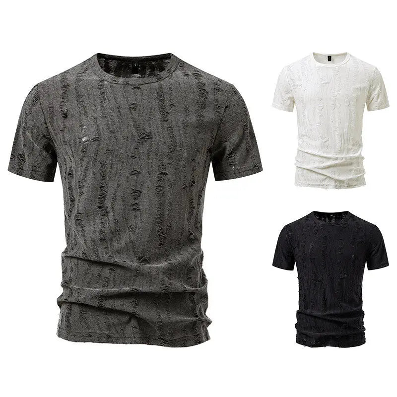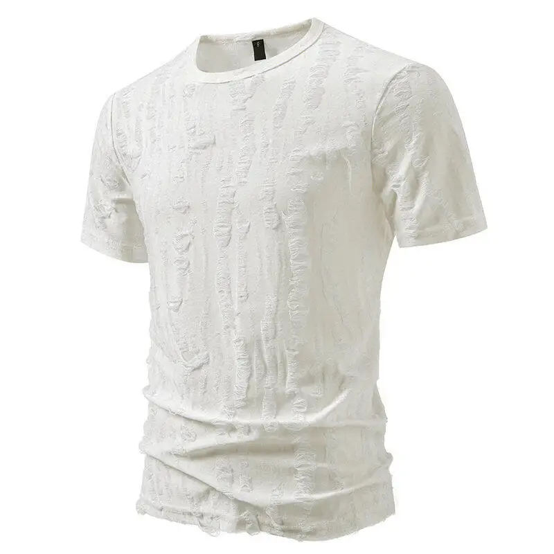 Été 2025 hommes jeunesse T-irt rond Ne ort Sve déchiré moderne Sle respirant Polyester fibre motif géométrique imprimé