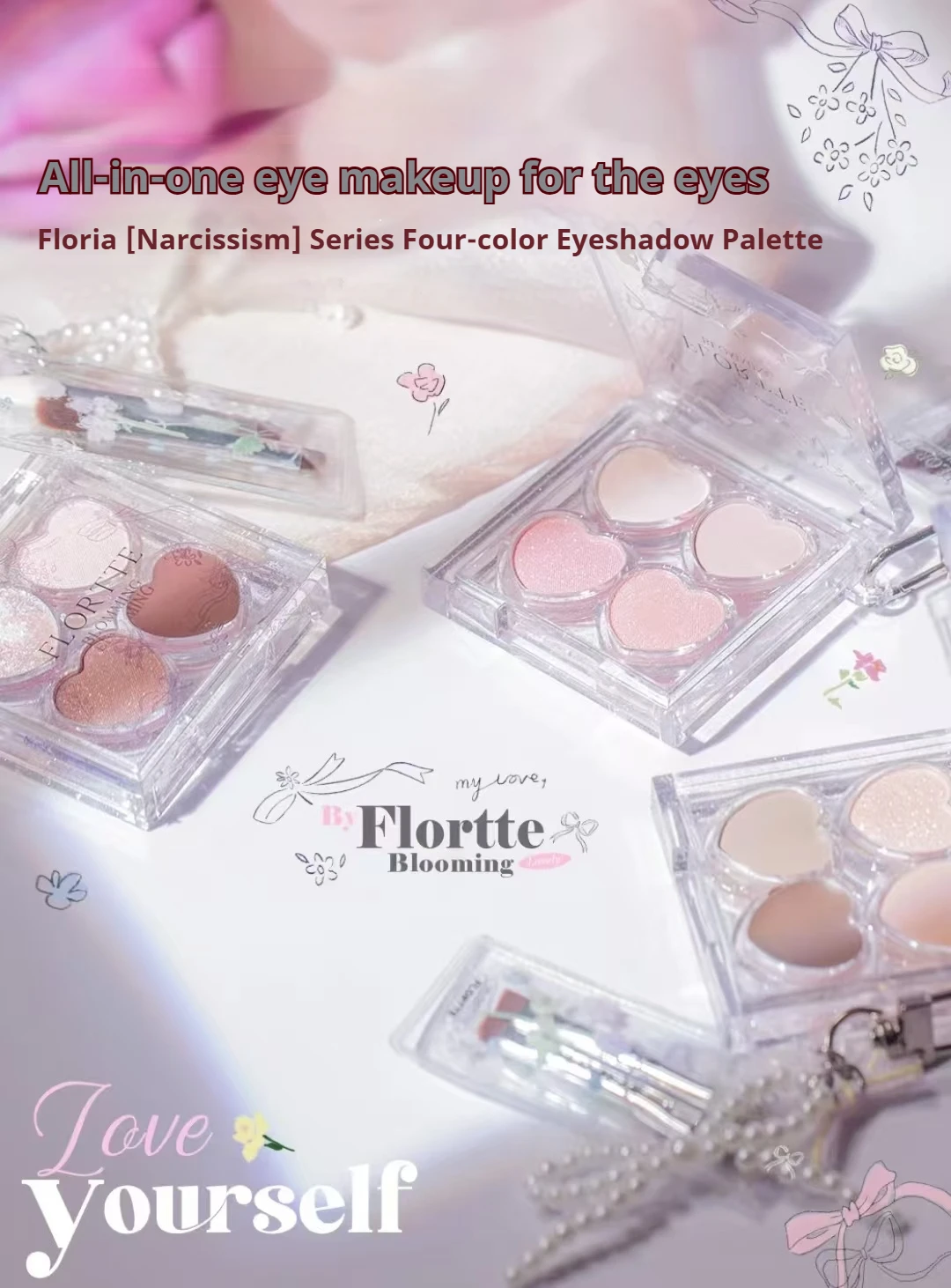 FLORTTE Narcissism Series Eyeshadow 4-color Matte Fine Shimmer Multi-purpose Portable Palette Highlight Blusher Brighten
