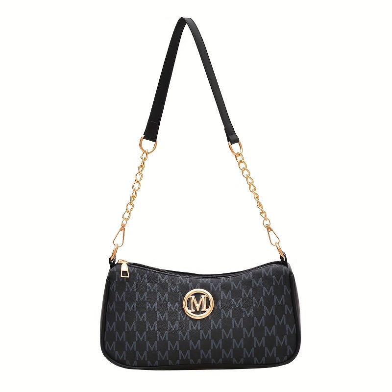 Sac vintage français pour adolescentes sac bandoulière carré petit imprimé lettres avec chaîne fermeture éclair logo M bandoulière ajustable parfait pour usage quotidien
