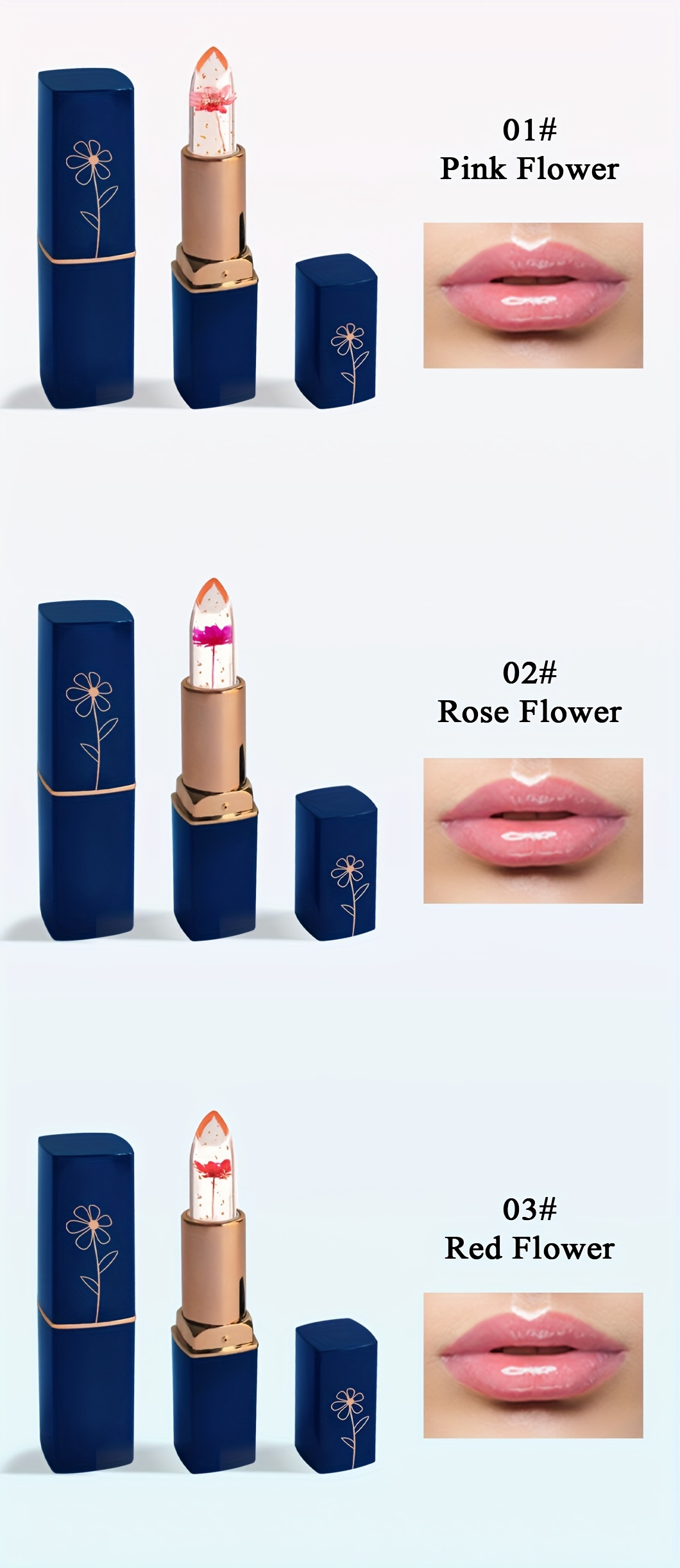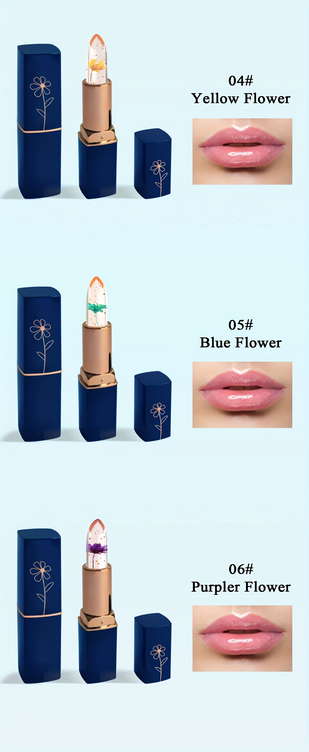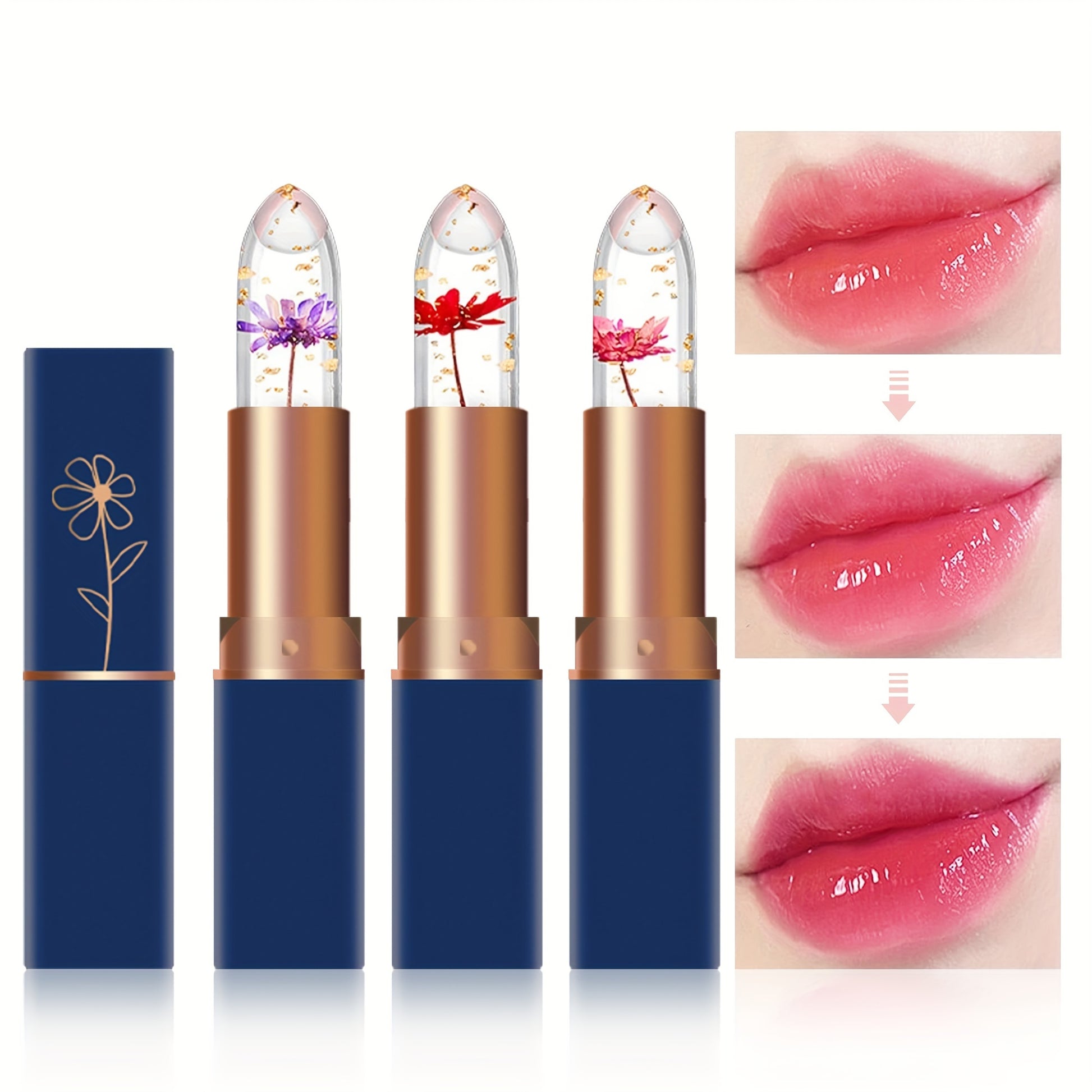 Lot de six baumes à lèvres, six en un, à la couleur changeante, conditionnés dans des sachets OPP. Ce baume à lèvres transparent devient rose