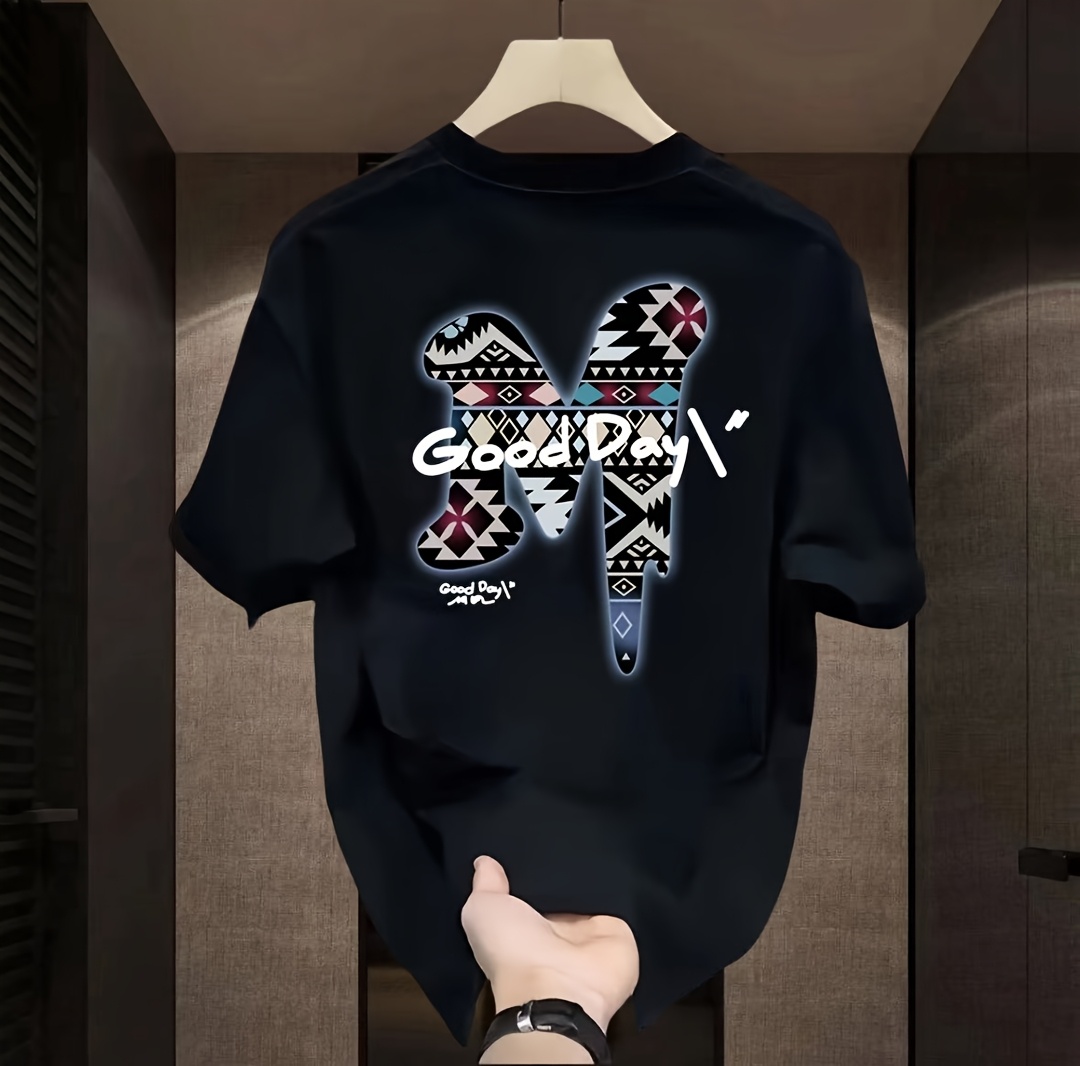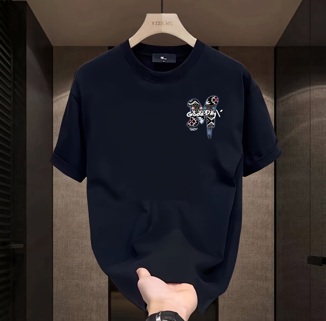 Heavy cotton T-shirt for Men's versatile large size loose summer trendy brand printed handsome youth top