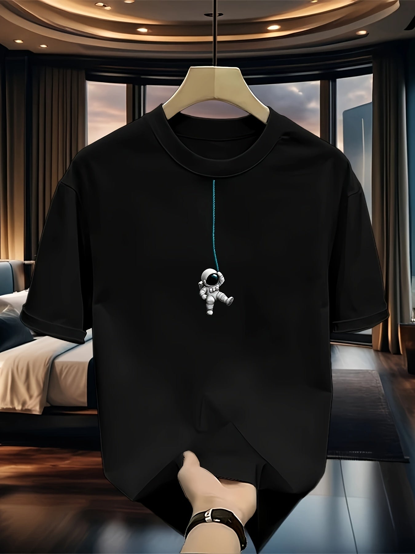Heavy pure cotton trendy brand printed short-sleeved T-shirt Men's summer new casual large-size loose versatile top