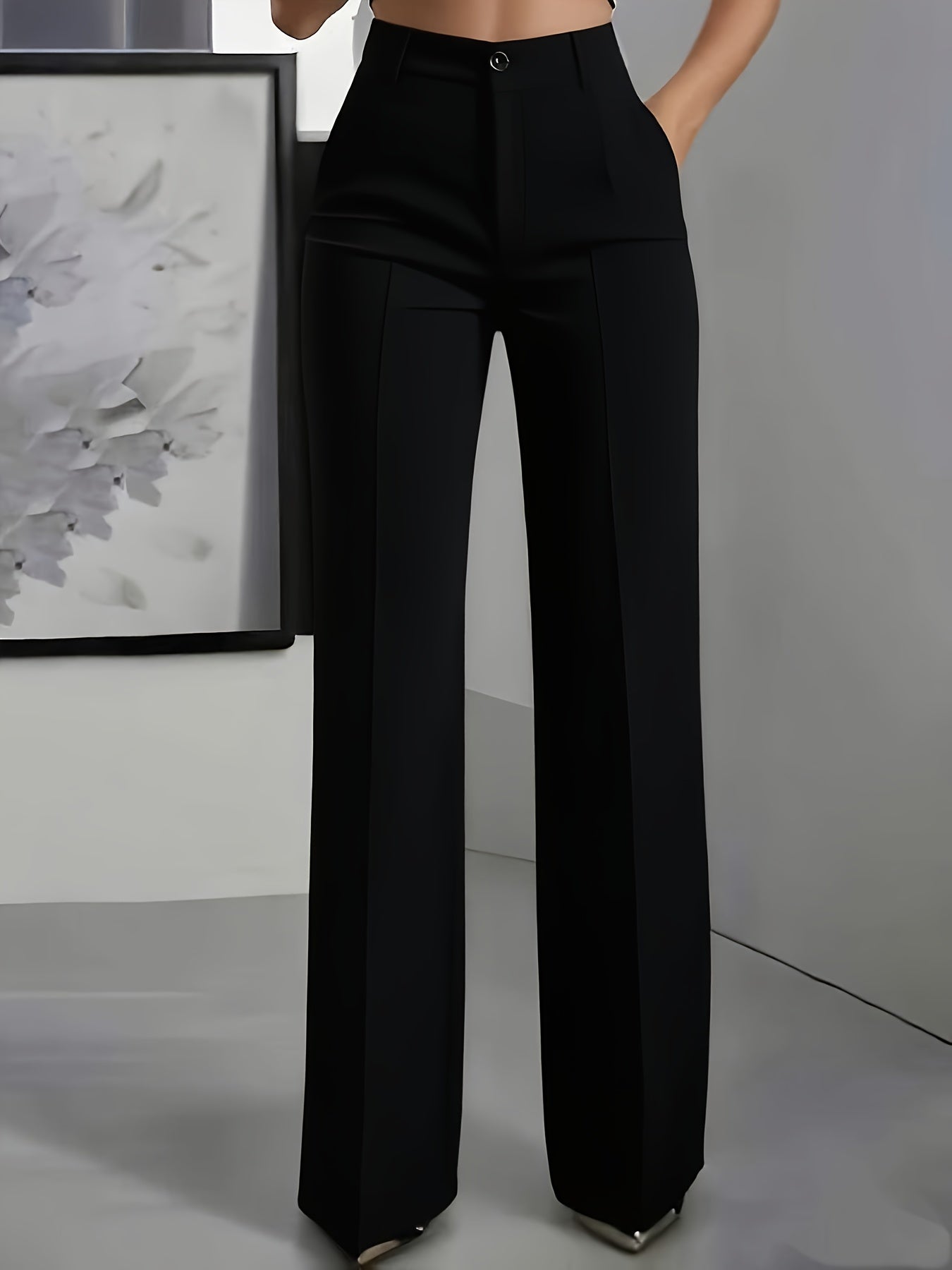 Pantalon Femme Taille Haute – Jambe Large, Sans Ceinture, Poches, Longueur Structurée, Tous Saisons, Bureau et Décontracté