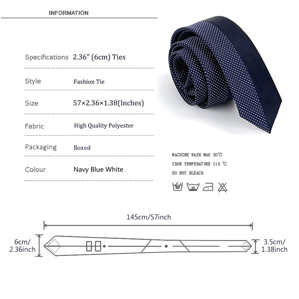 Cravate Homme Slim 5,99 cm – Bleu Marine à Pois Blancs, Élégante pour Bureau et Mariage