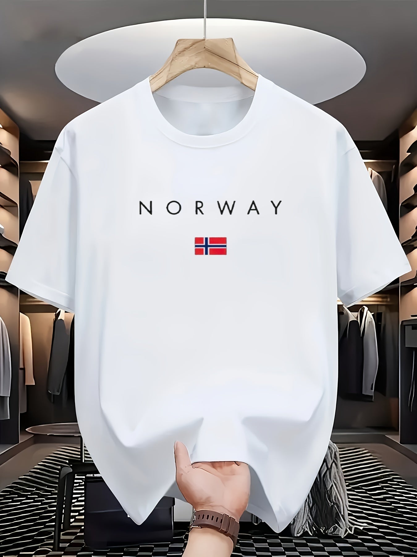 Men'S 100% Casual T-Shirt with Norway Graphic Print, Casual& Sporty, Crew Neck, Summer Fashion Round Neck Tee, for Daily& Weekend Casual Wear, Weekend Attire, Daily Outfit, Sporty Design, Minimalist Style, Lightweight Tee, Br