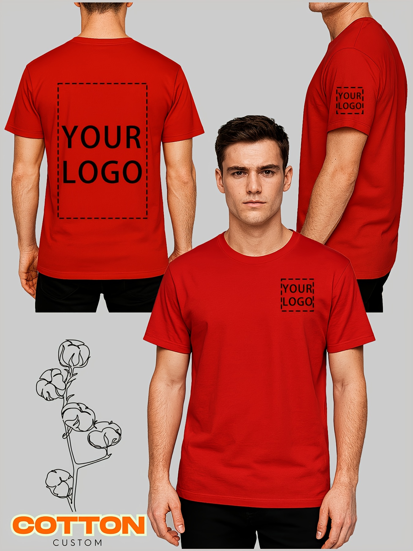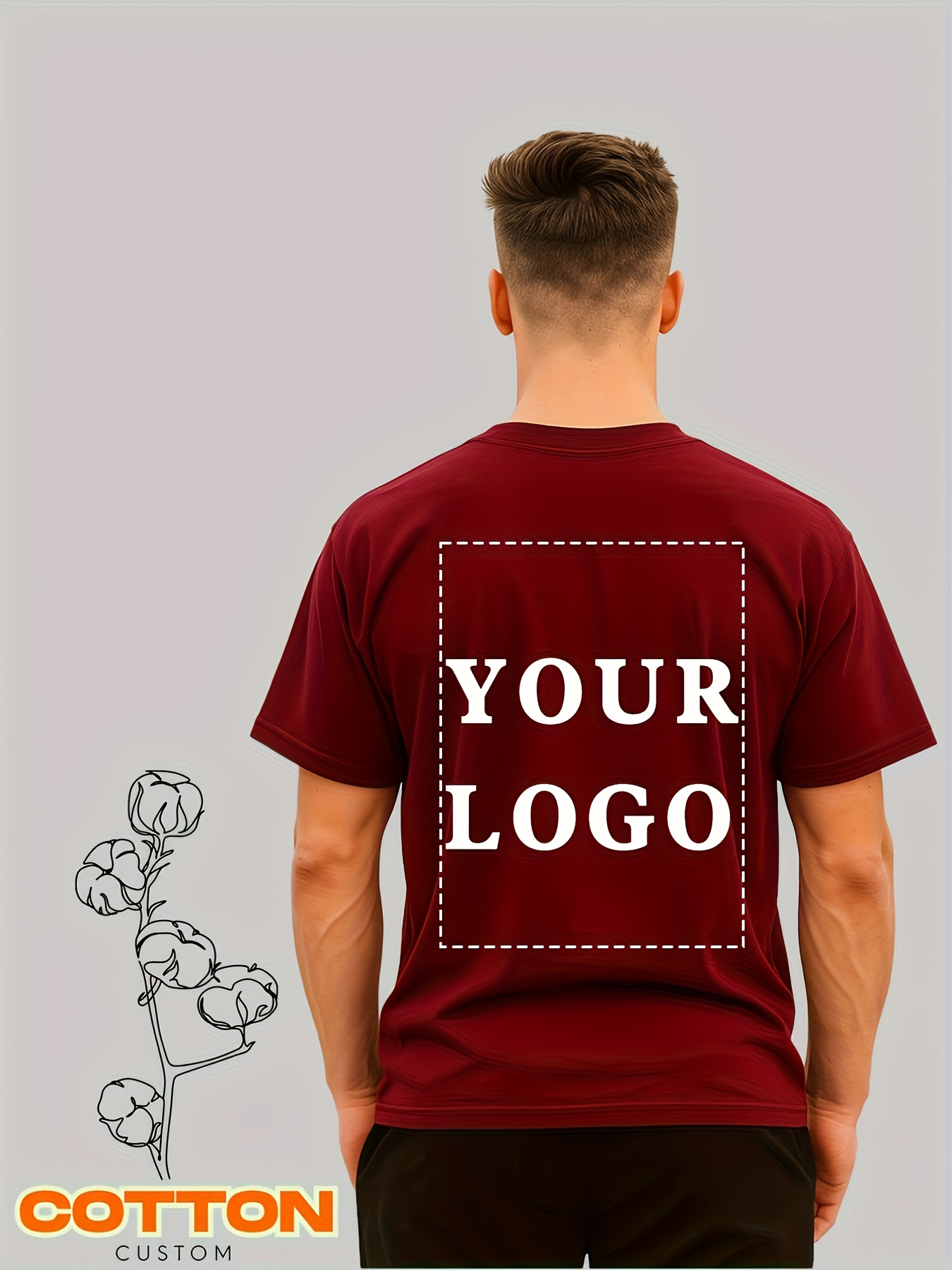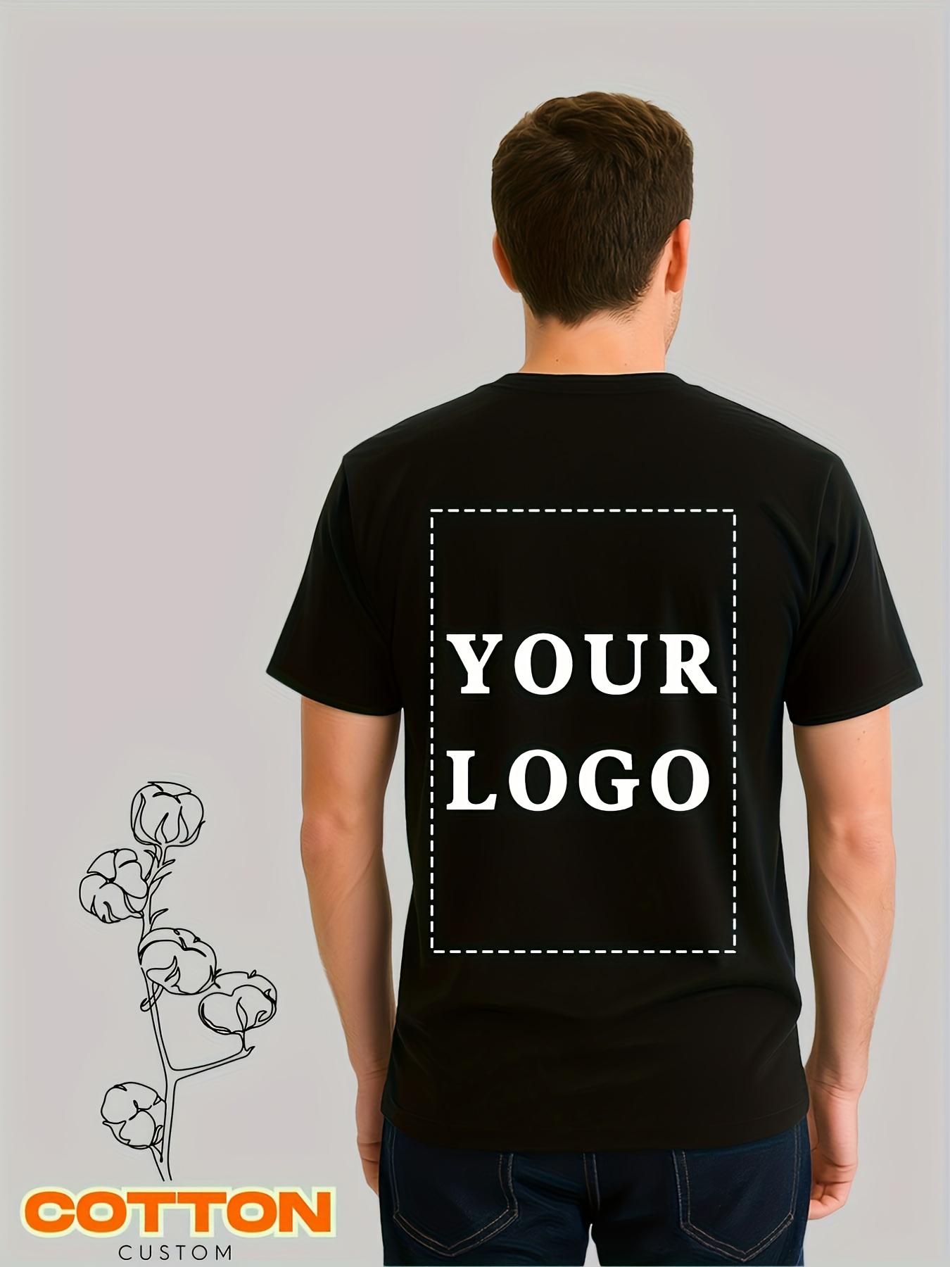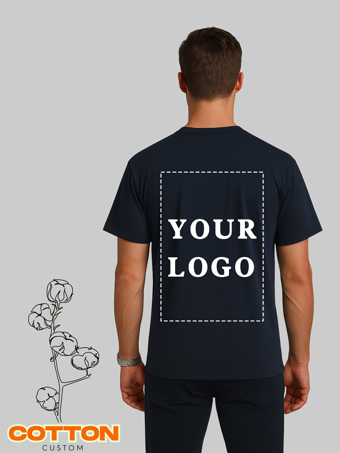Men's 100% Cotton Custom 3-Section T-Shirt - Personalized Chest, Sleeve & Back Printing with Your Logo/Text/Photo - DIY Short Sleeve Round Neck Casual Summer Shirt for Branding, Events & Casual Attire