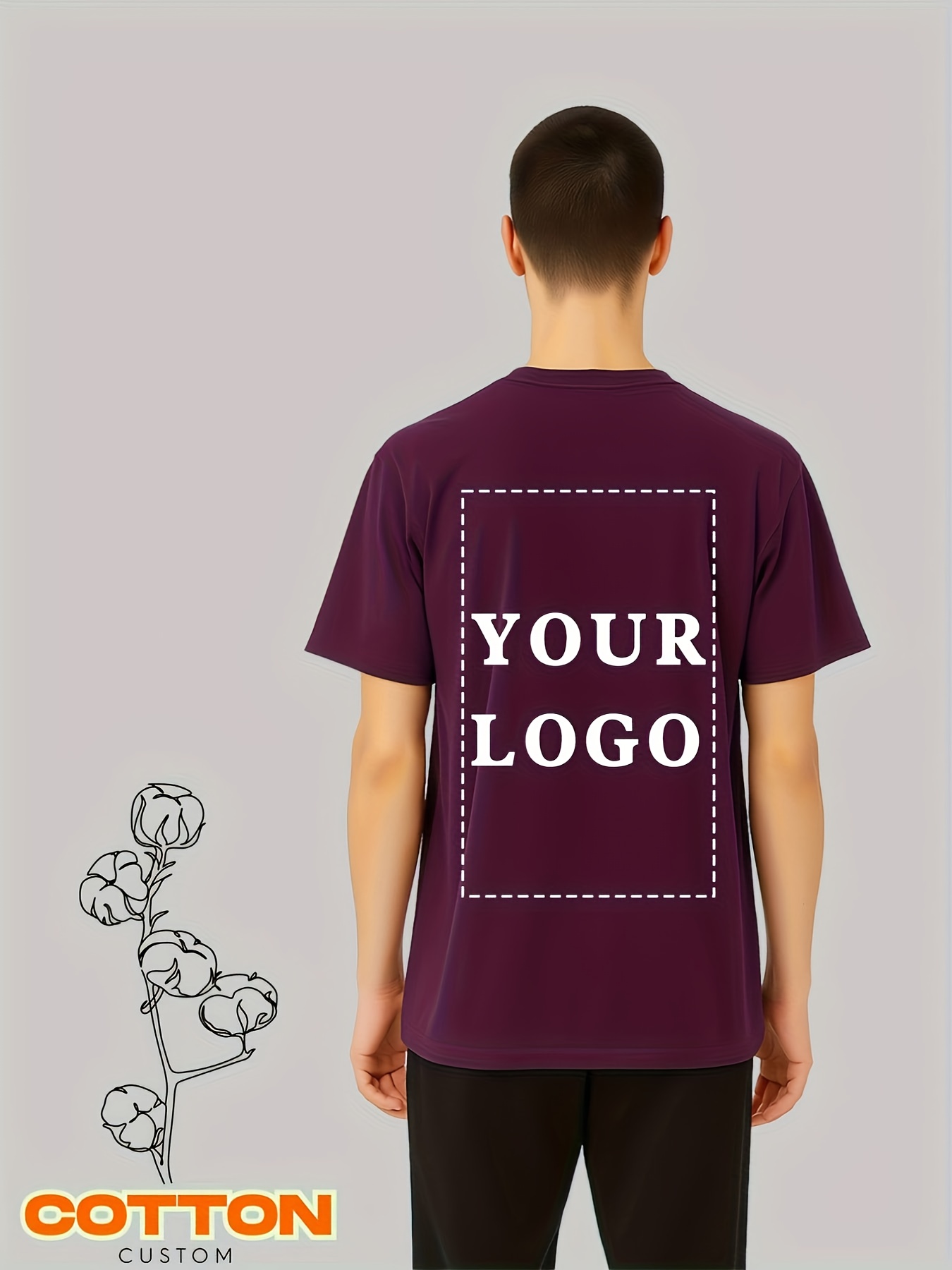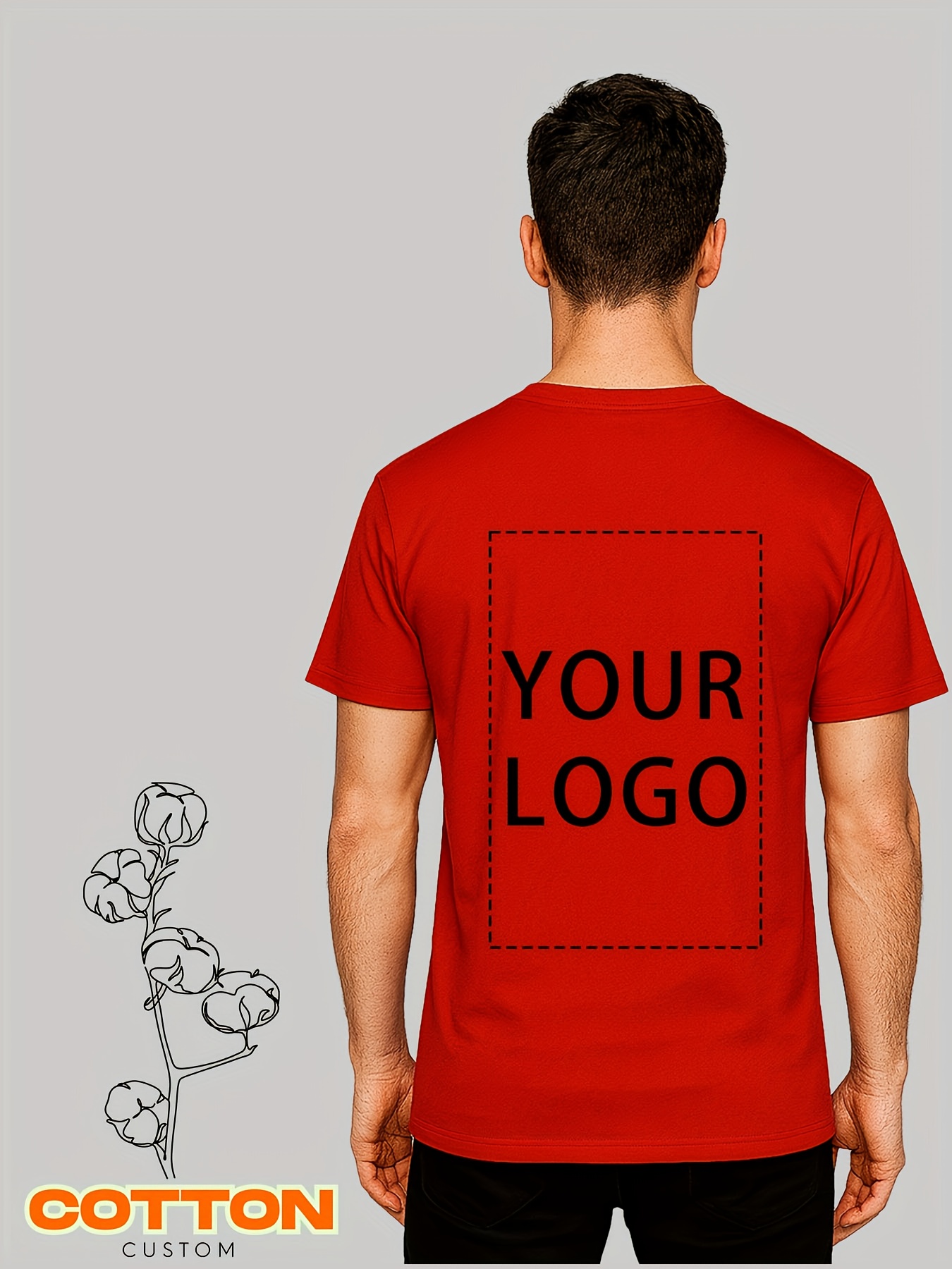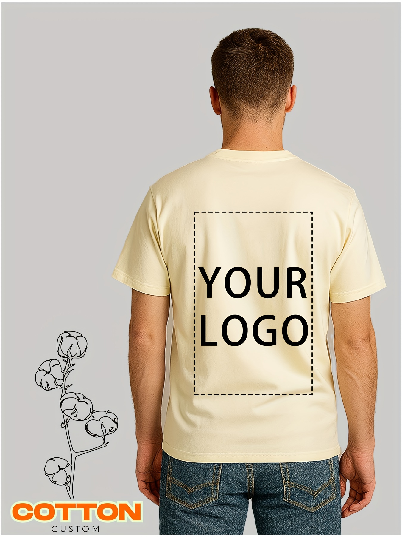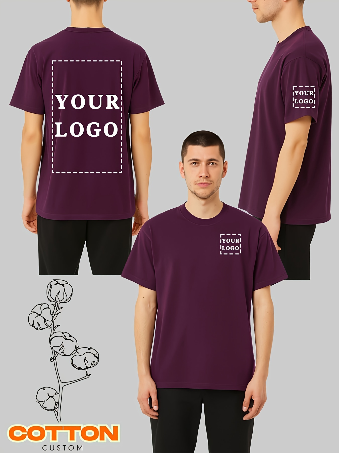 Men's 100% Cotton Custom 3-Section T-Shirt - Personalized Chest, Sleeve & Back Printing with Your Logo/Text/Photo - DIY Short Sleeve Round Neck Casual Summer Shirt for Branding, Events & Casual Attire