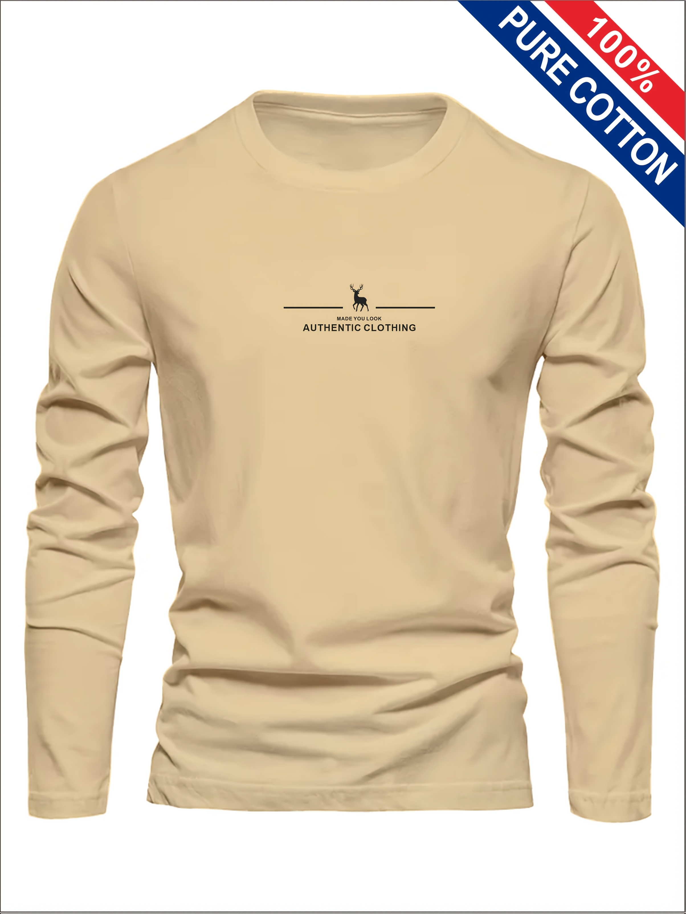 Men's 100% Cotton Long Sleeve T-Shirt - Soft Breathable Casual Round Neck Shirt Suitable for Fall/Winter, Machine Washable Layering Essential for & Social Events - Fabric