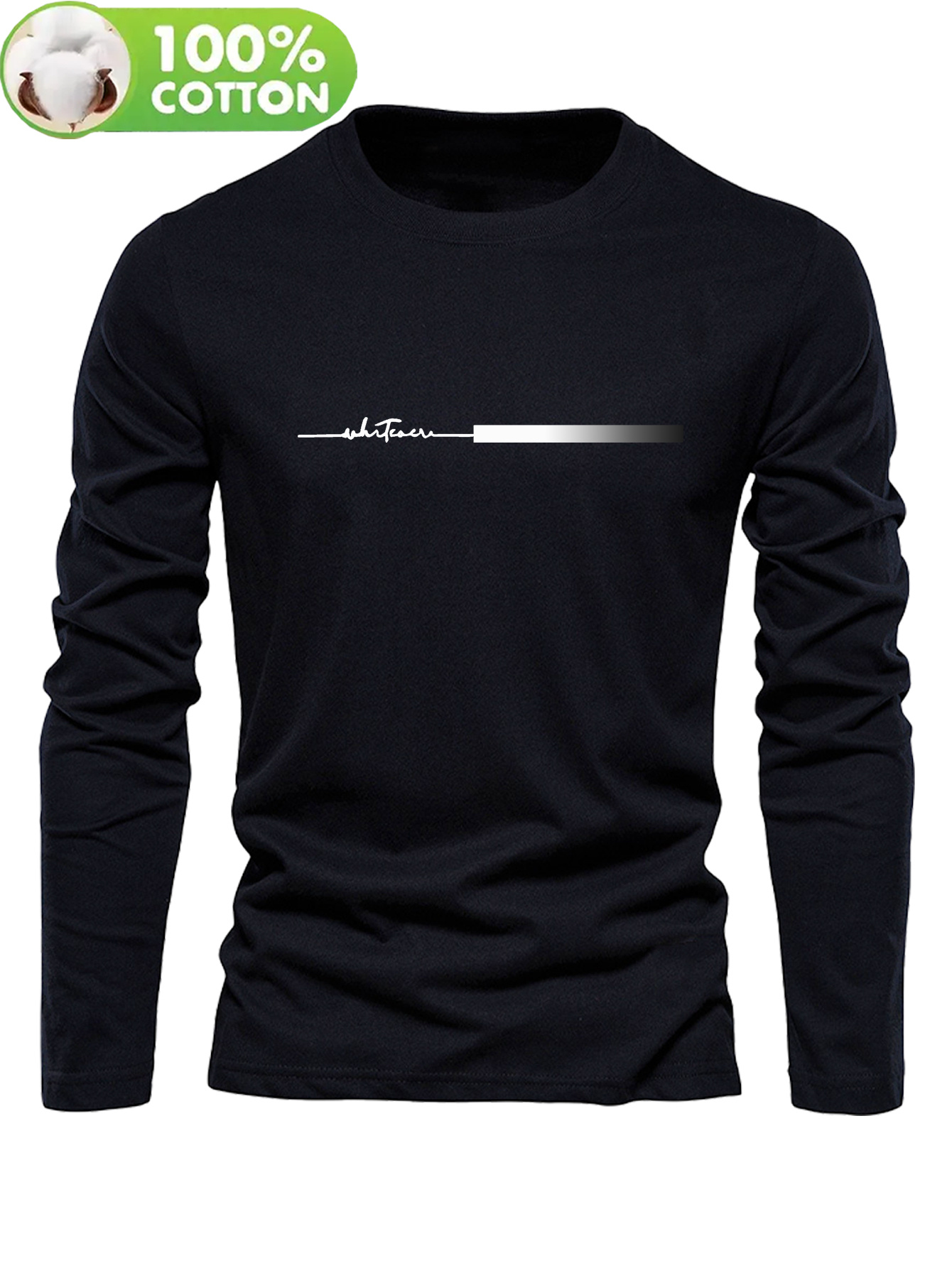 Men's 100% Cotton Long Sleeve T-Shirt with Letter 'H' Logo Patch - Round Neck Casual Top, Regular Fit Spring/Fall Everyday Basic Blouse for men - Versatile Layering Piece for Jeans & Dress Clothes