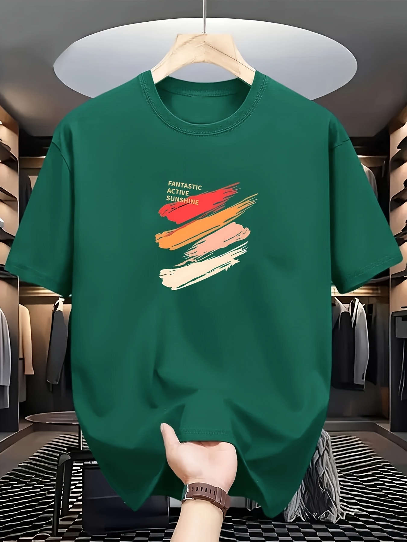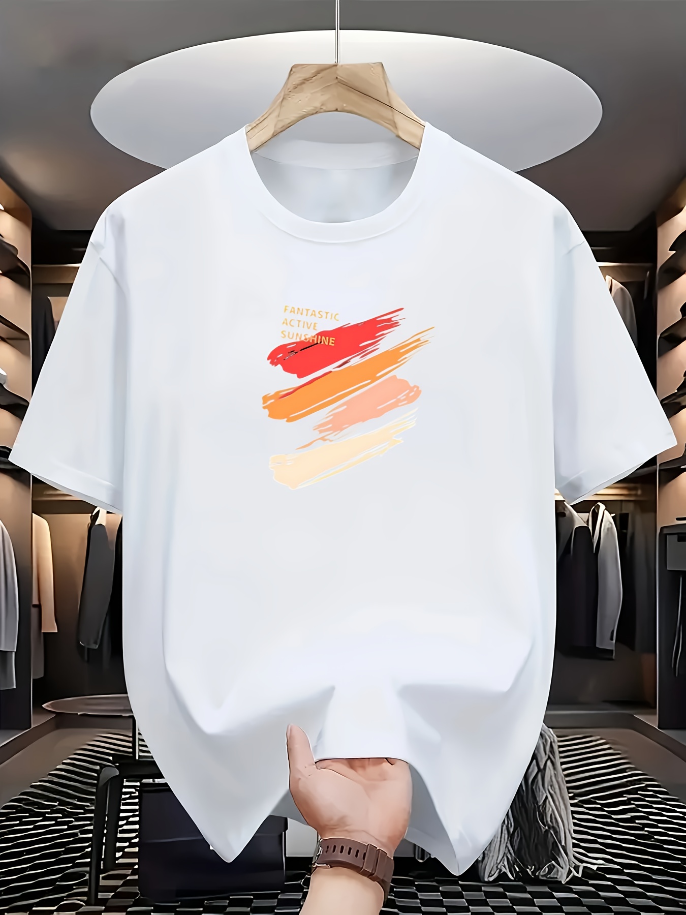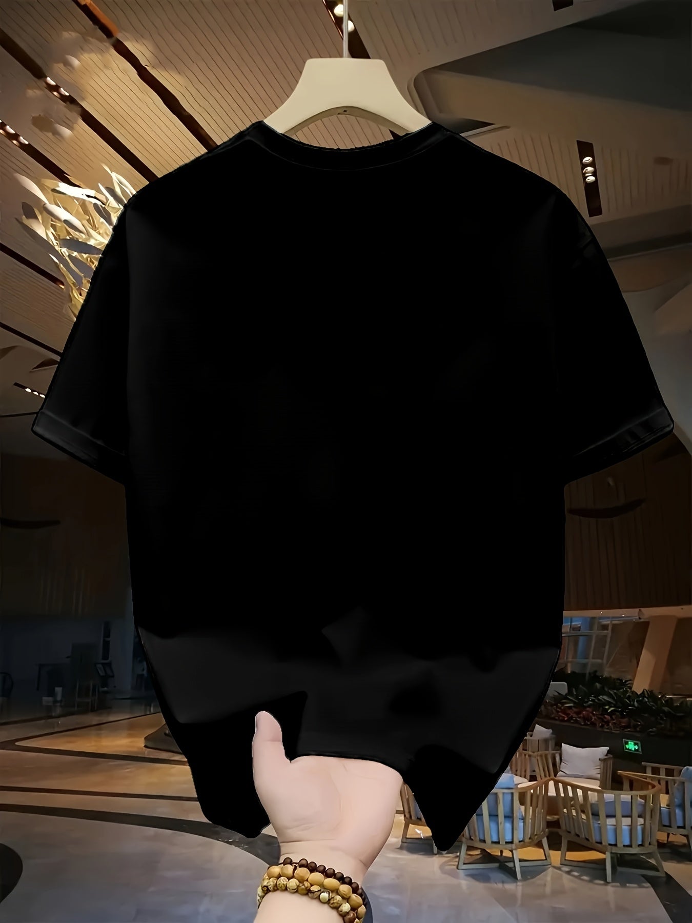 Men's Black T-Shirt - Soft Breathable Crew Neck Tee with Red/Beige/Orange Accent Stripe, Everyday Casual Shirt for Gym, Outings, Parties - All-Season Comfort Fit, Weekend Attire, Sporty Design, Comfortable Material, Short Sle