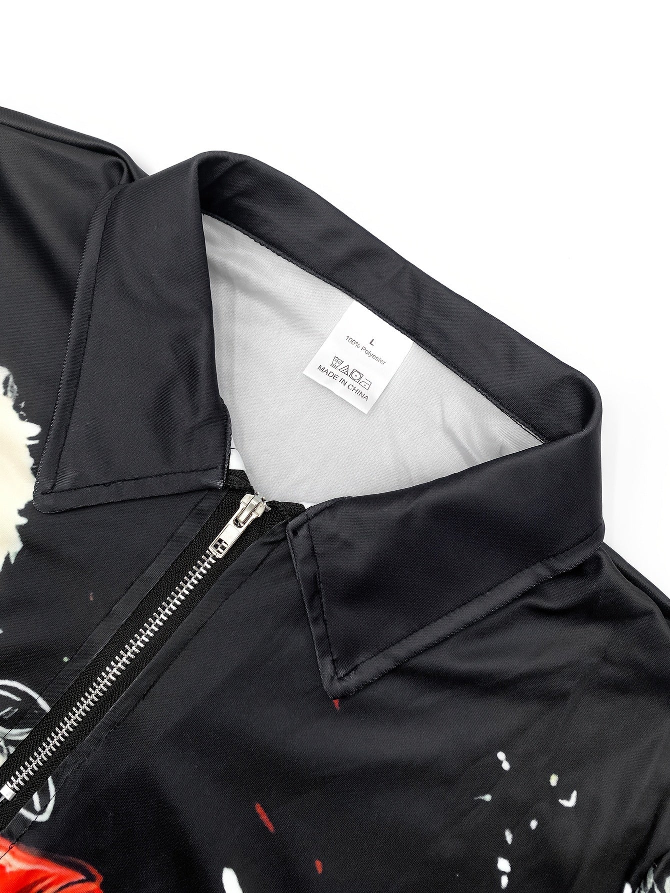 Men's Christmas Santa Rockstar Guitar Print Long Sleeve Knit Shirt - Black & Red Festive Holiday Party Wear, Machine Washable Polyester with Metal Chain Accents, Regular Fit for Autumn Winter Casual Gatherings, Christmas Outf